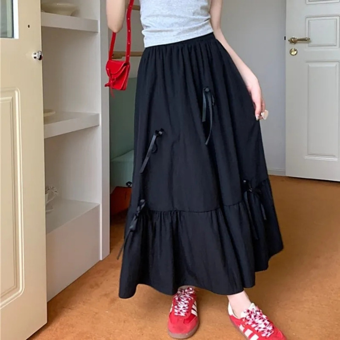 2024 새로운 여름 부드러운 스타일 활 바느질 달콤한 흰색 치마 작은 케이크 미디 스커트
