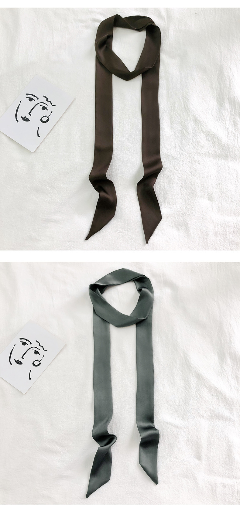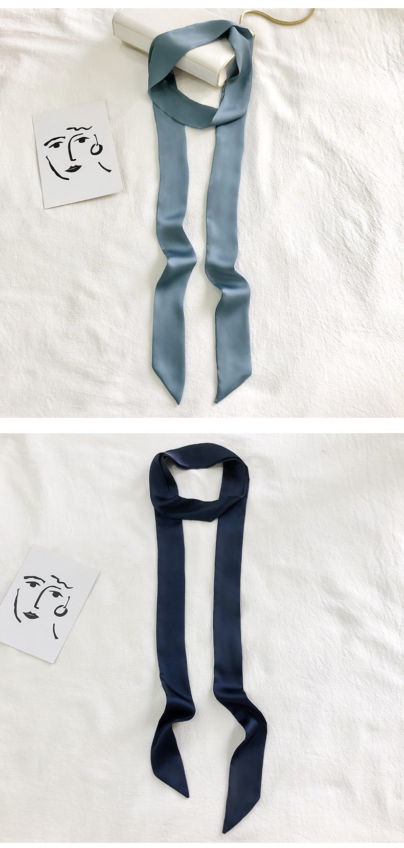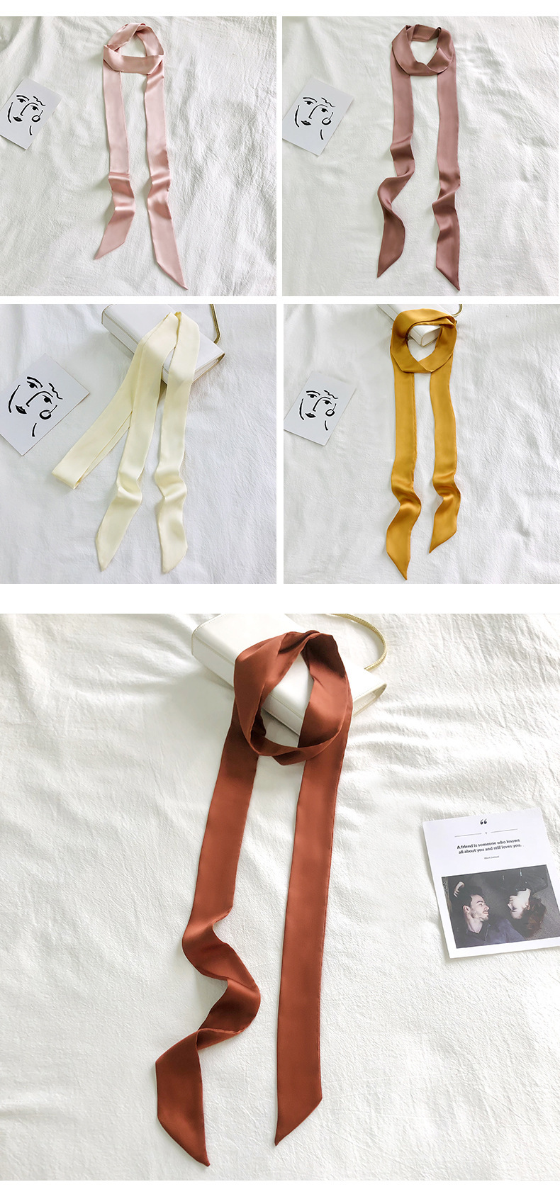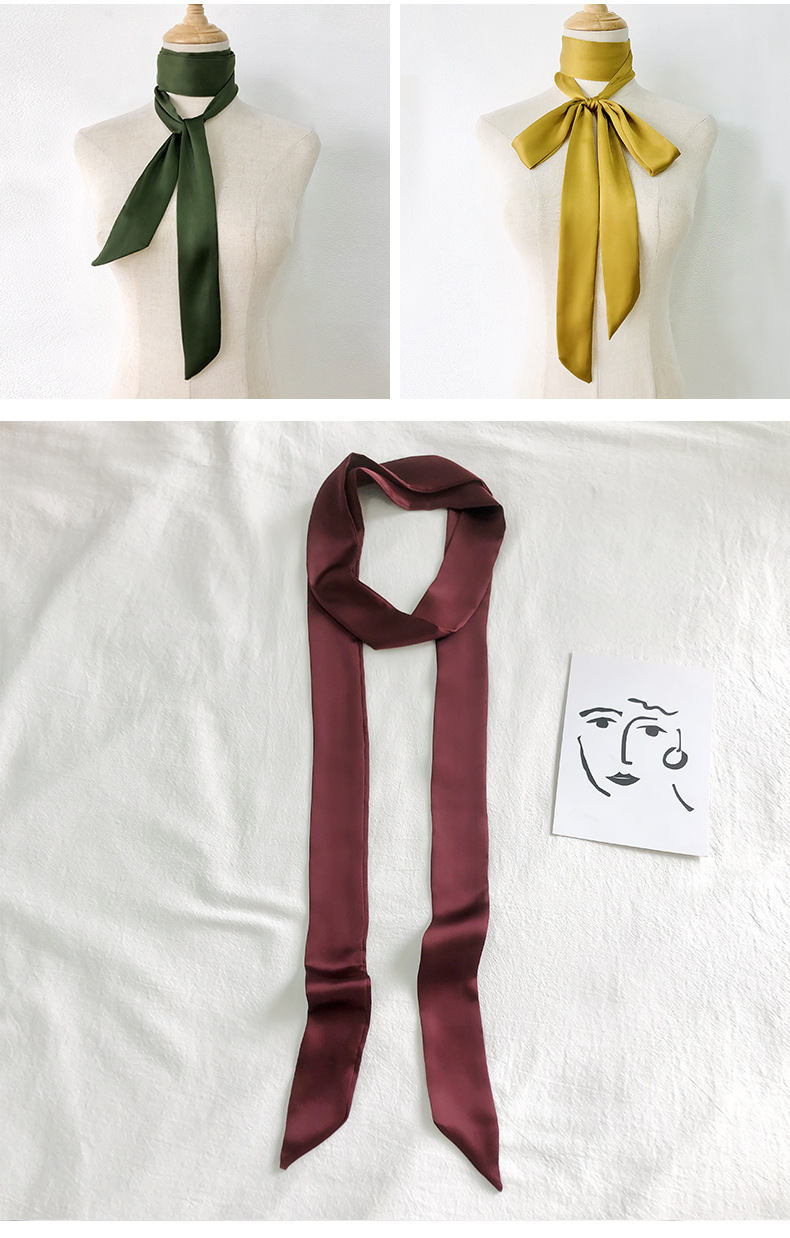 솔리드 컬러 슬라이더 좁은 스카프 리본 넥타이 가방 슈퍼 긴 스카프 작은 리본 장식 스카프 헤어 리본 도매스토어 가기