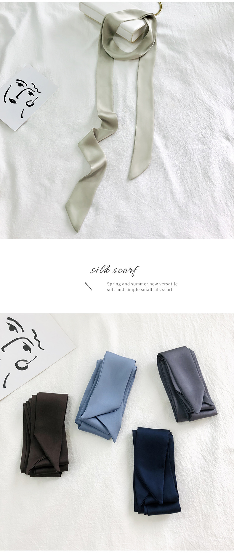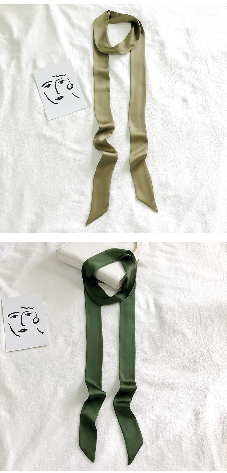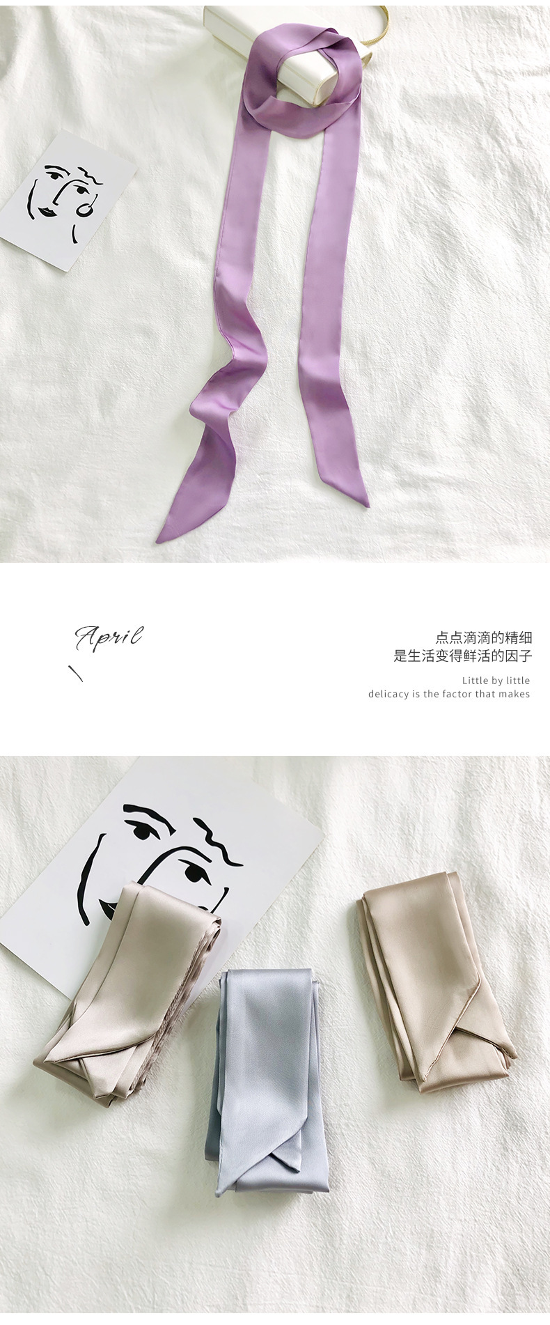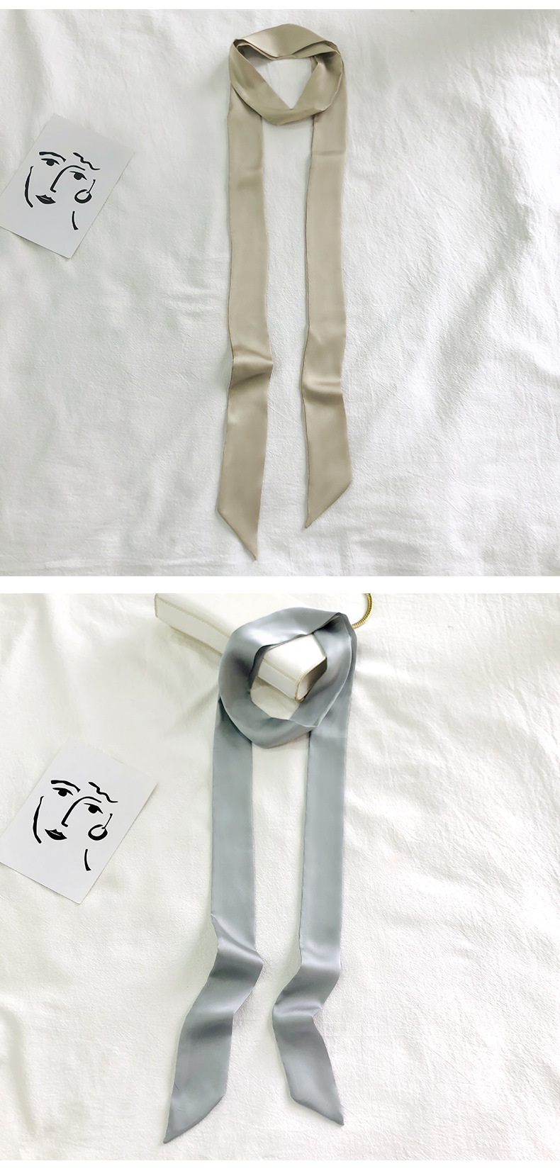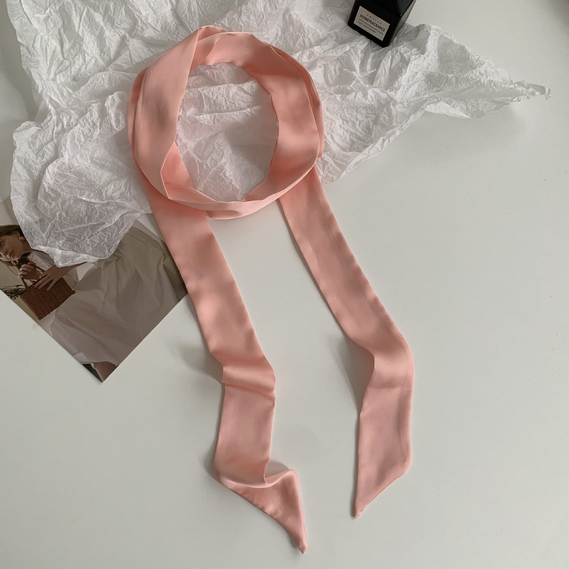 솔리드 컬러 슬라이더 좁은 스카프 리본 넥타이 가방 슈퍼 긴 스카프 작은 리본 장식 스카프 헤어 리본 도매스토어 가기