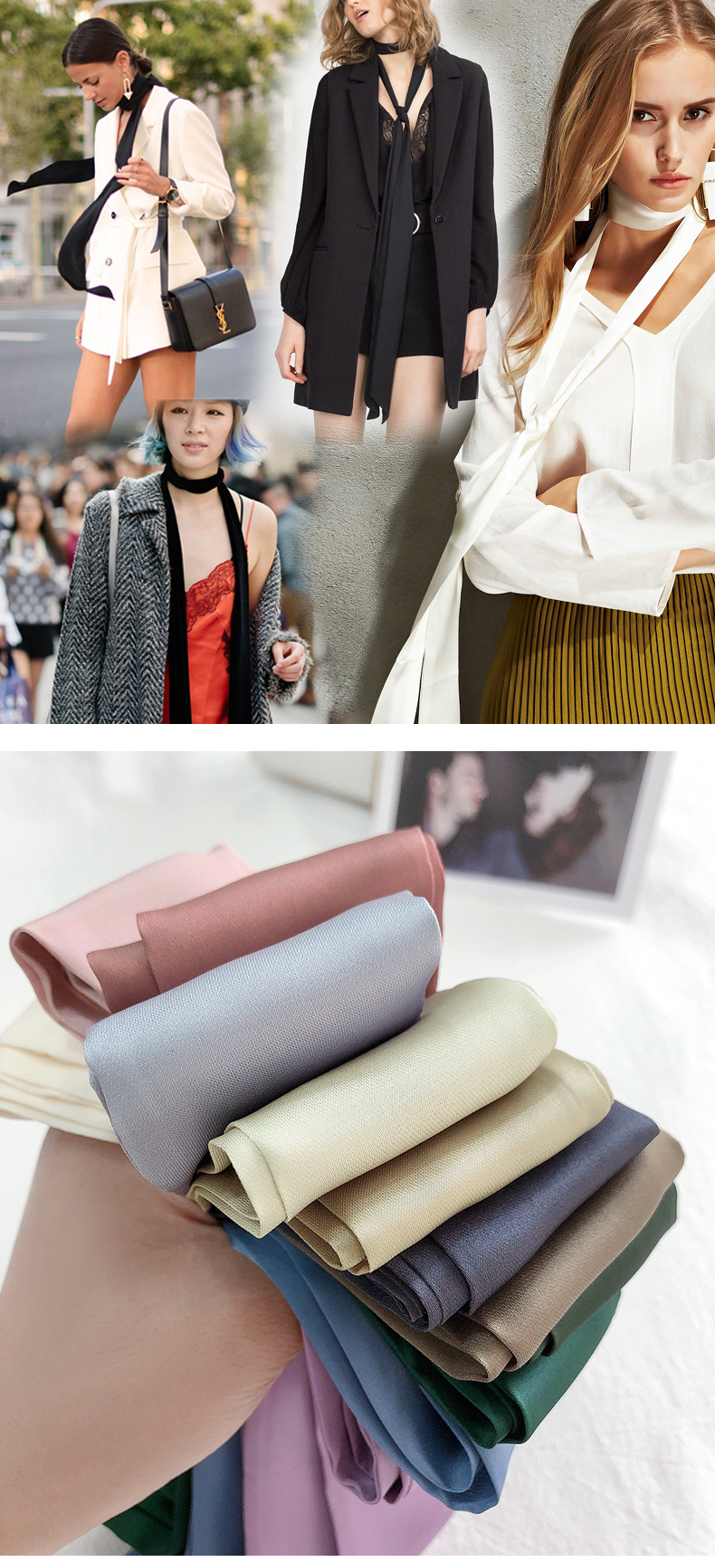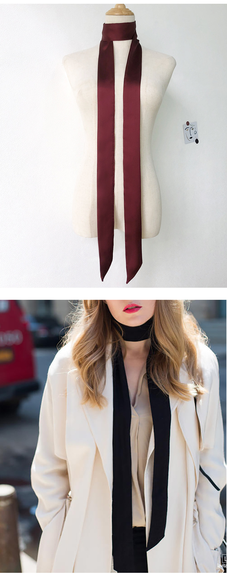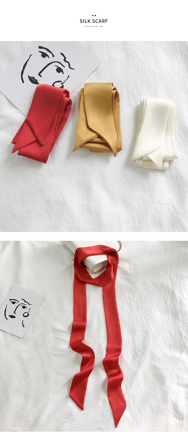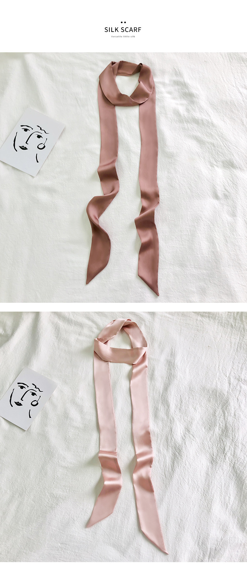 솔리드 컬러 슬라이더 좁은 스카프 리본 넥타이 가방 슈퍼 긴 스카프 작은 리본 장식 스카프 헤어 리본 도매스토어 가기