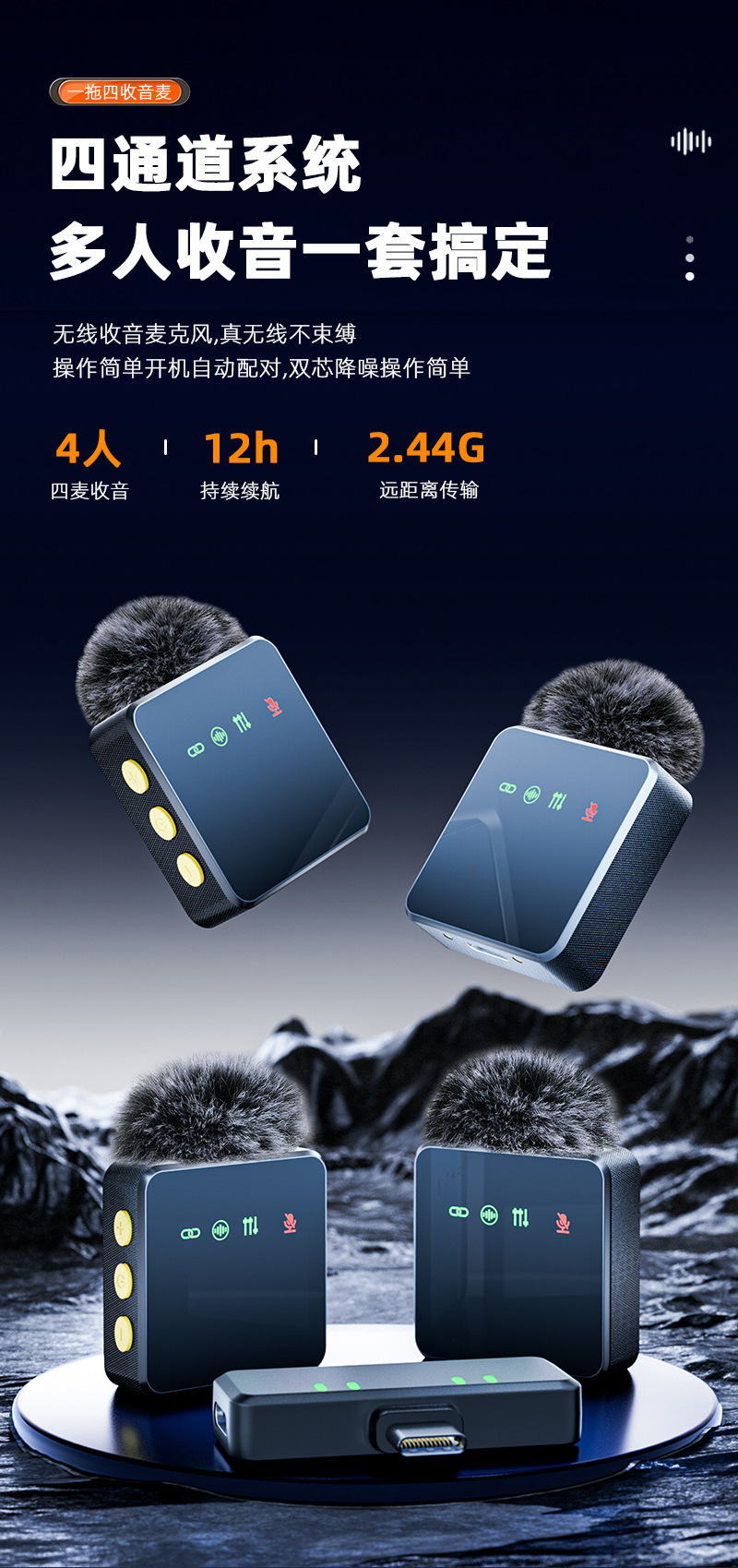 새로운 무선 칼라 클립 마이크 1 드래그 4 야외 라이브 휴대 전화 촬영 소음 감소 특수 칼라 클립 마이크