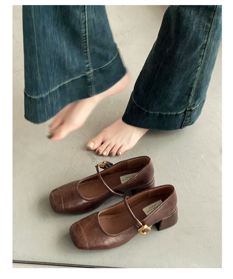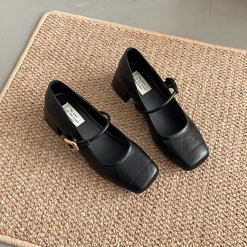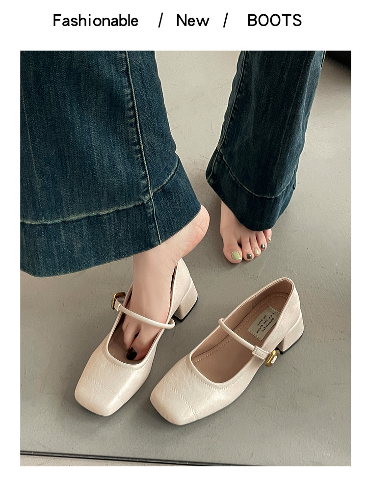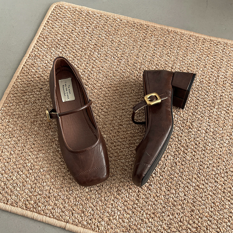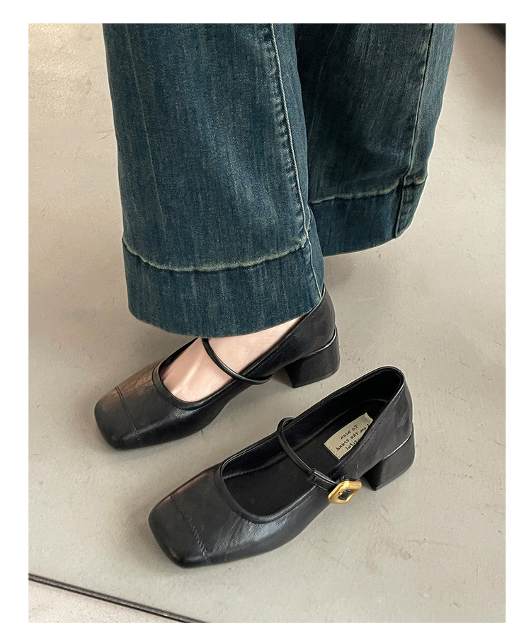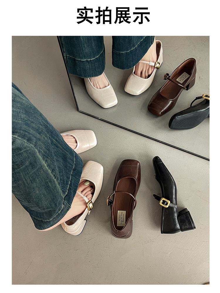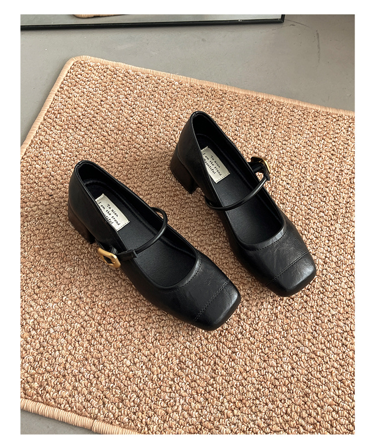 프렌치 레트로 메리제인 슈즈 여성용 2026년 봄 신상 얕은굽 사각코 두꺼운 중간굽 스커트와 함께 신는 얕은굽 싱글 슈즈