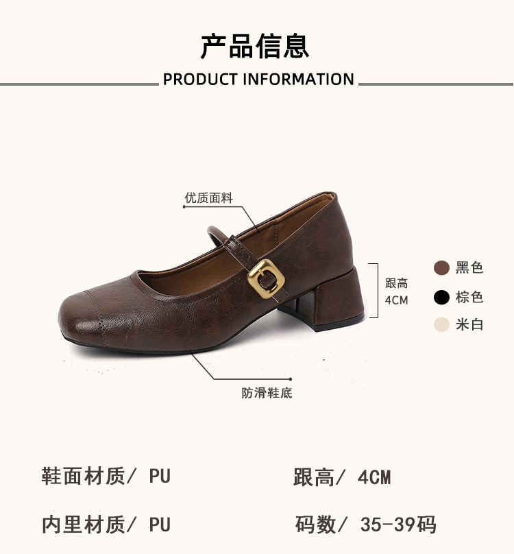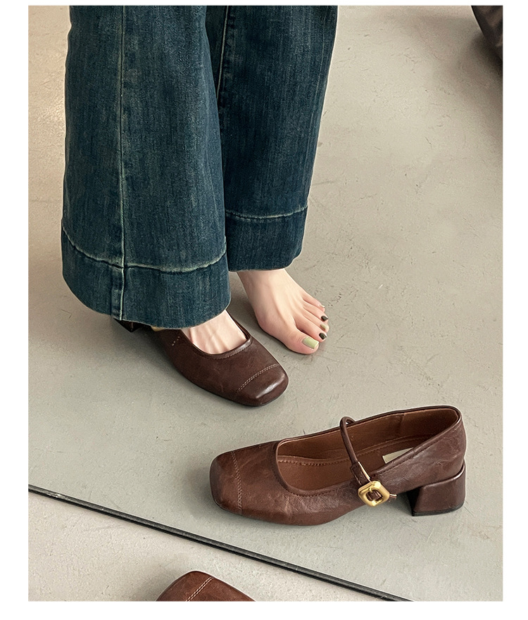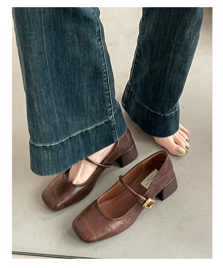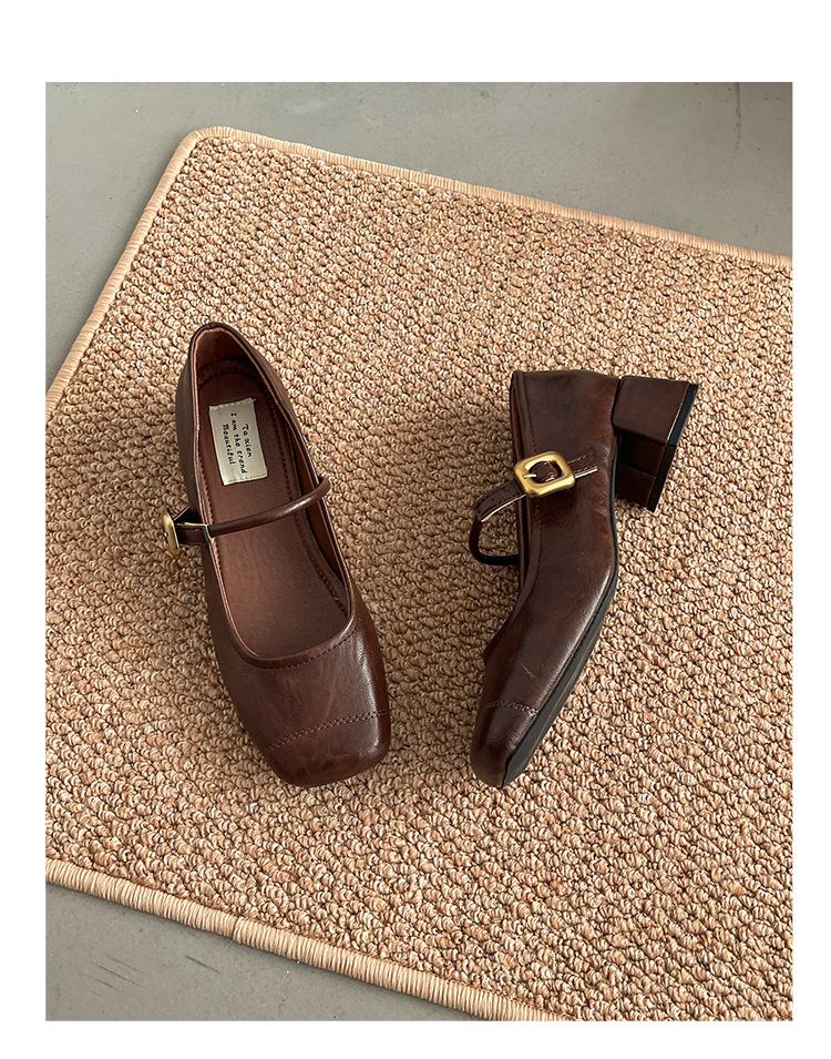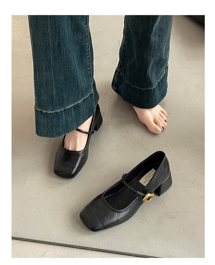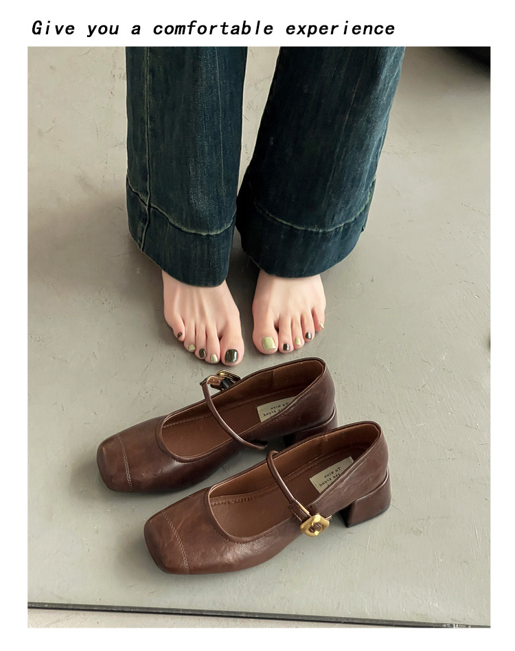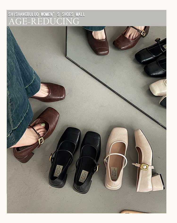 프렌치 레트로 메리제인 슈즈 여성용 2026년 봄 신상 얕은굽 사각코 두꺼운 중간굽 스커트와 함께 신는 얕은굽 싱글 슈즈