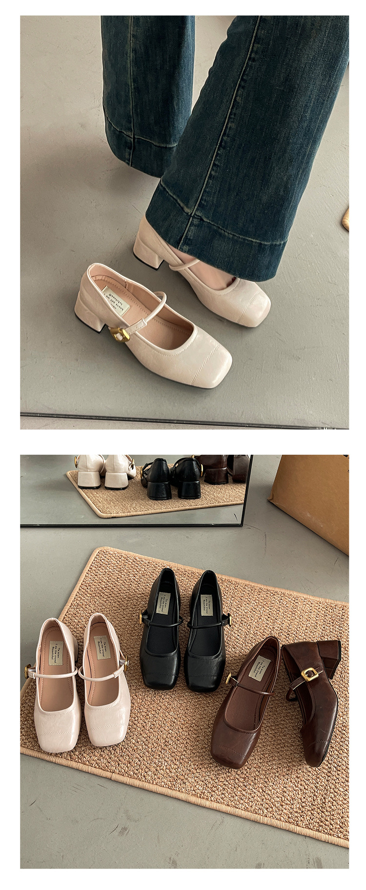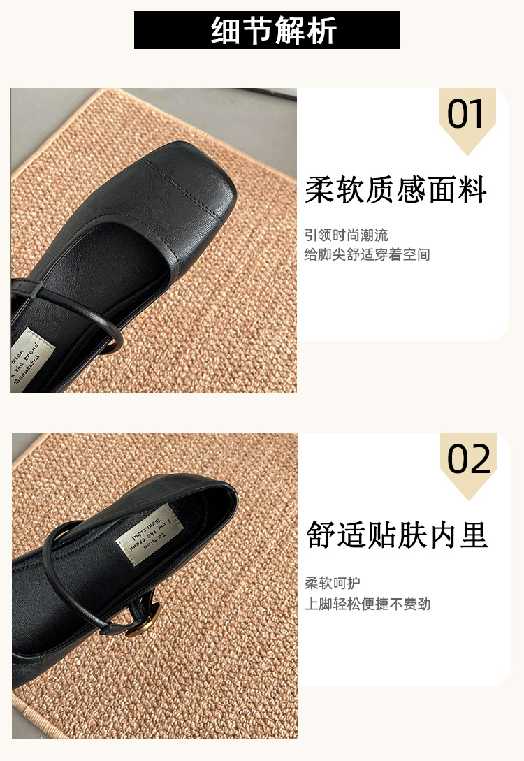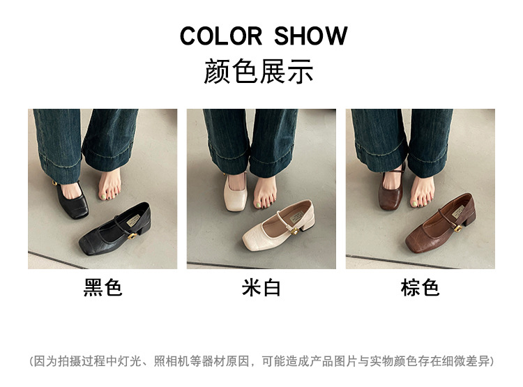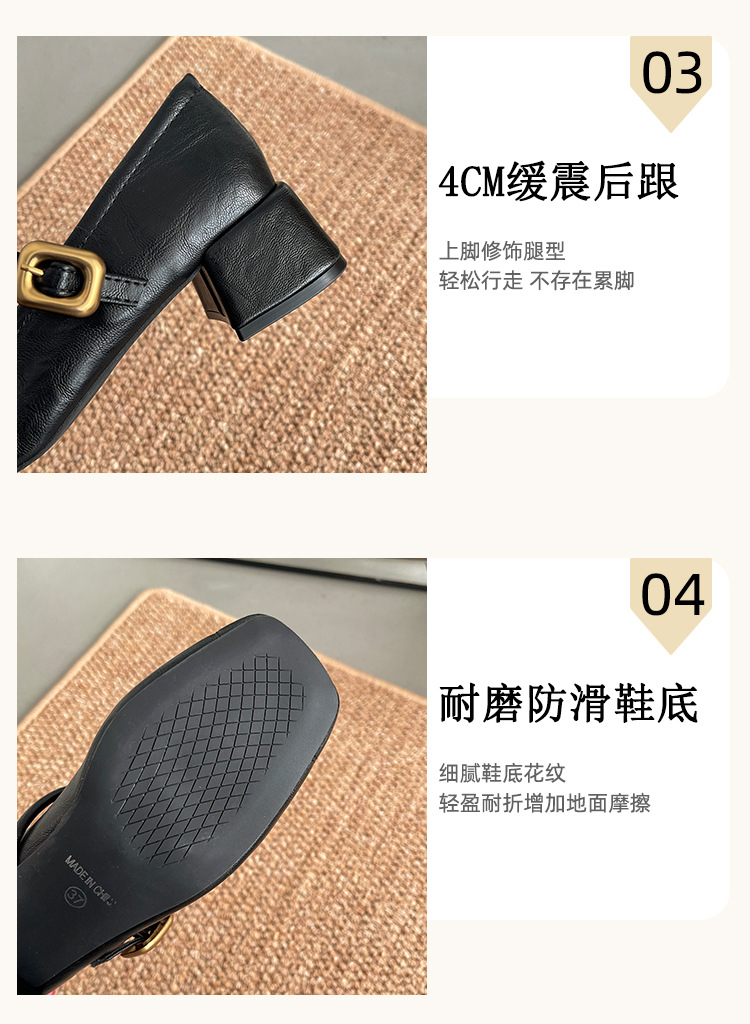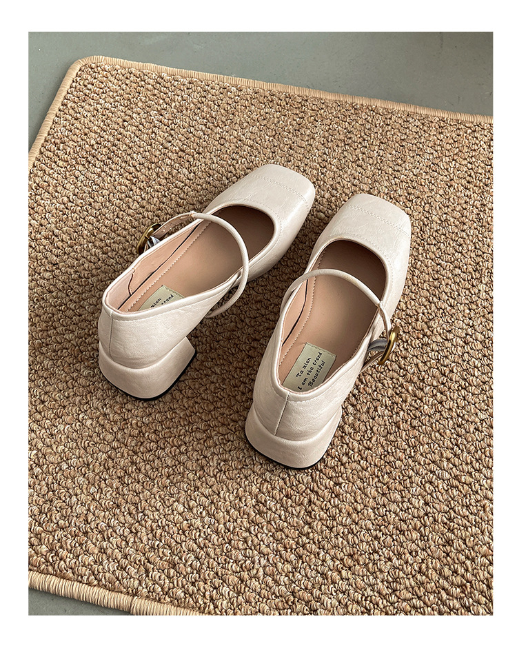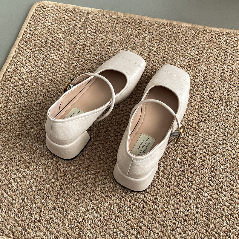 프렌치 레트로 메리제인 슈즈 여성용 2026년 봄 신상 얕은굽 사각코 두꺼운 중간굽 스커트와 함께 신는 얕은굽 싱글 슈즈