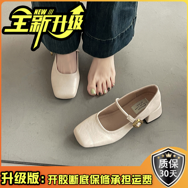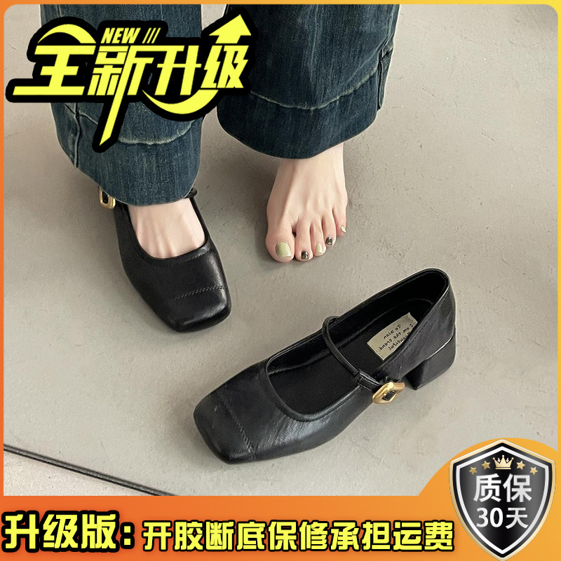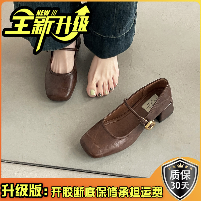 프렌치 레트로 메리제인 슈즈 여성용 2026년 봄 신상 얕은굽 사각코 두꺼운 중간굽 스커트와 함께 신는 얕은굽 싱글 슈즈스토어 가기