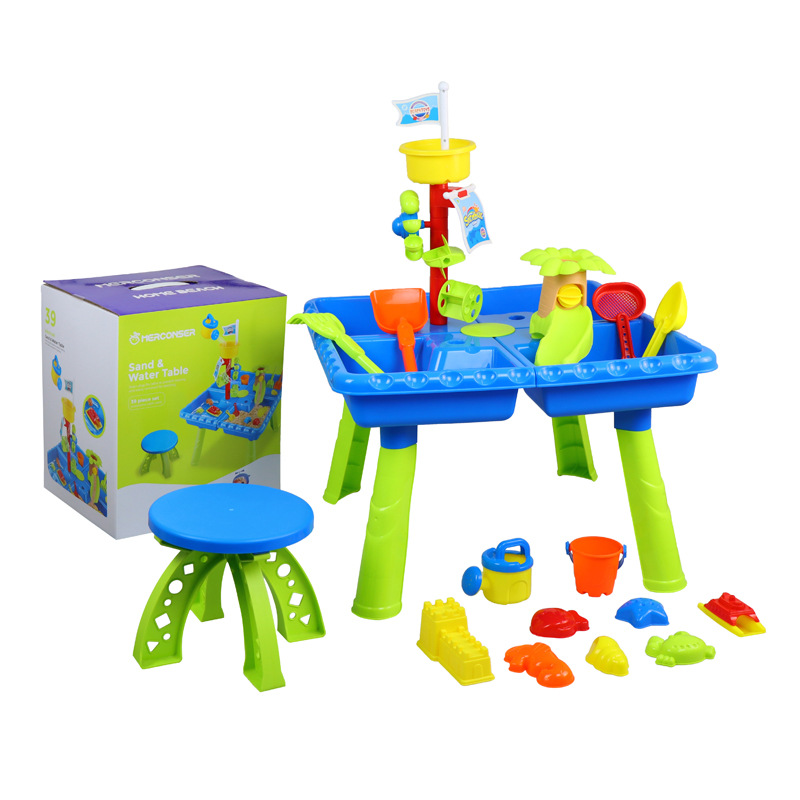 Jianxiong 국경 간 인기 판매 해변 테이블 모래 물 테이블 실내 야외 해변 물놀이 모래 삽 도구 놀이 집스토어 가기