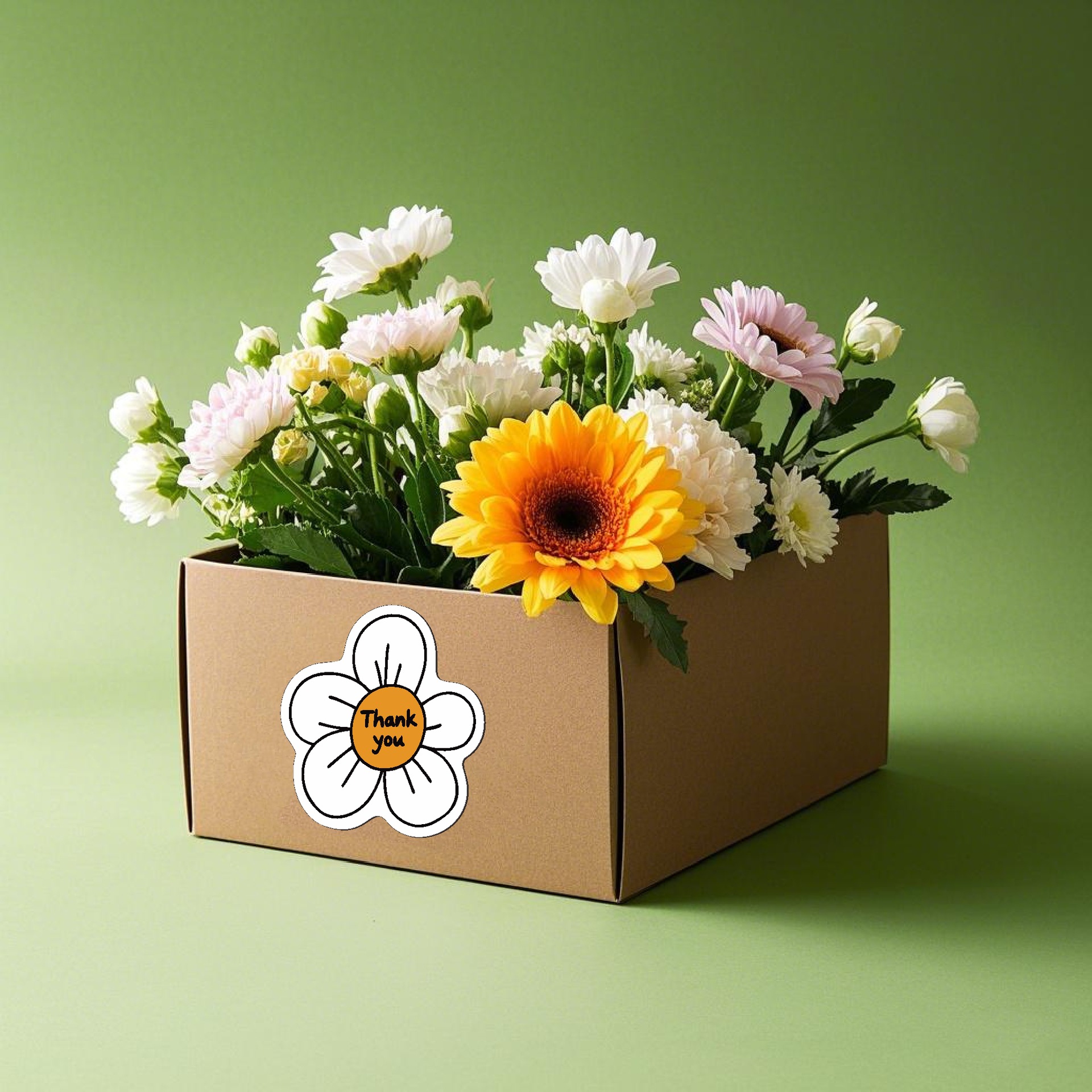 6PCS 작은 흰색 꽃 선물 상자 포장 감사합니다 자체 접착 포장 라벨 비행 기계 상자 장식 밀봉 페이스트 베이킹 스티커스토어 가기