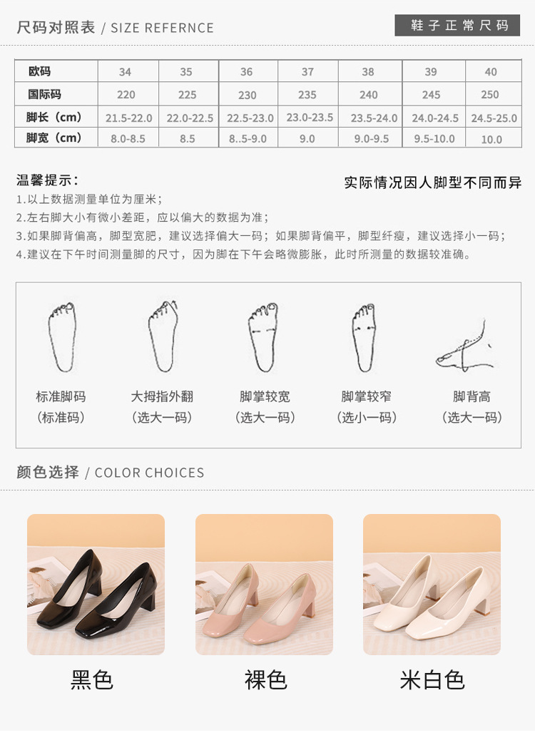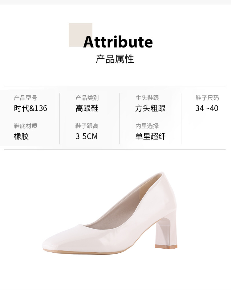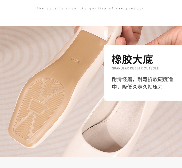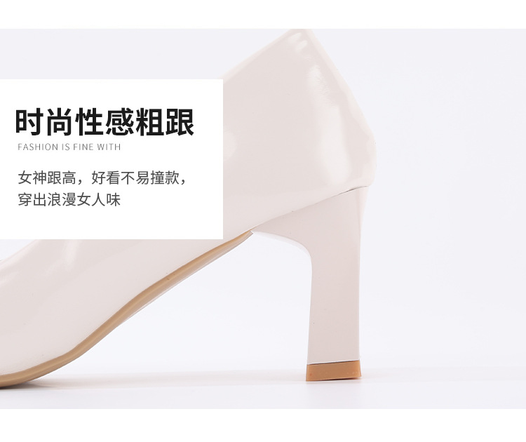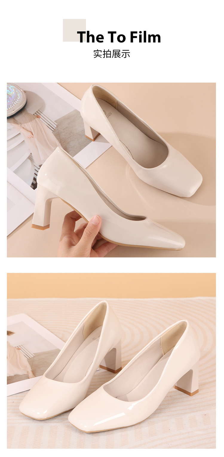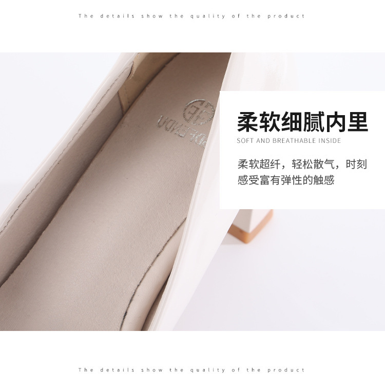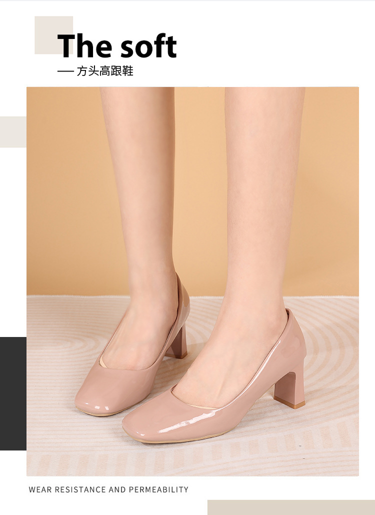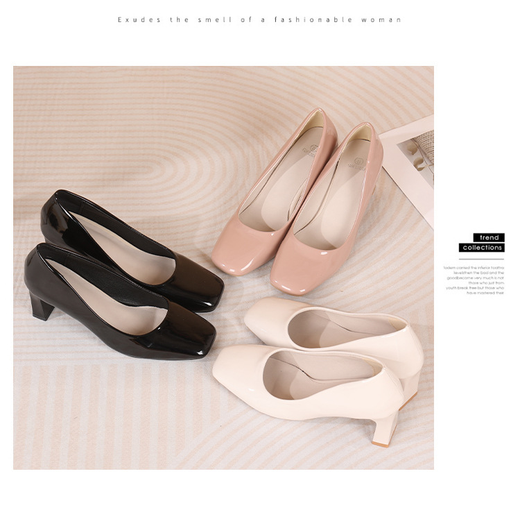 새로운 스타일의 작은 향기로운 신발 누드 페이턴트 가죽 신발 여성 스퀘어 토 매일 통근 두꺼운 굽 하이힐 피곤하지 않은 발 pu스토어 가기