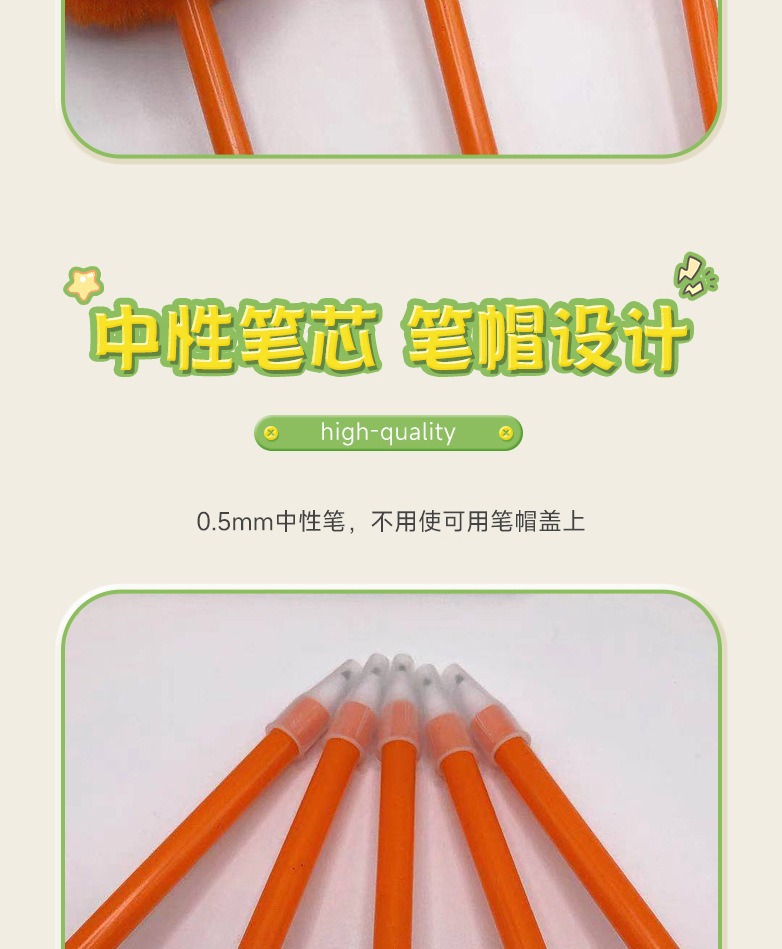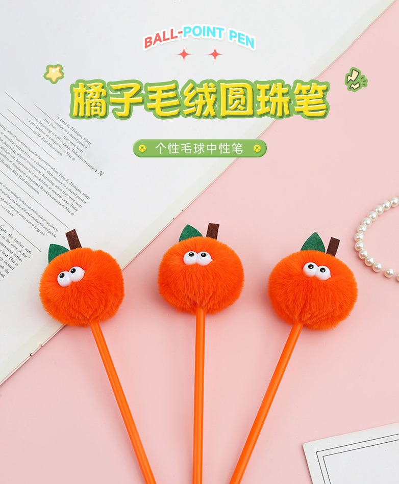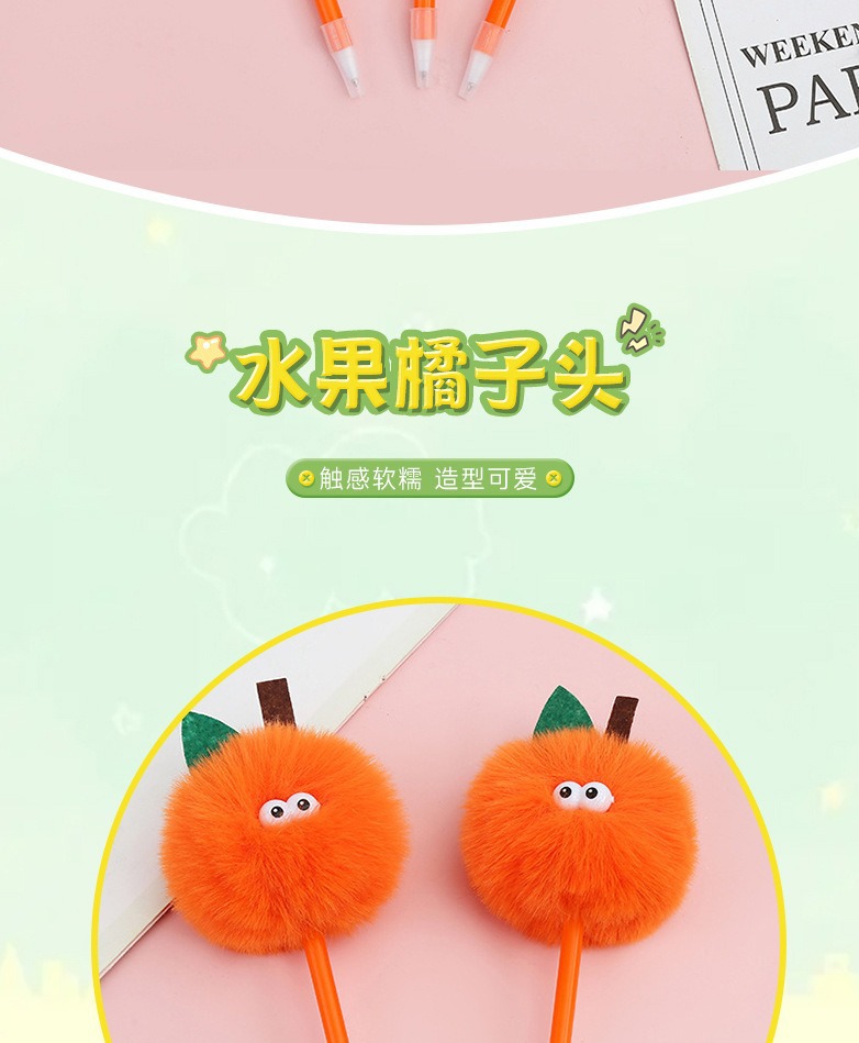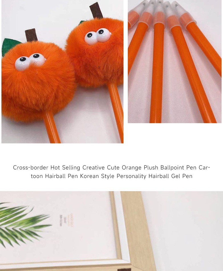 국경 간 뜨거운 판매 더미 창조적 인 만화 봉제 젤 펜 귀여운 오렌지 학생 인터넷 축하 헤어 볼 문구 볼펜