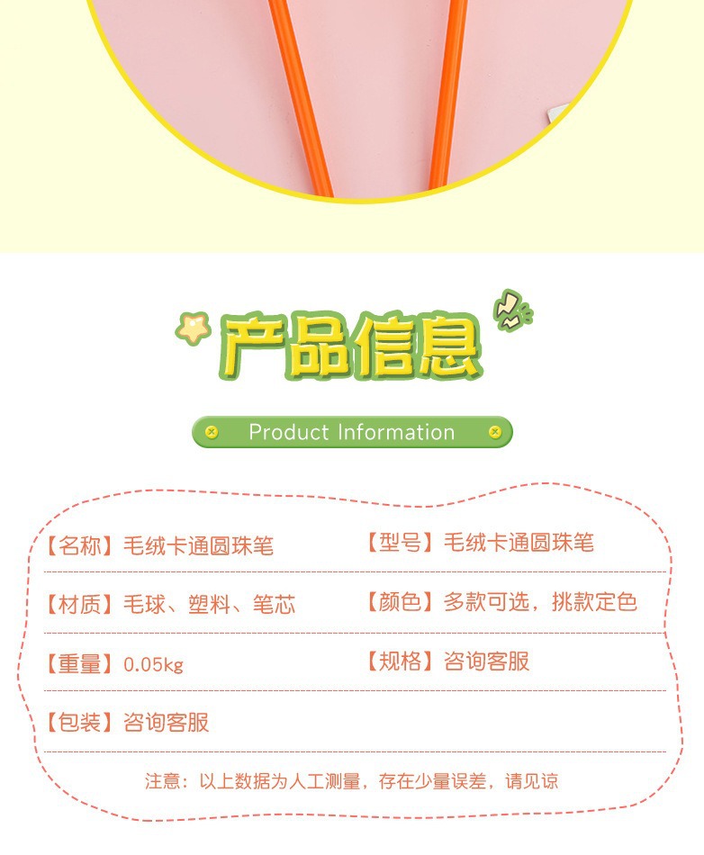 국경 간 뜨거운 판매 더미 창조적 인 만화 봉제 젤 펜 귀여운 오렌지 학생 인터넷 축하 헤어 볼 문구 볼펜스토어 가기