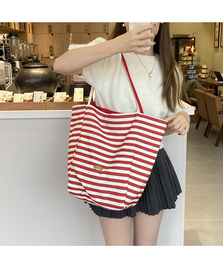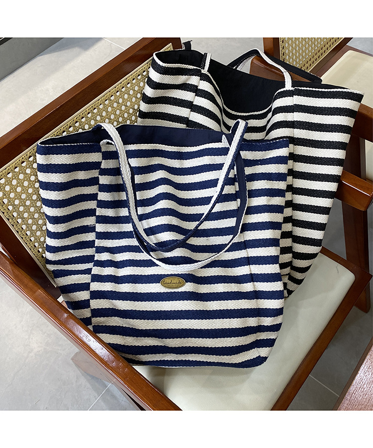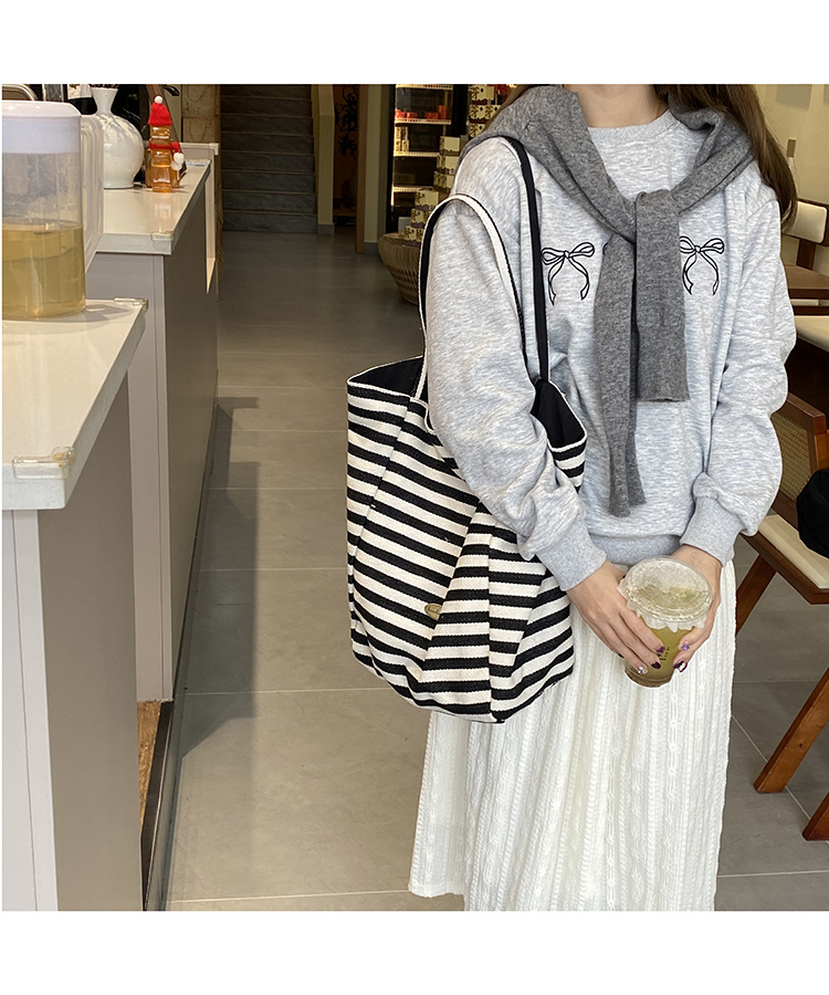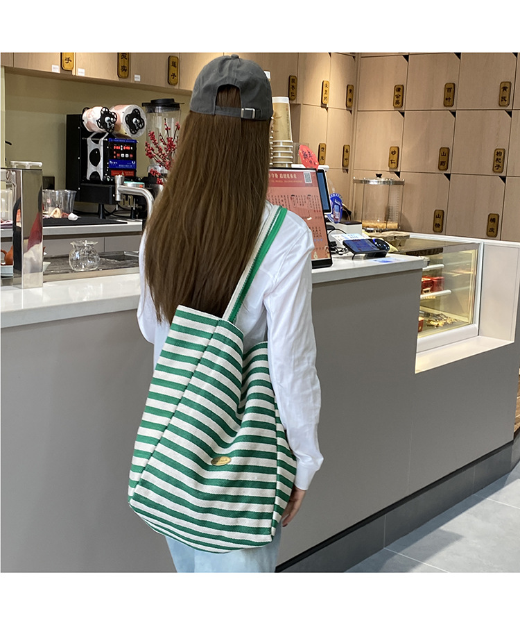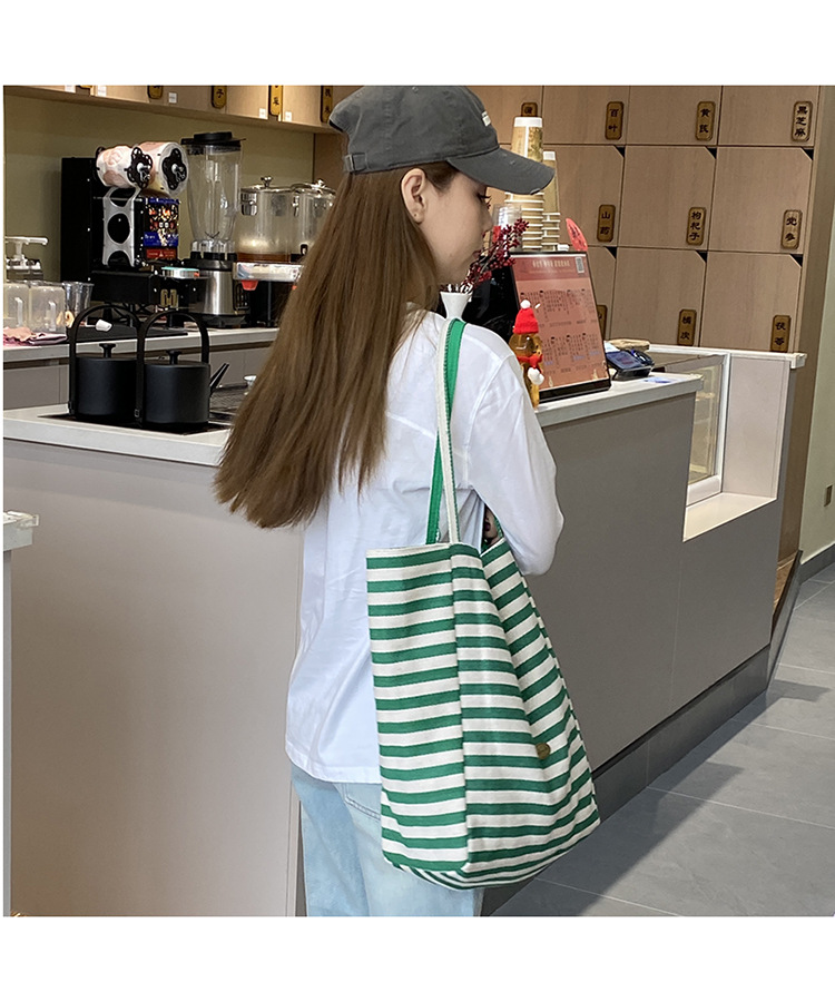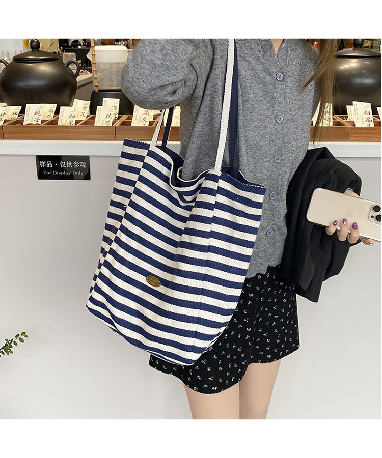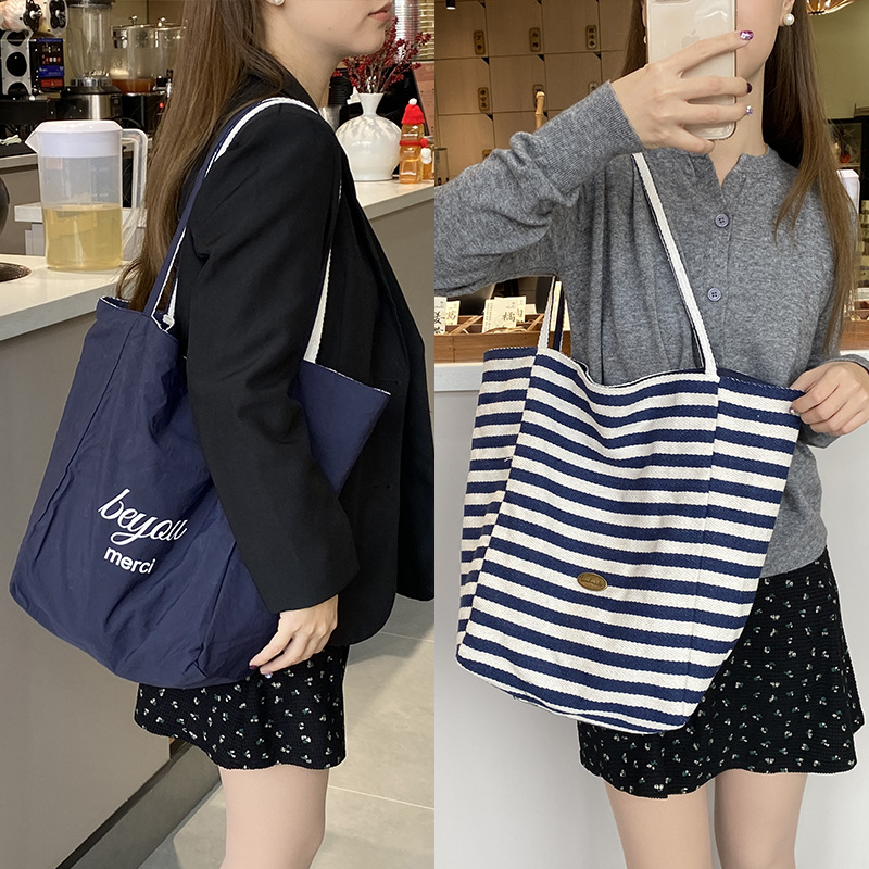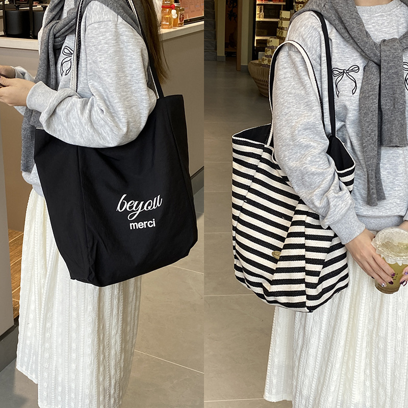 줄무늬 캔버스 가방 2024 새로운 한국 스타일 인 토트 캐주얼 가방 어깨 대용량 토트 백 쇼핑백스토어 가기