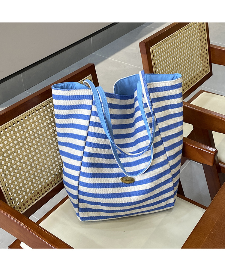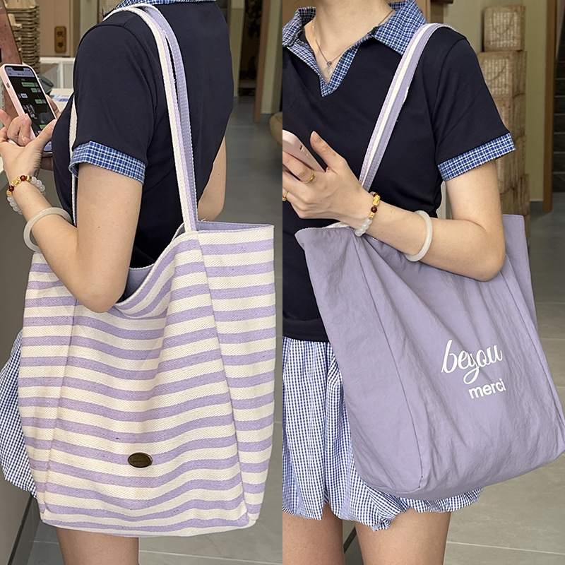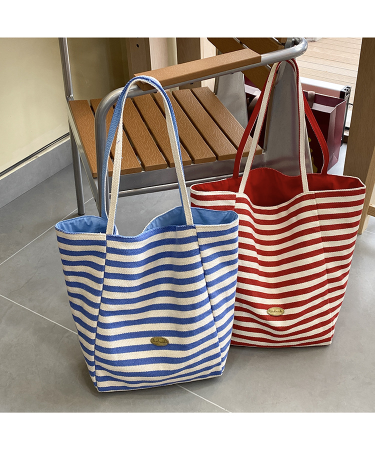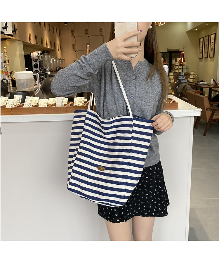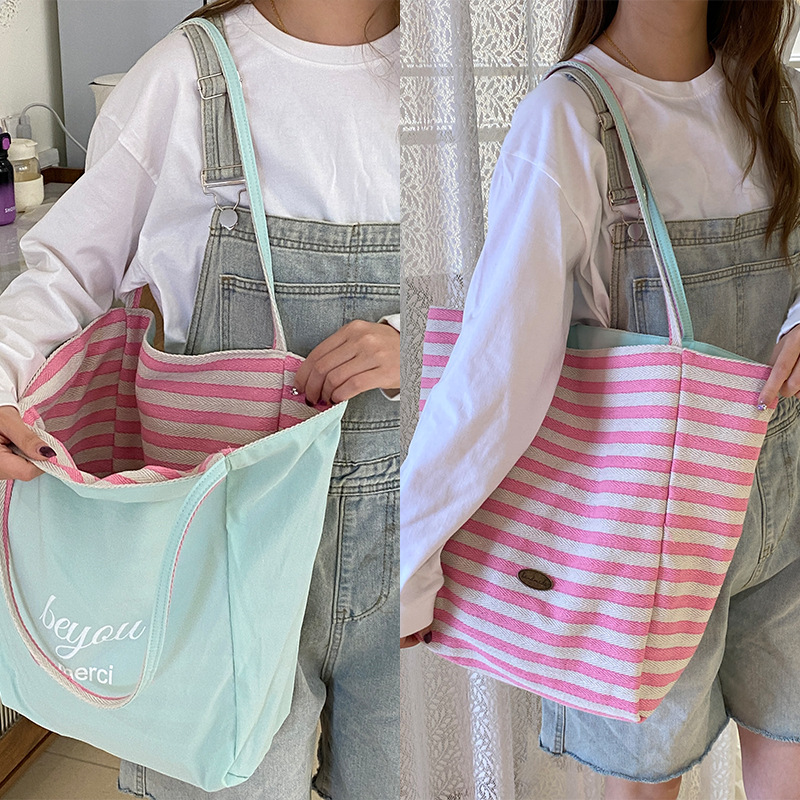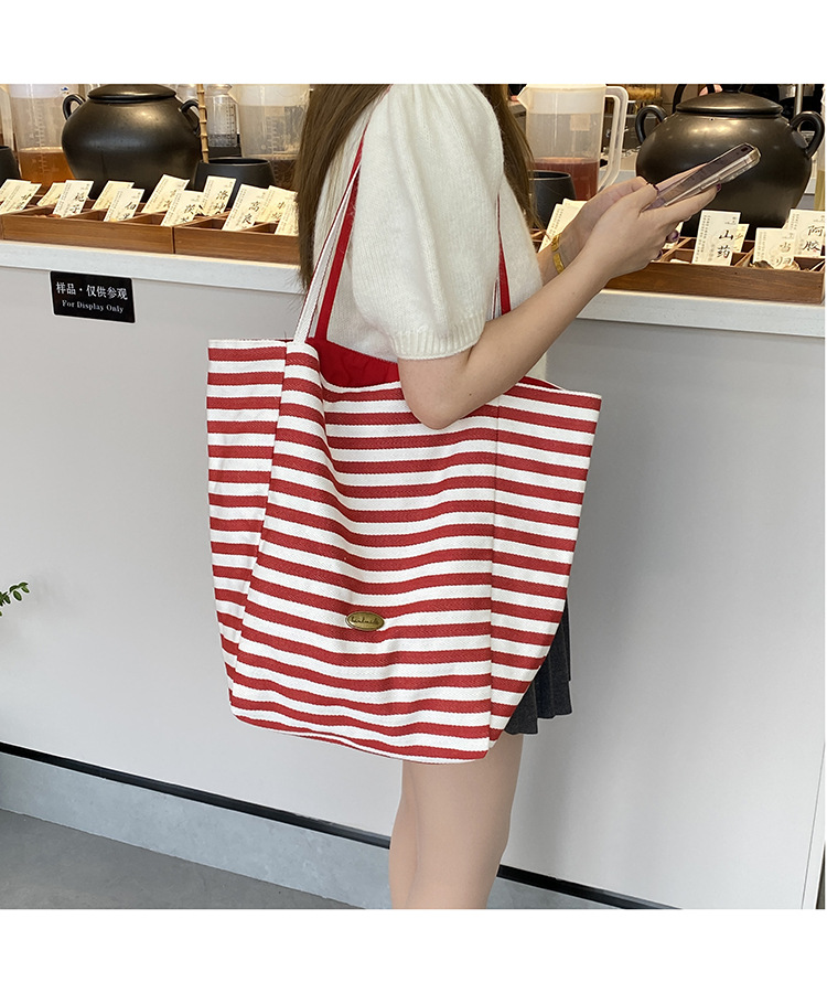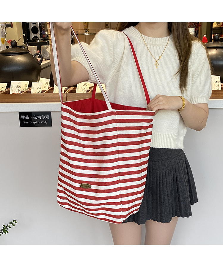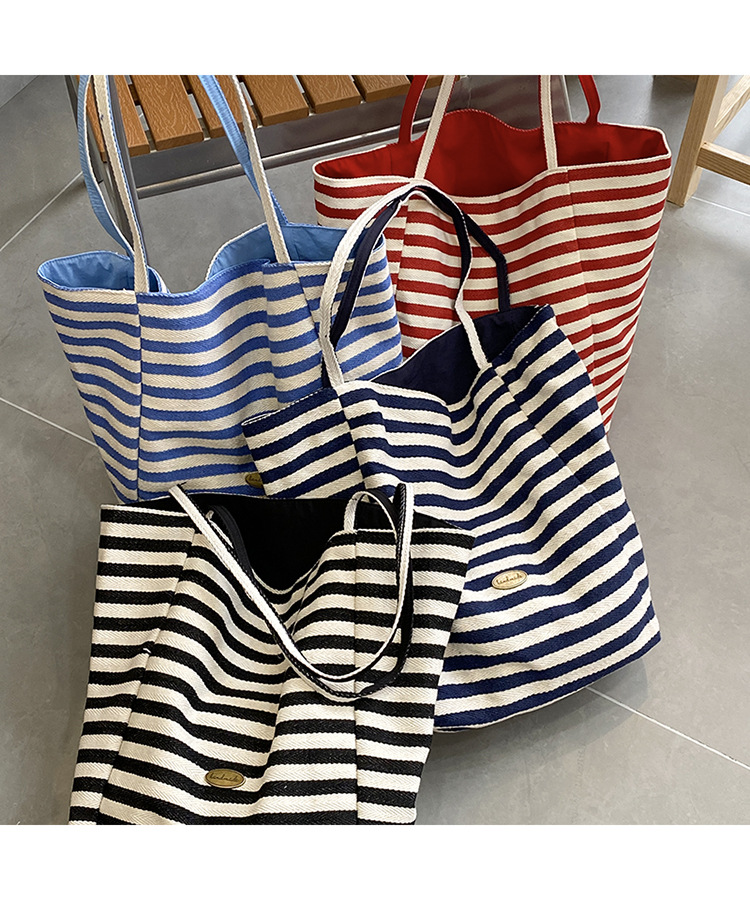 줄무늬 캔버스 가방 2024 새로운 한국 스타일 인 토트 캐주얼 가방 어깨 대용량 토트 백 쇼핑백스토어 가기