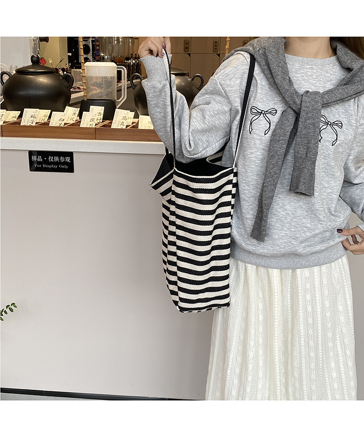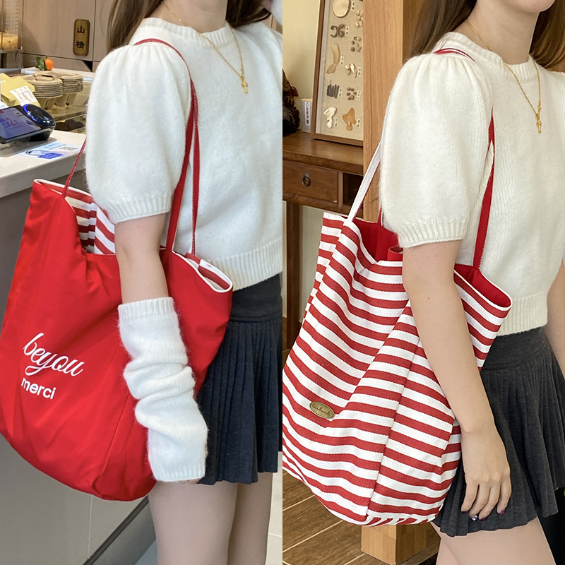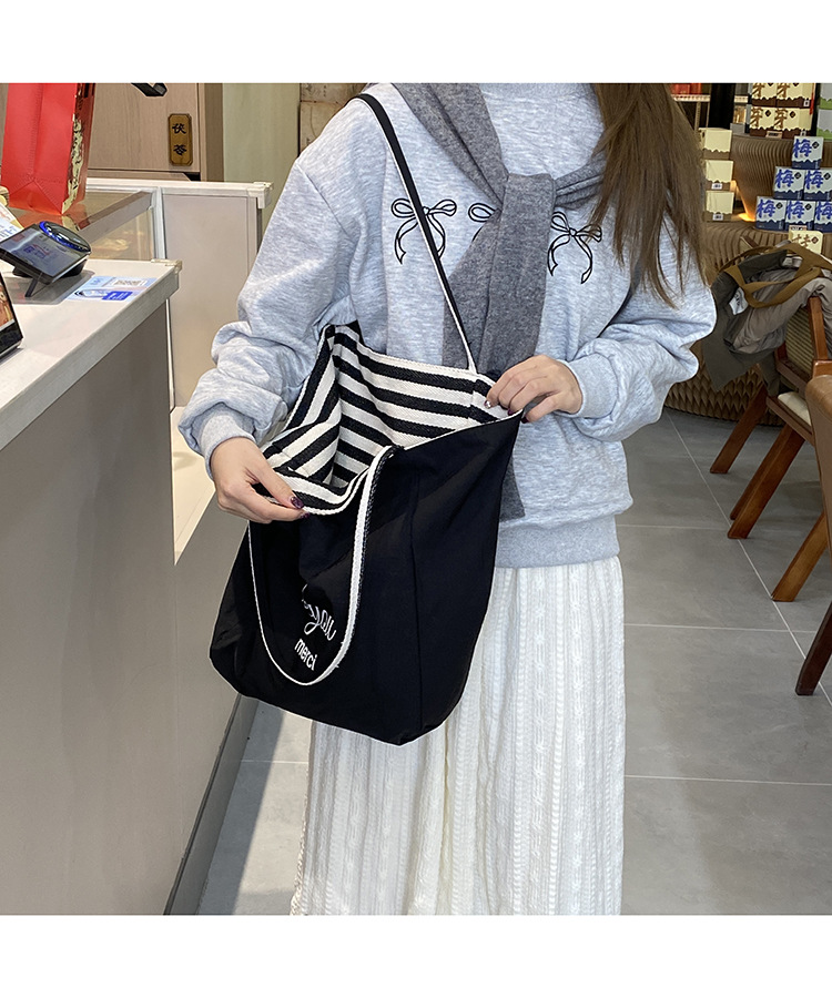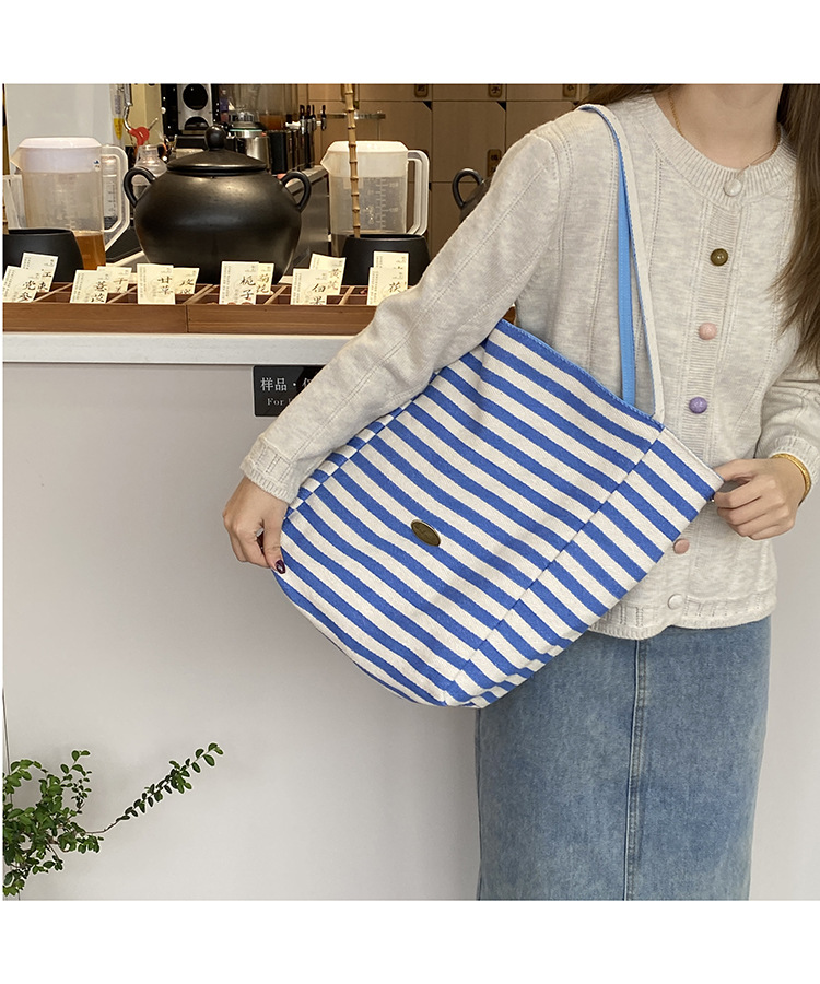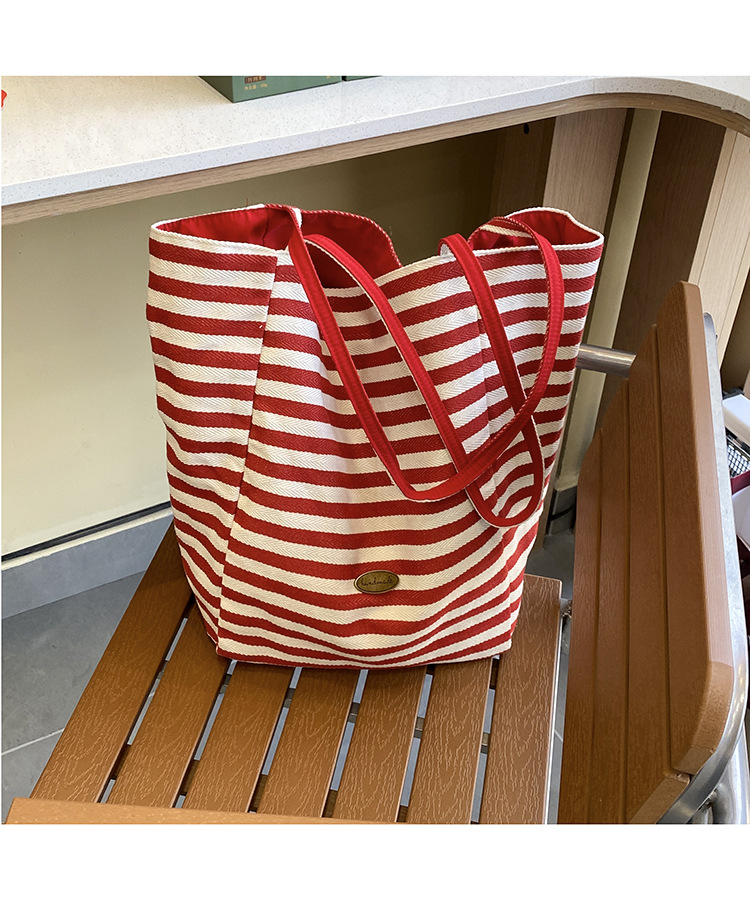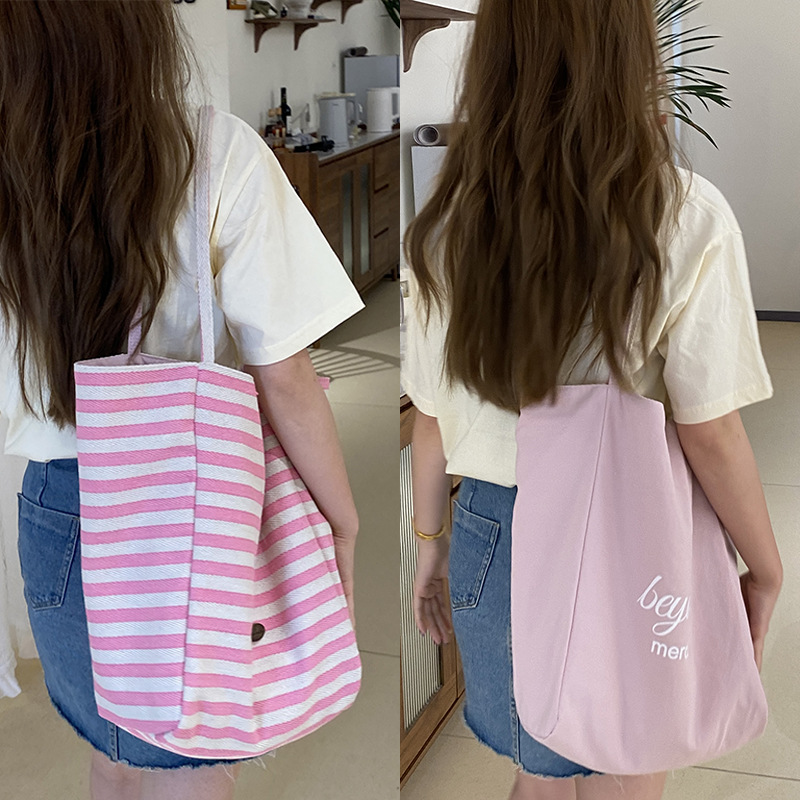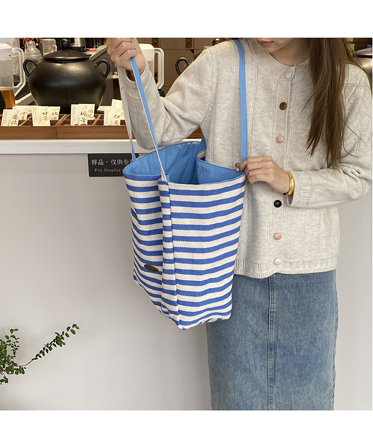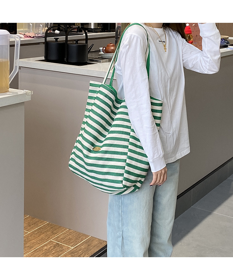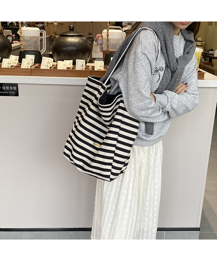 줄무늬 캔버스 가방 2024 새로운 한국 스타일 인 토트 캐주얼 가방 어깨 대용량 토트 백 쇼핑백스토어 가기