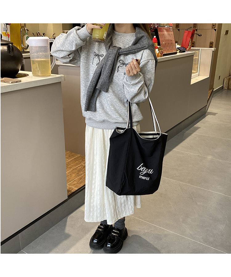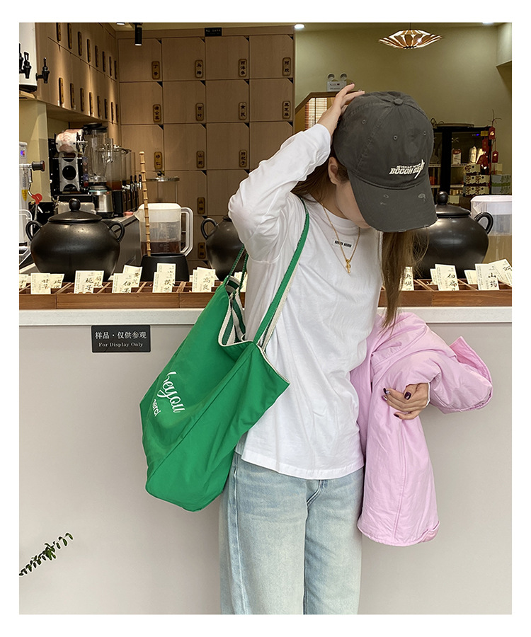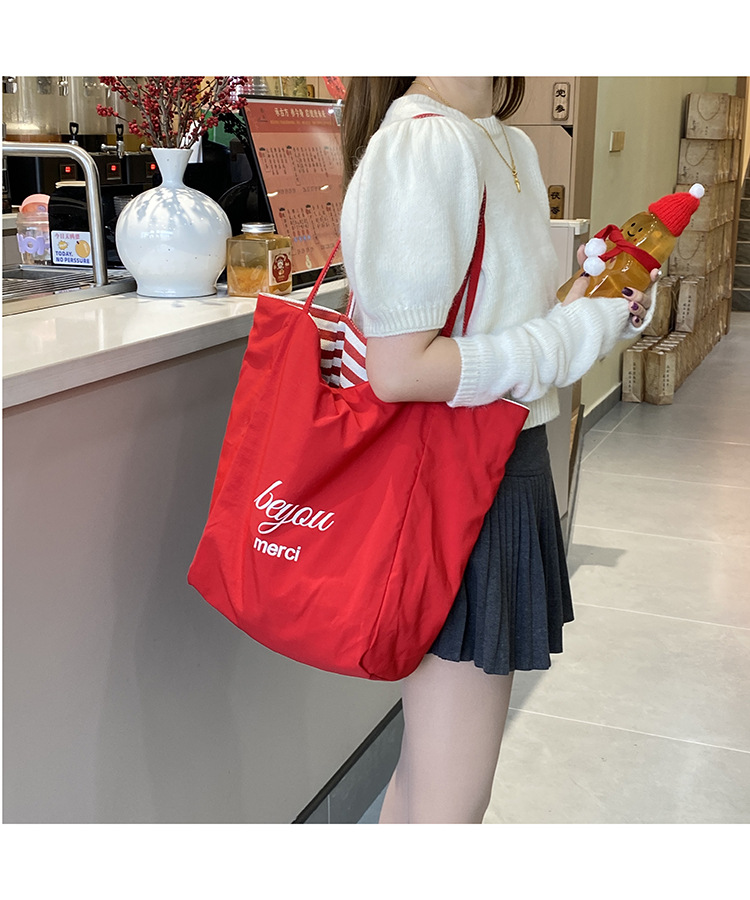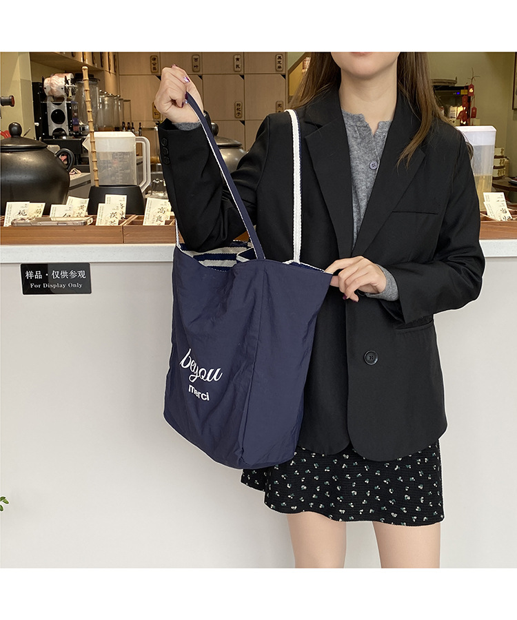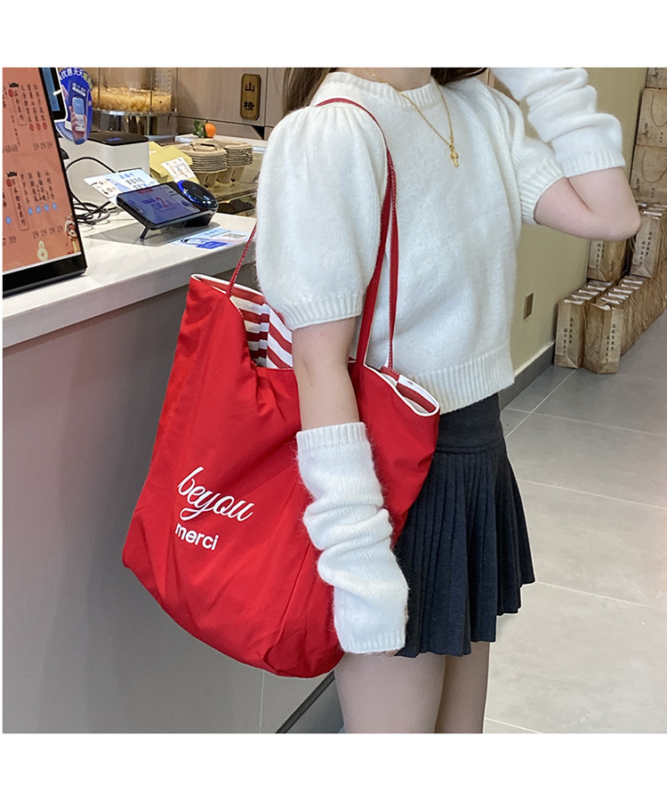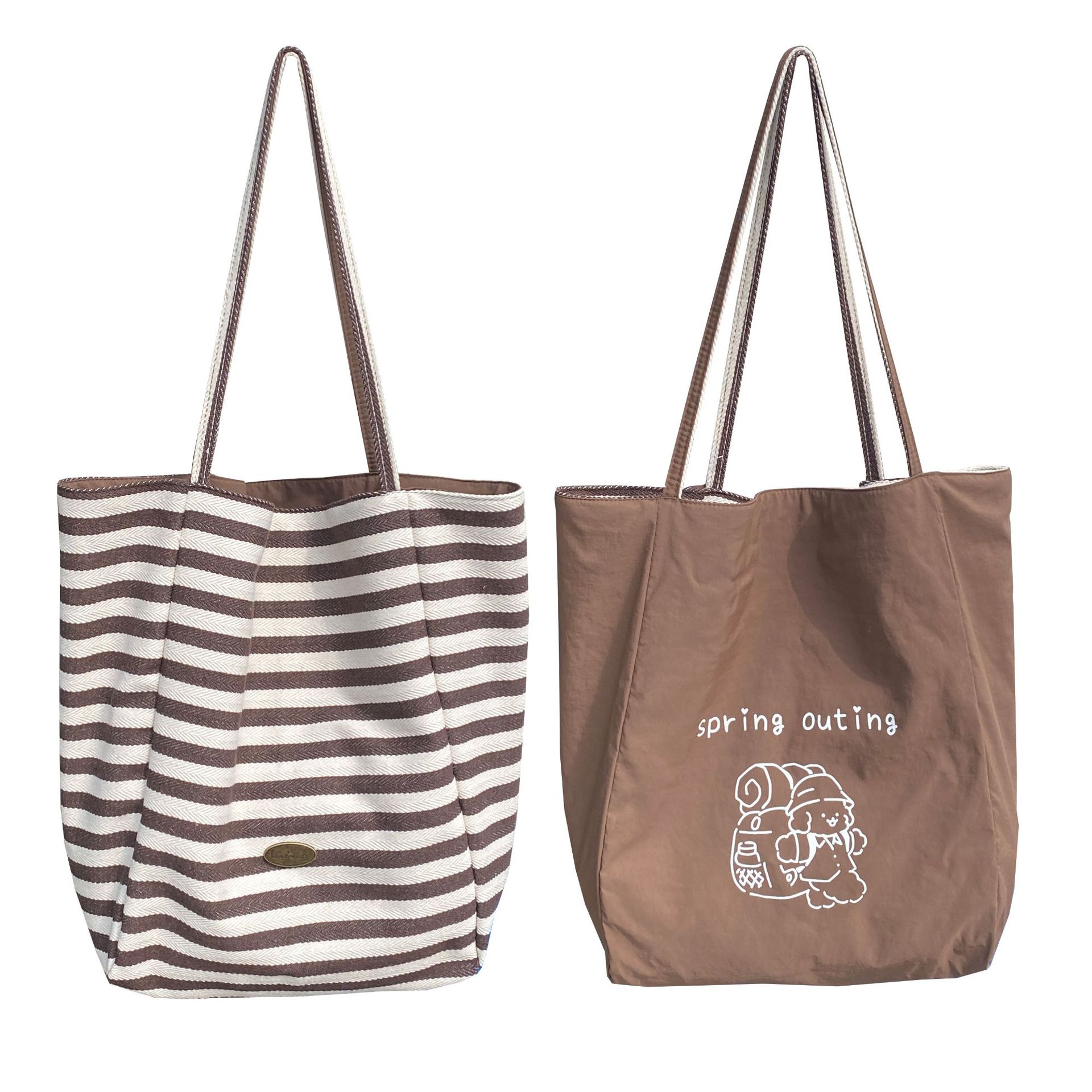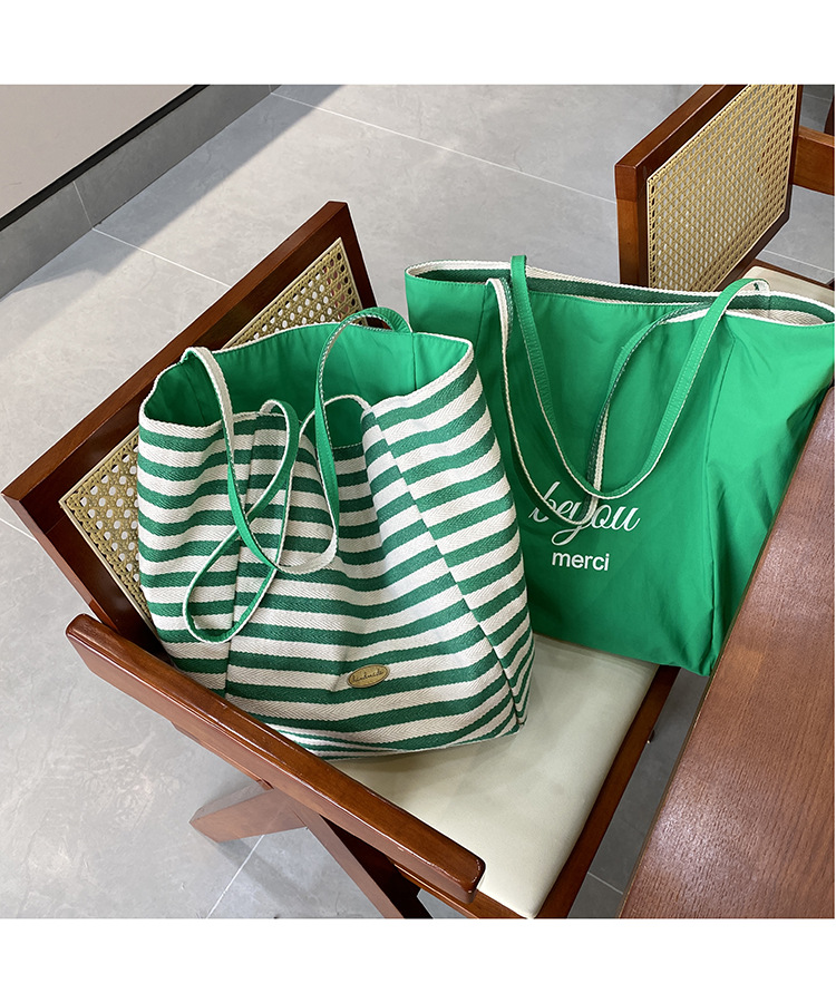 줄무늬 캔버스 가방 2024 새로운 한국 스타일 인 토트 캐주얼 가방 어깨 대용량 토트 백 쇼핑백스토어 가기