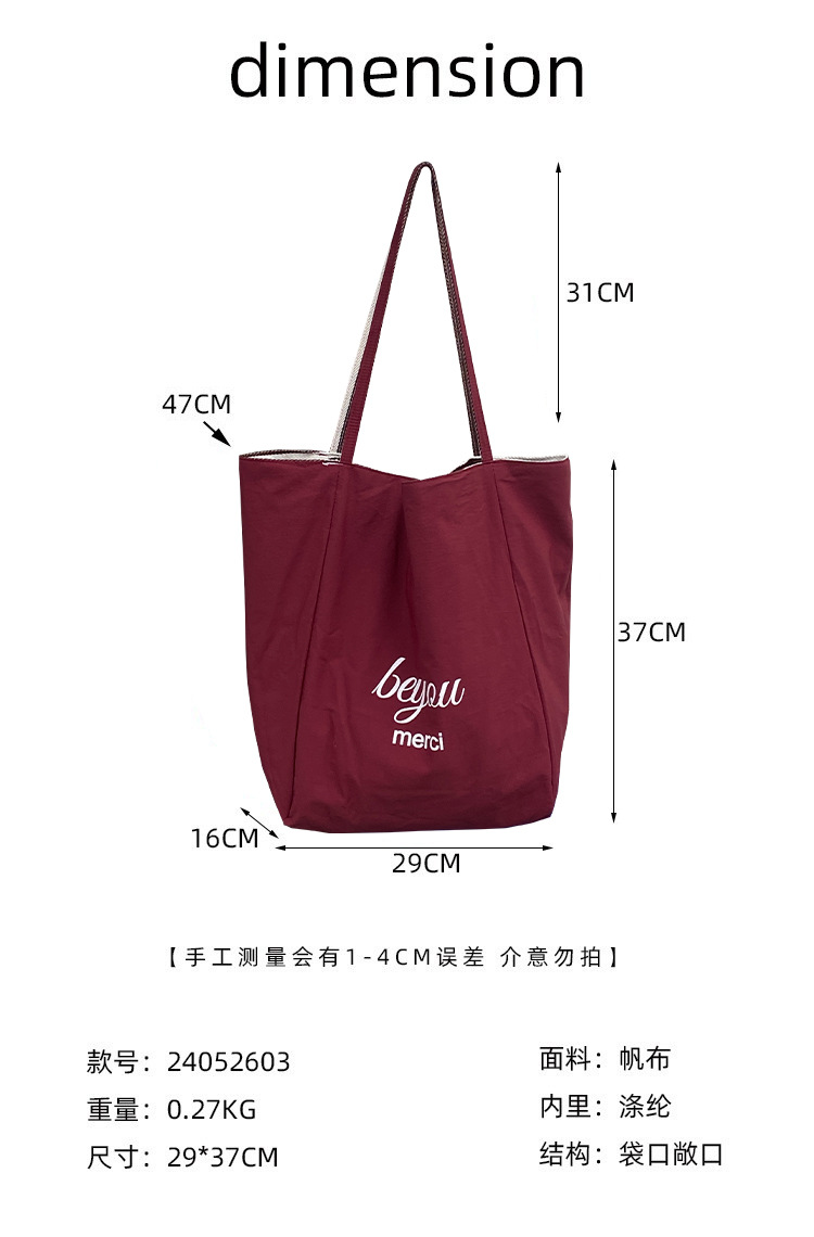줄무늬 캔버스 가방 2024 새로운 한국 스타일 인 토트 캐주얼 가방 어깨 대용량 토트 백 쇼핑백