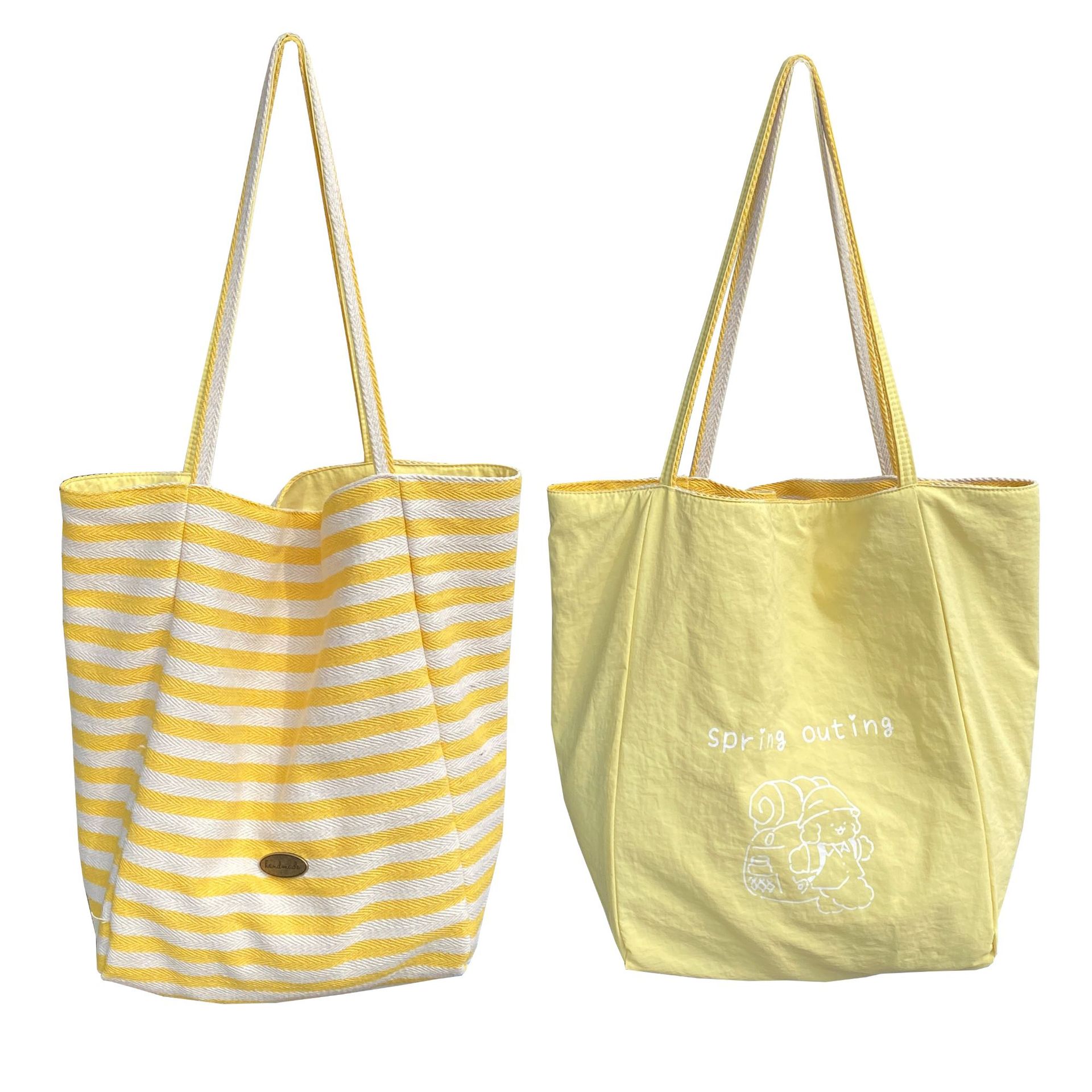 • 강아지 프린트 스트라이프 양면 어깨: 노란색