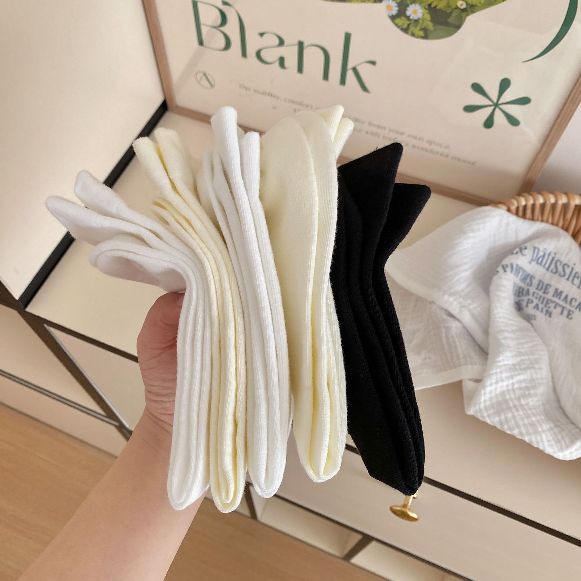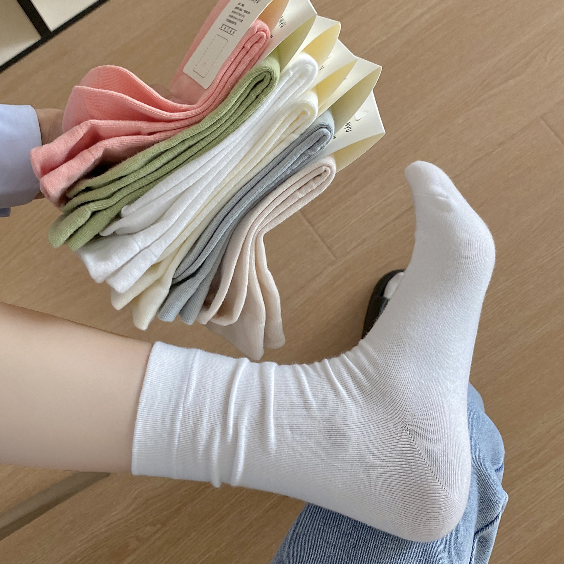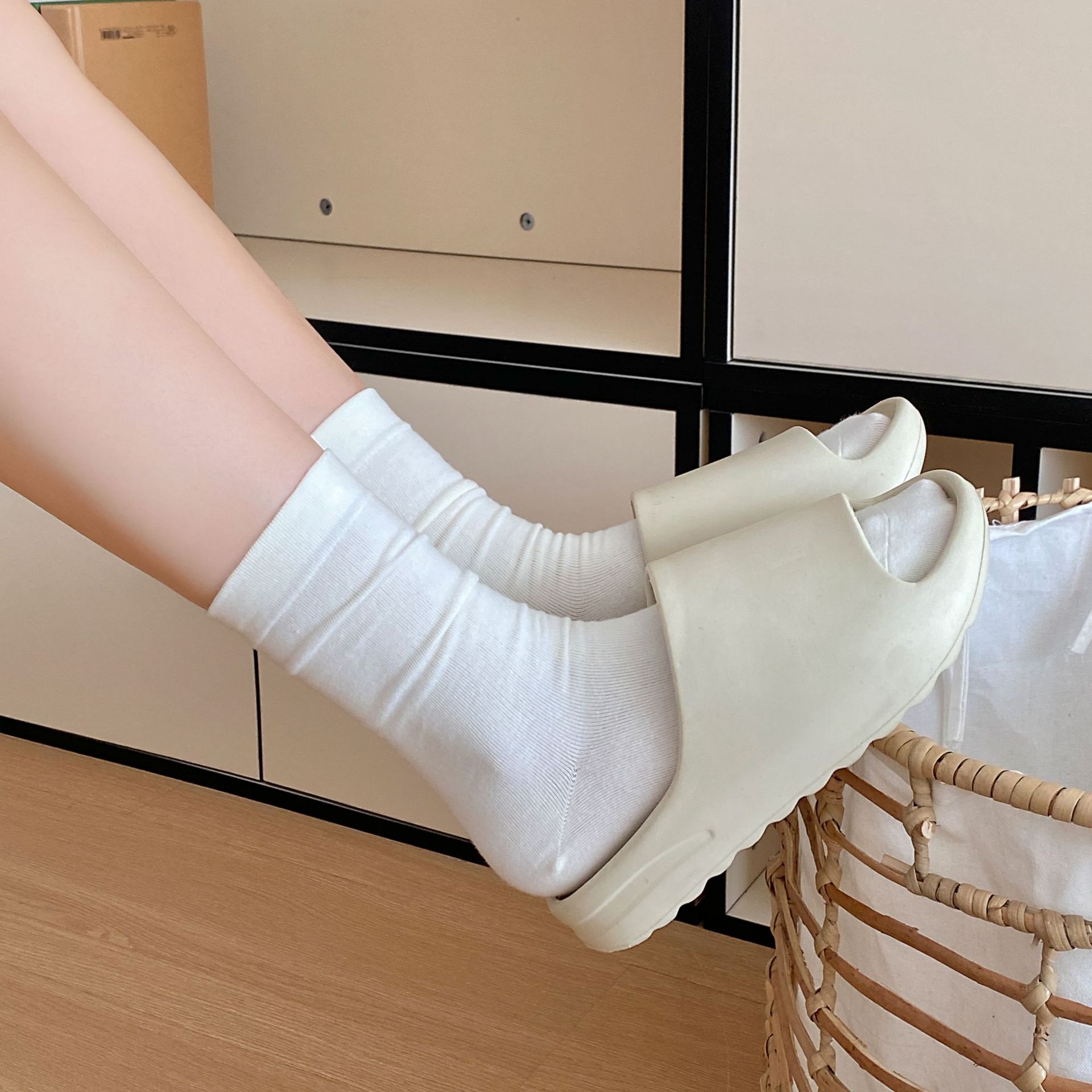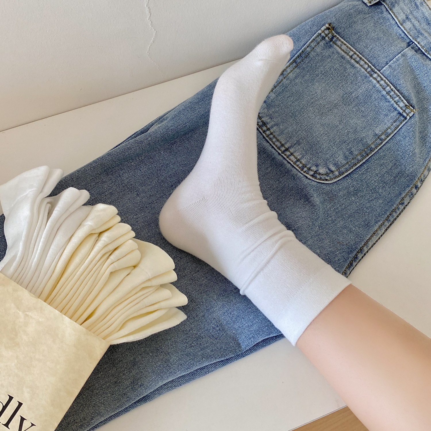 봄과 여름 흰색 포장 양말 어린이 중간 길이 양말 달 양말 노인 느슨한 양말 순수 면 일본 뼈없는 스타킹