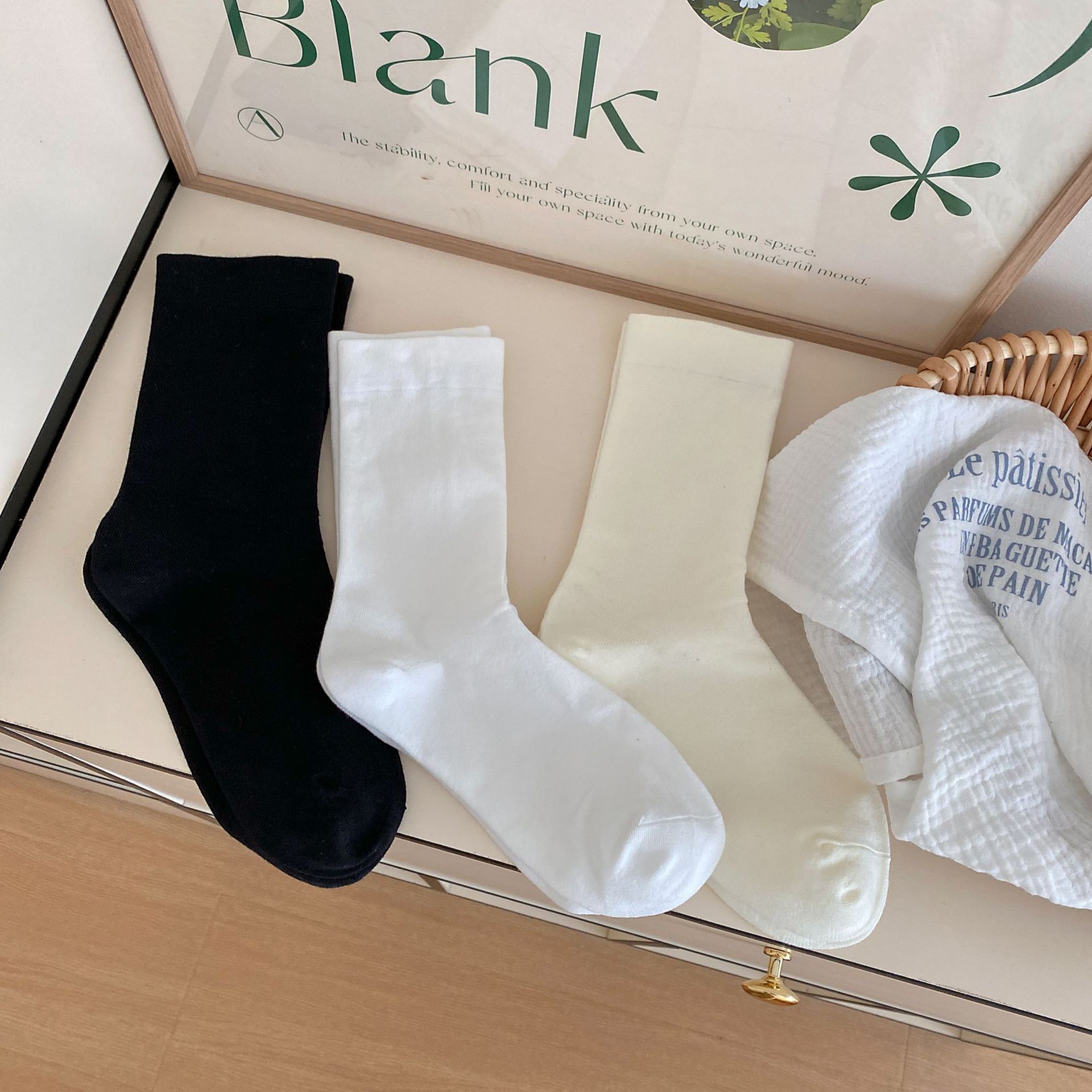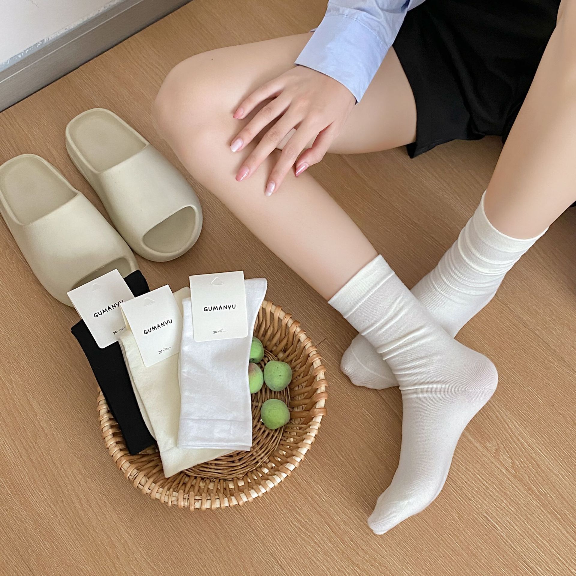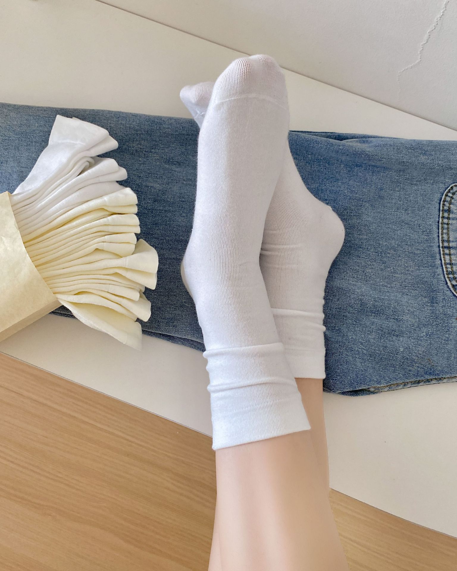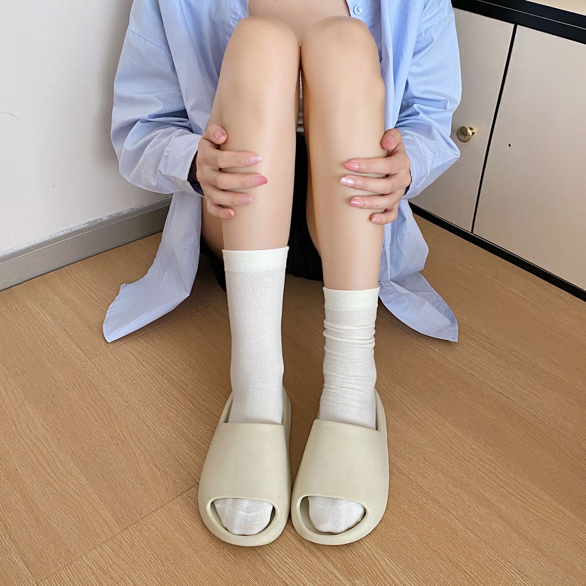 봄과 여름 흰색 포장 양말 어린이 중간 길이 양말 달 양말 노인 느슨한 양말 순수 면 일본 뼈없는 스타킹