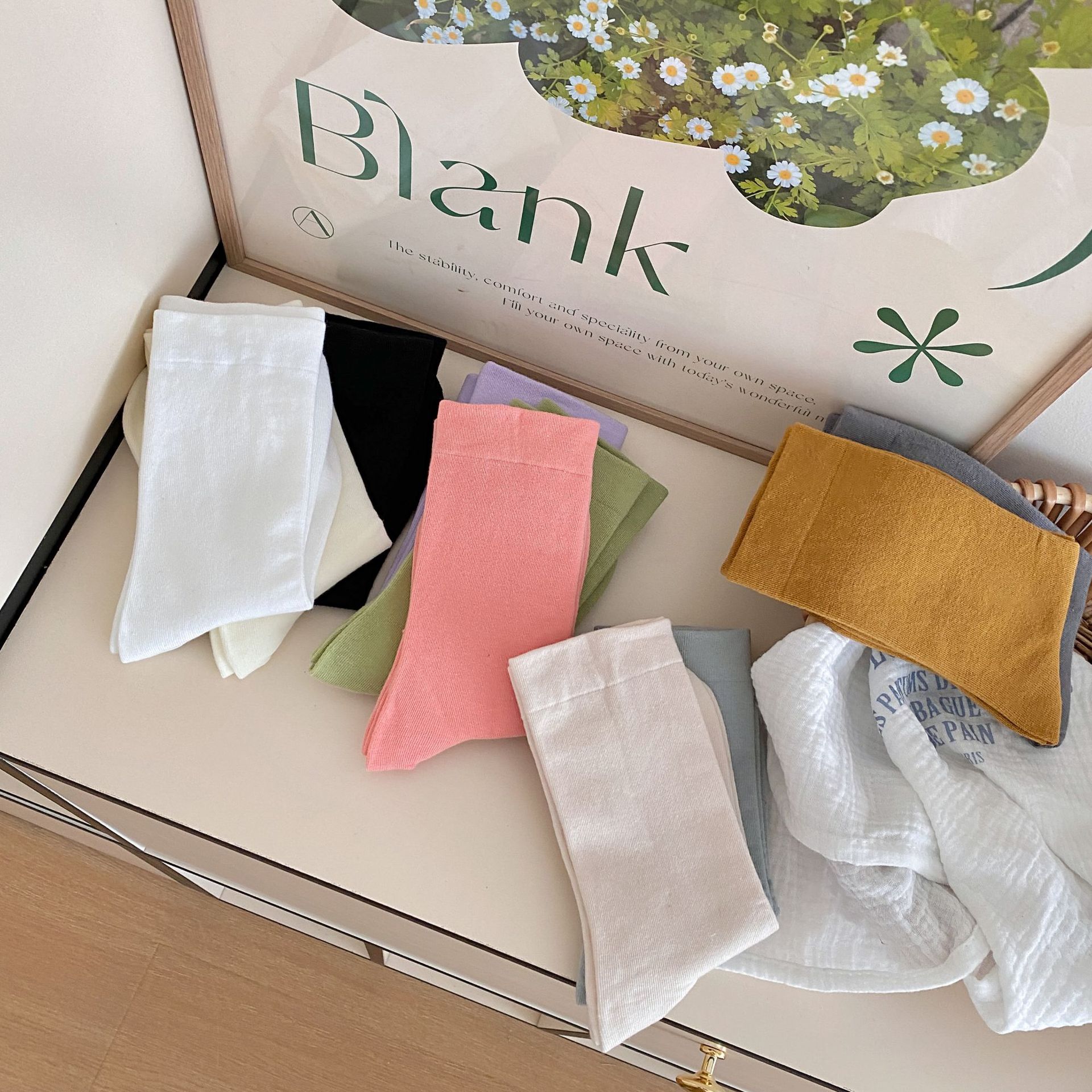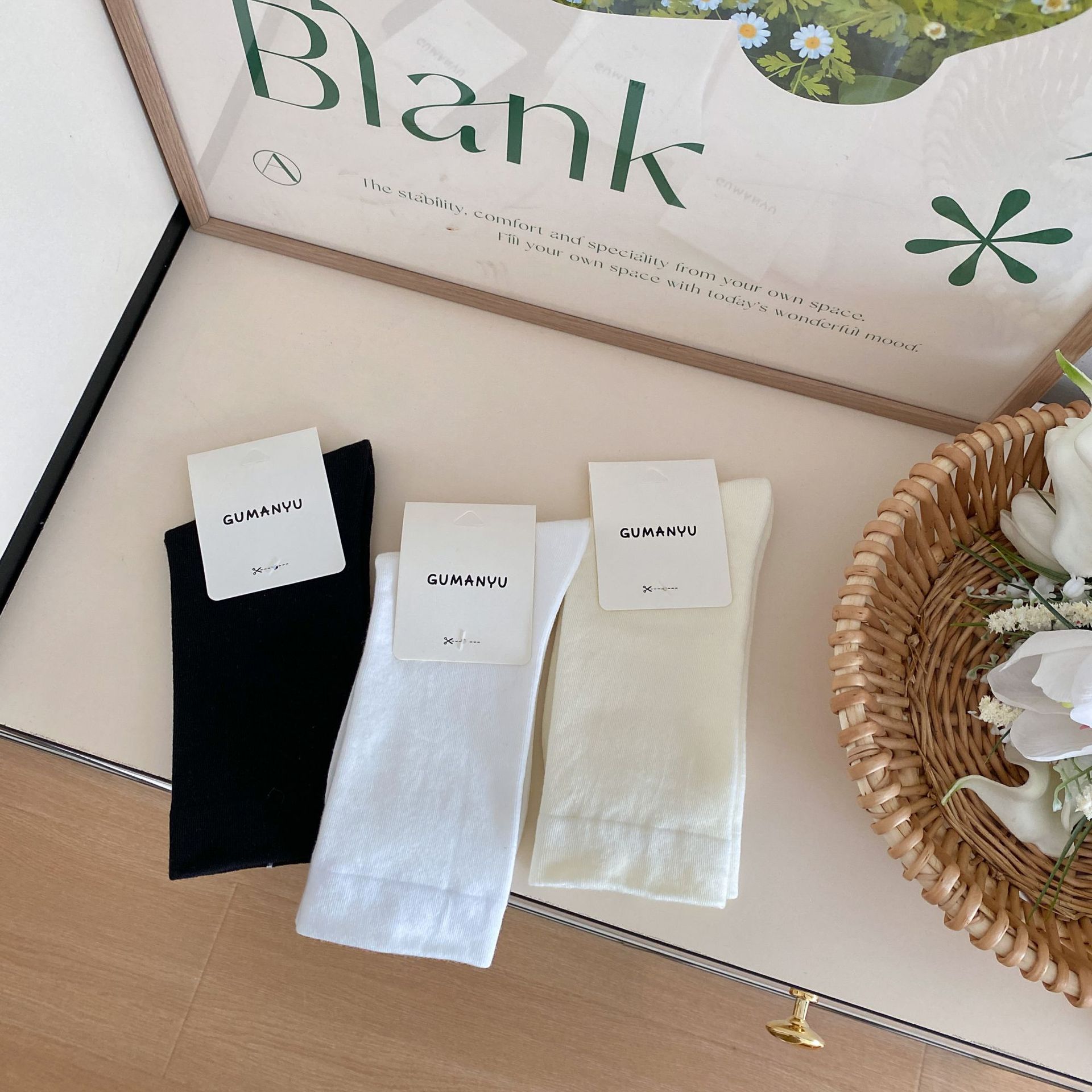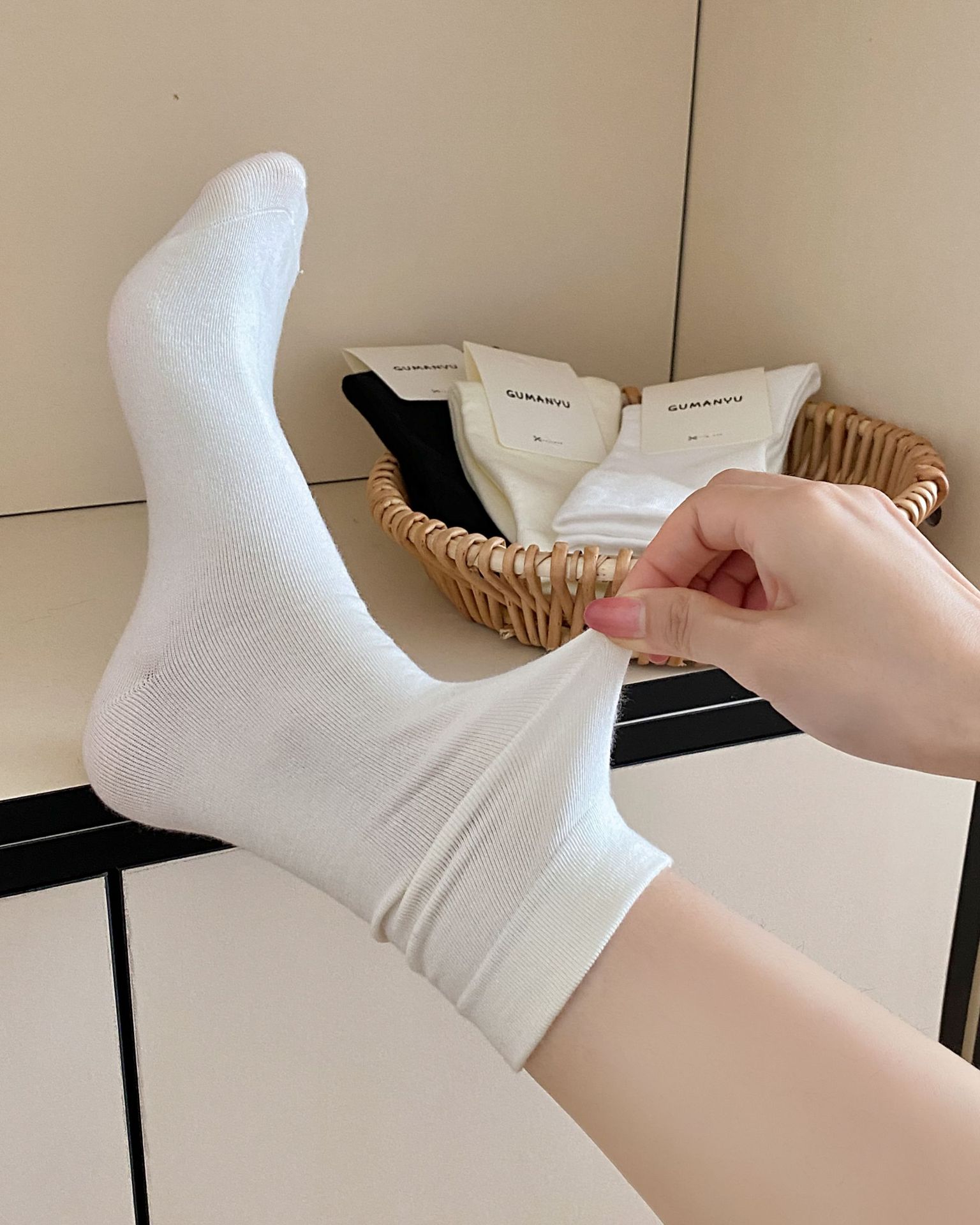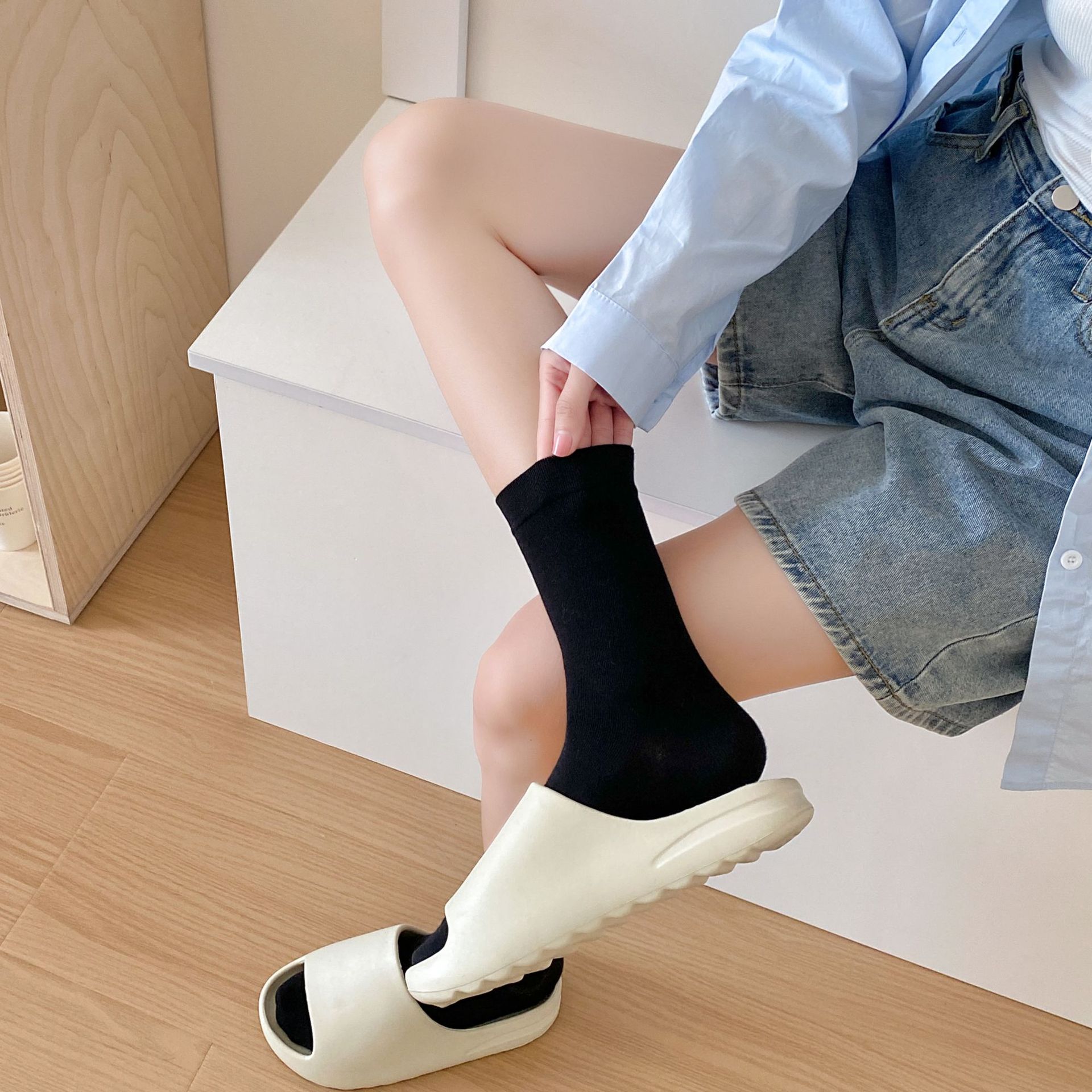 봄과 여름 흰색 포장 양말 어린이 중간 길이 양말 달 양말 노인 느슨한 양말 순수 면 일본 뼈없는 스타킹