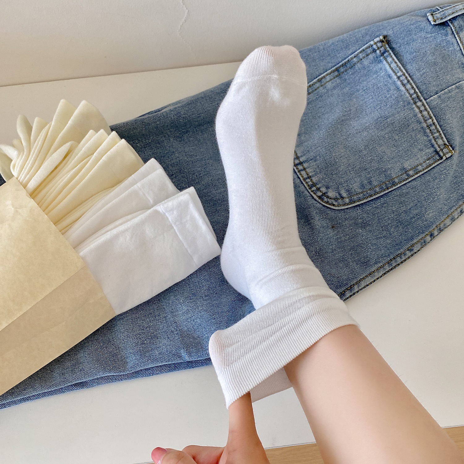 봄과 여름 흰색 포장 양말 어린이 중간 길이 양말 달 양말 노인 느슨한 양말 순수 면 일본 뼈없는 스타킹스토어 가기