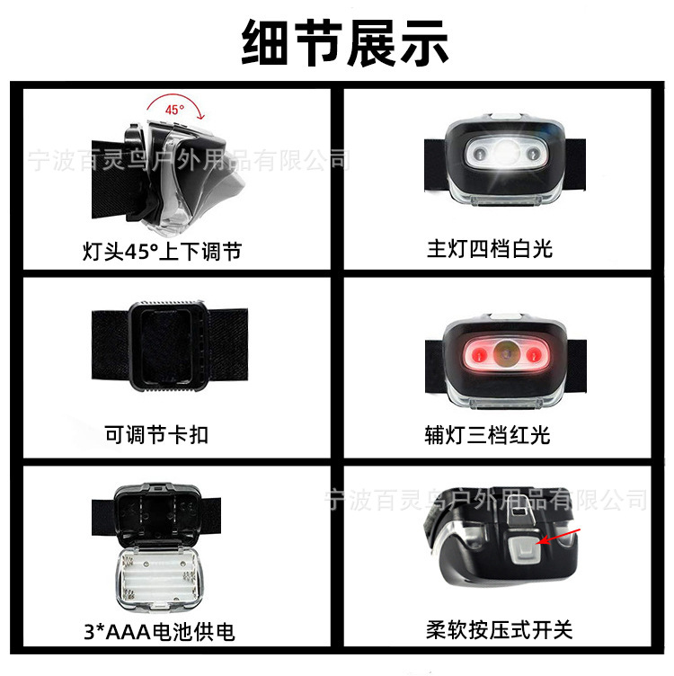调光模式:七档调光(白光: 强光-中亮-弱光-闪,长按开关切换到 红光:强光-SOS-爆闪)