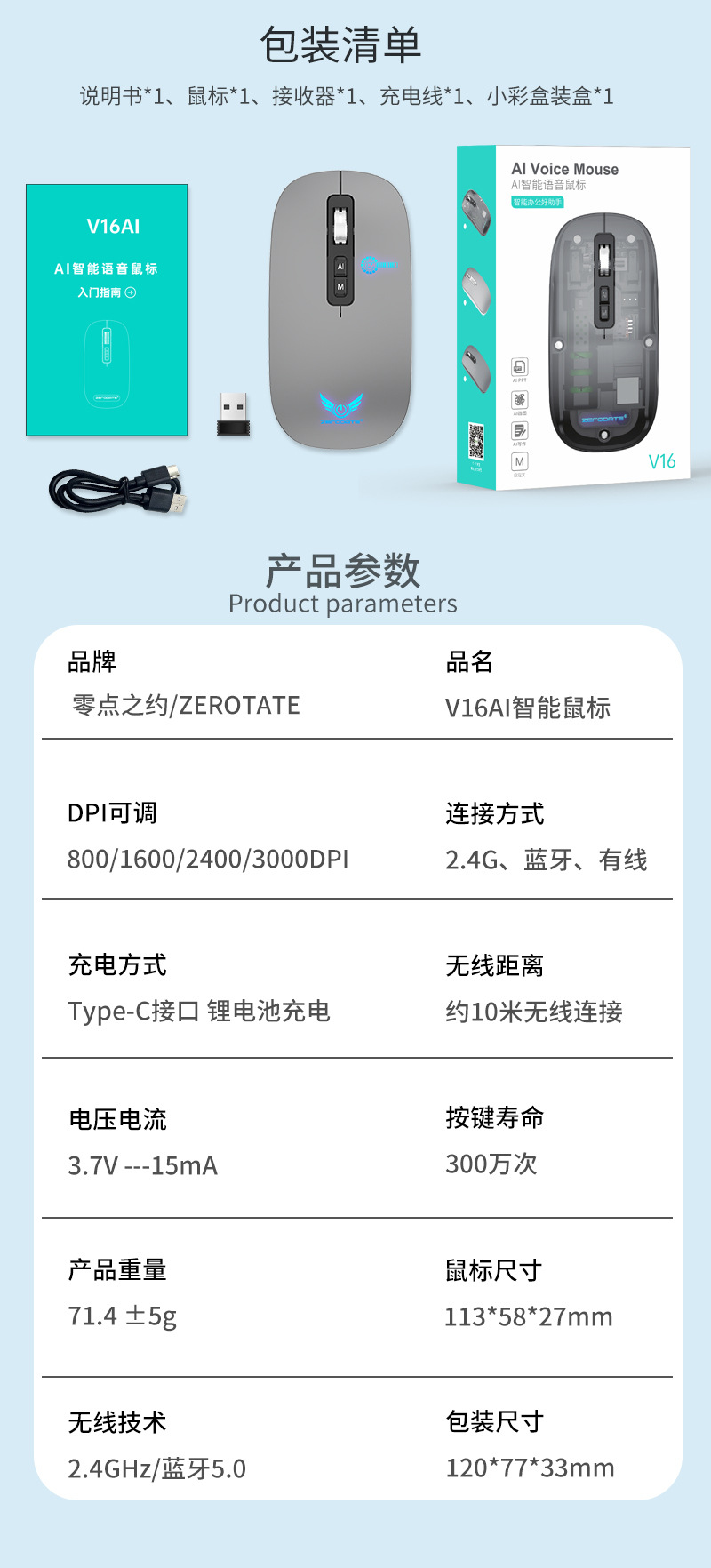공장 새로운 AI 스마트 마우스 V11 5 키 듀얼 모드 블루투스 번역 그리기 양식 PPT 음성 입력스토어 가기