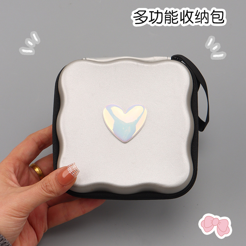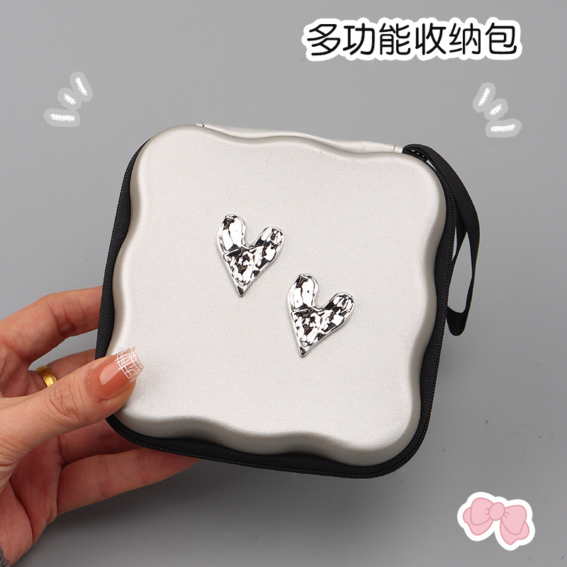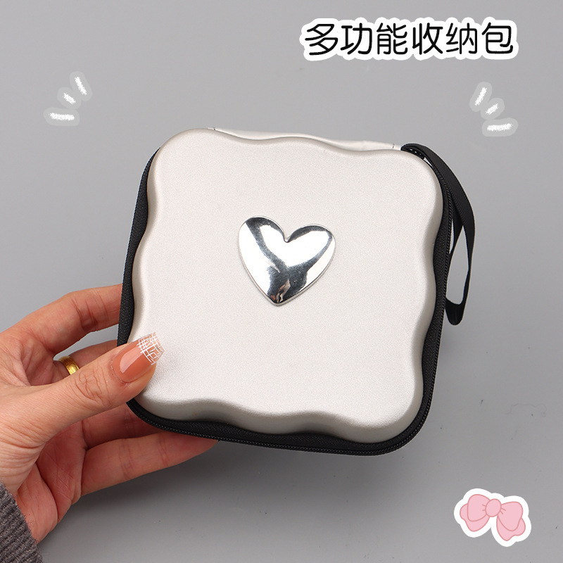 • Y128 [입체 실버 러브 하트] 실버 수납 가방