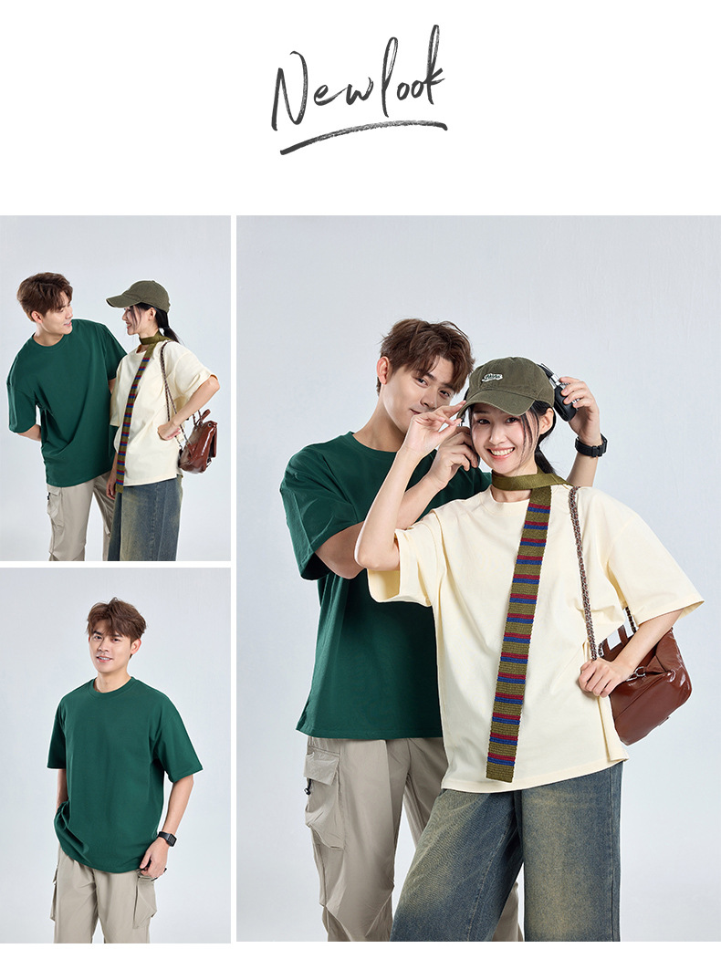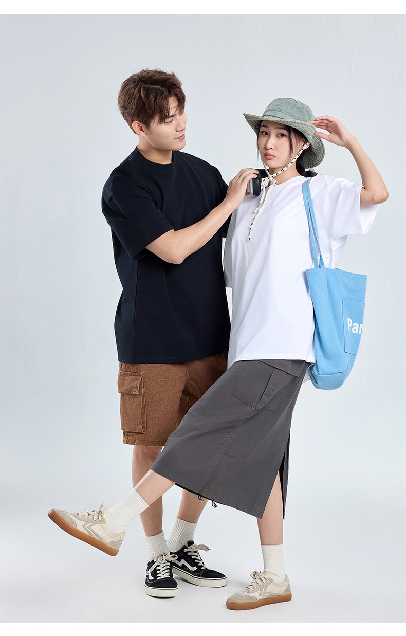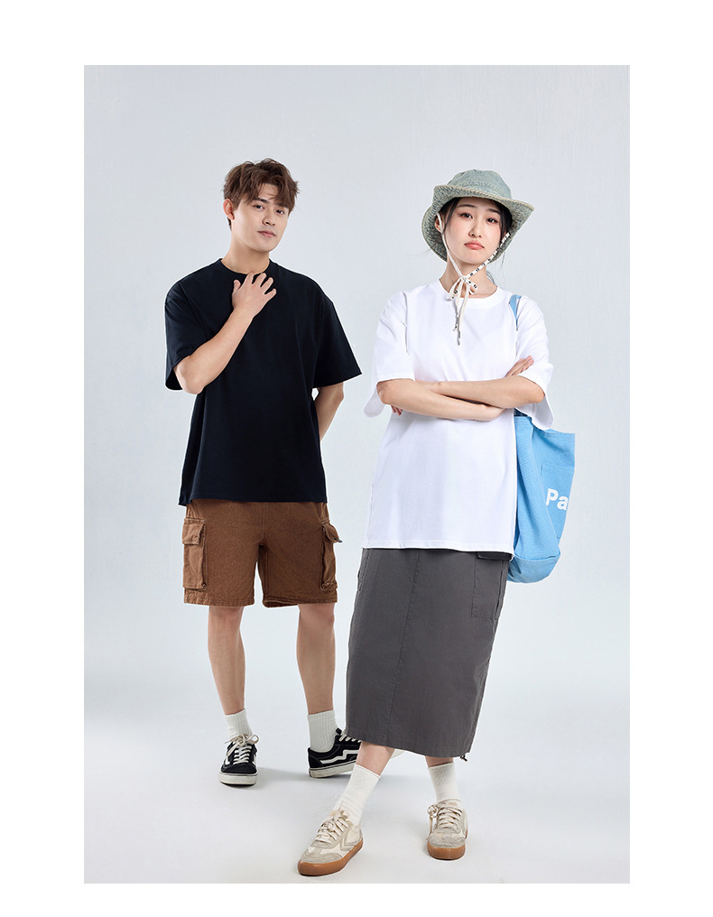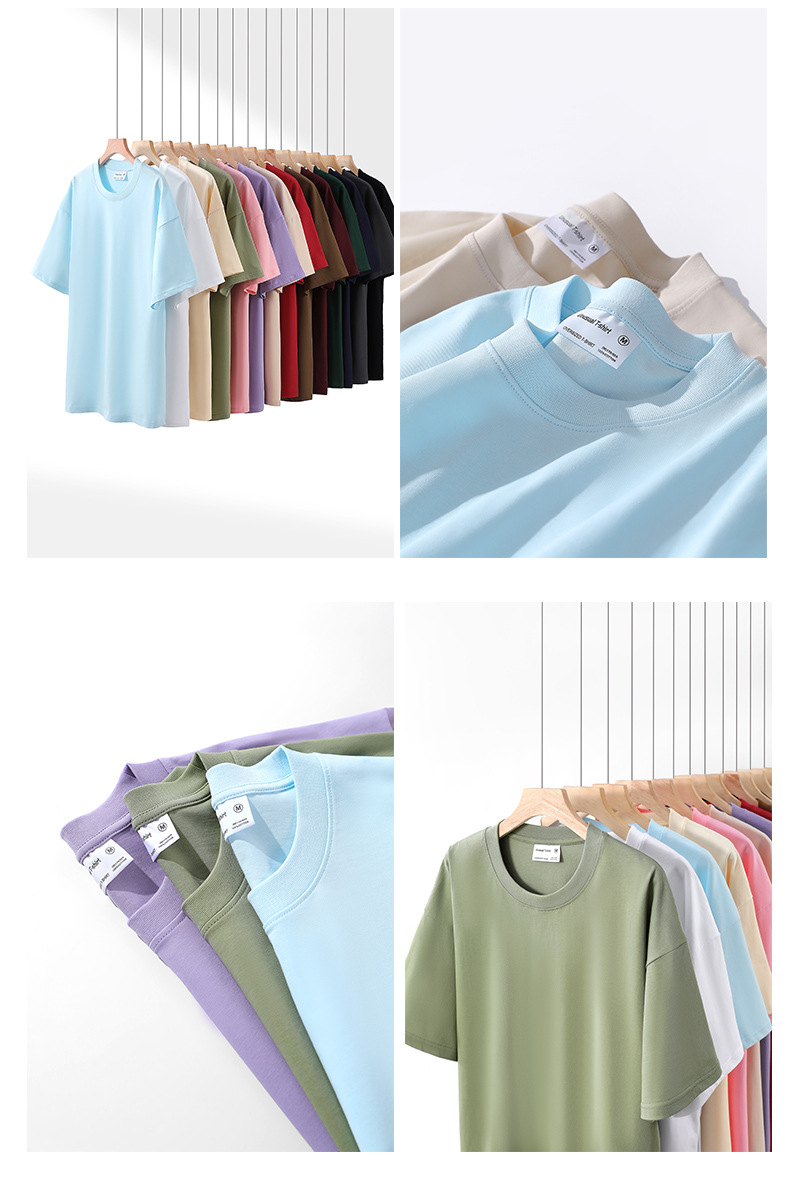 고품질 신장면 400g 무거운 이중 원사 불투명 반팔 티셔츠 남성용 루즈 캐주얼 바닥 셔츠 탑 여성 여름스토어 가기