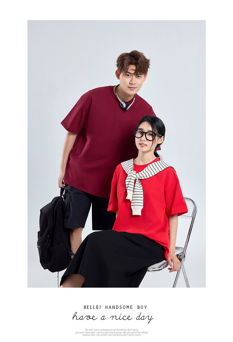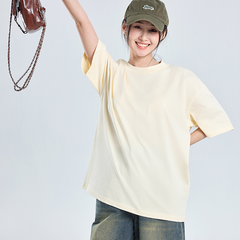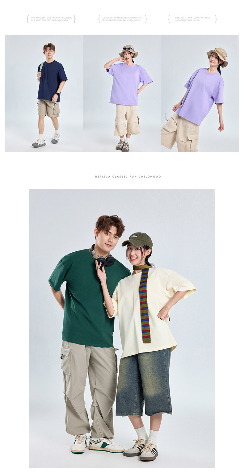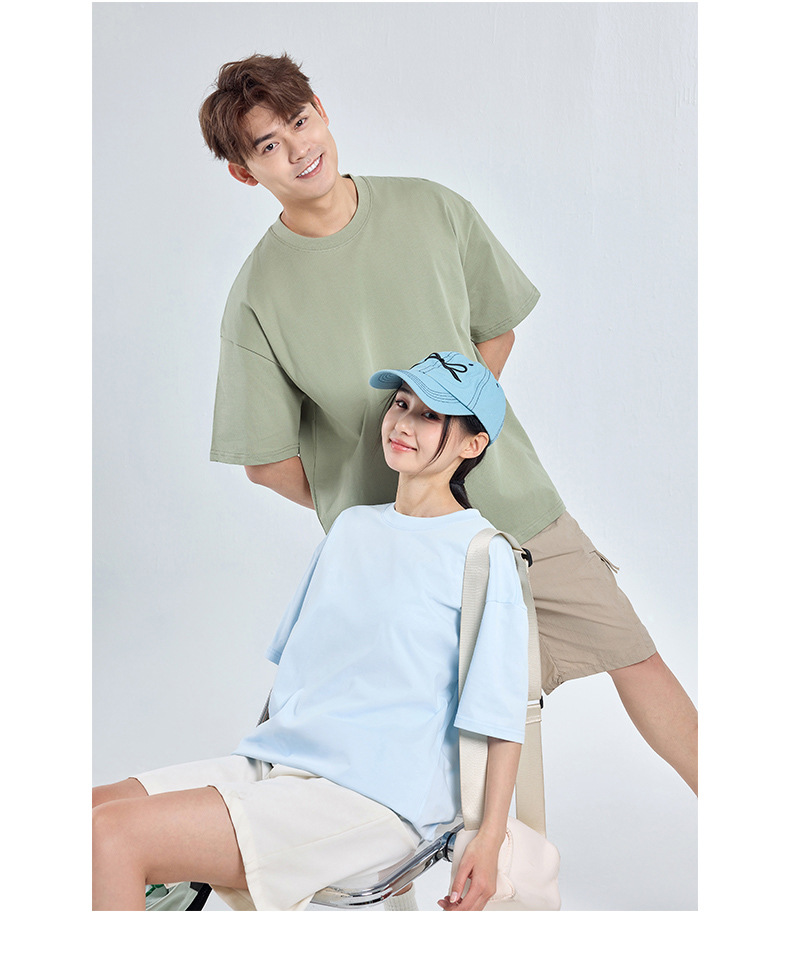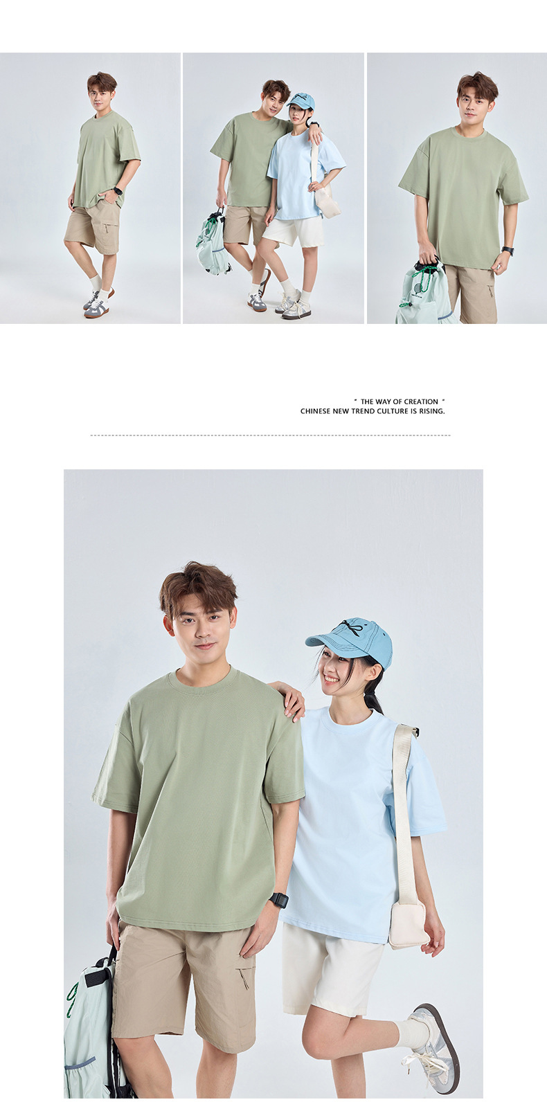 고품질 신장면 400g 무거운 이중 원사 불투명 반팔 티셔츠 남성용 루즈 캐주얼 바닥 셔츠 탑 여성 여름스토어 가기
