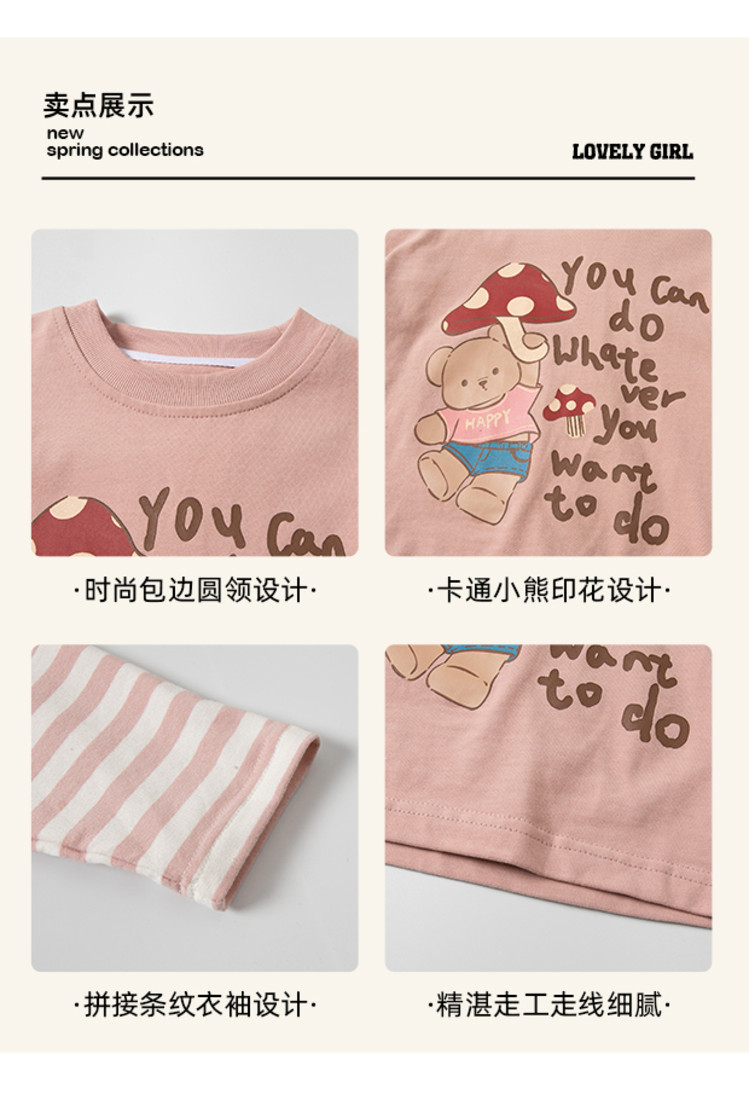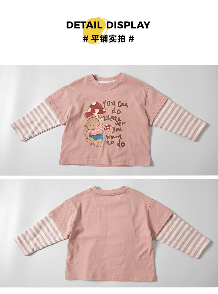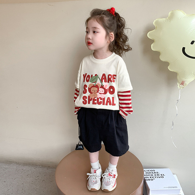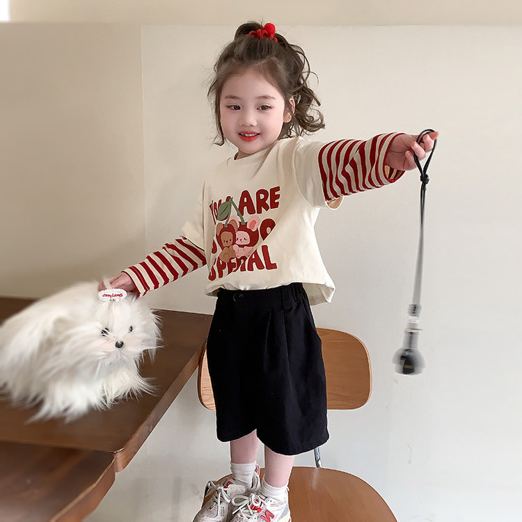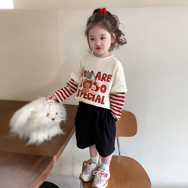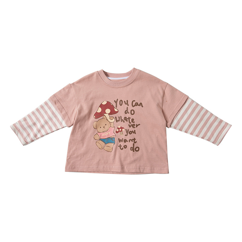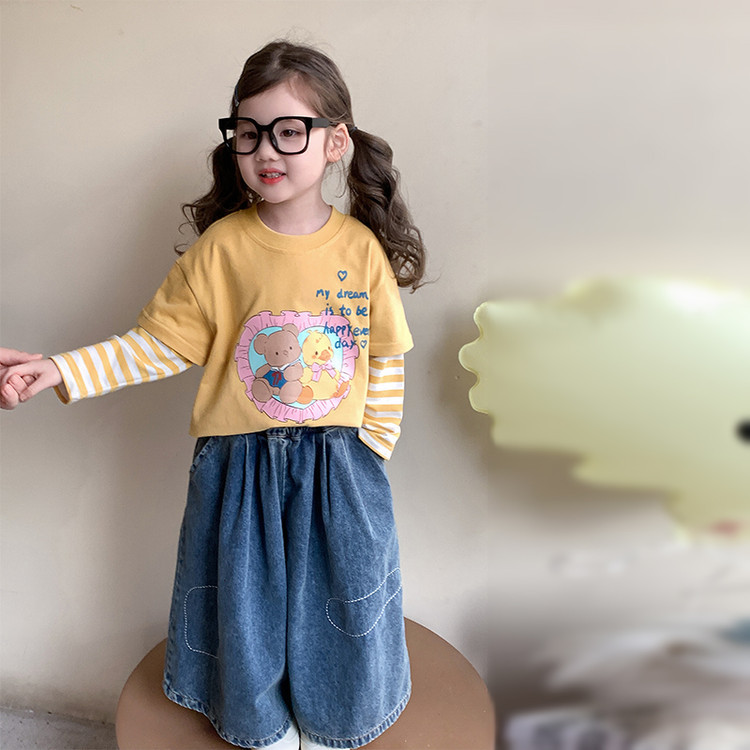 소녀 긴팔 티셔츠 봄과 가을 2025 새로운 어린이 만화 탑 봄 소녀의 가짜 투피스베이스 셔츠스토어 가기