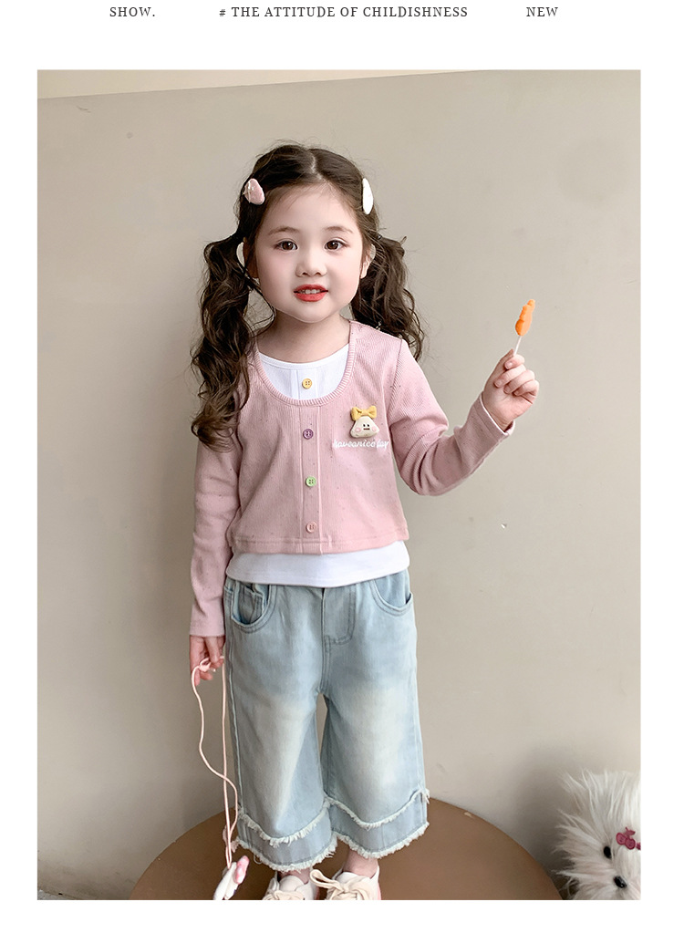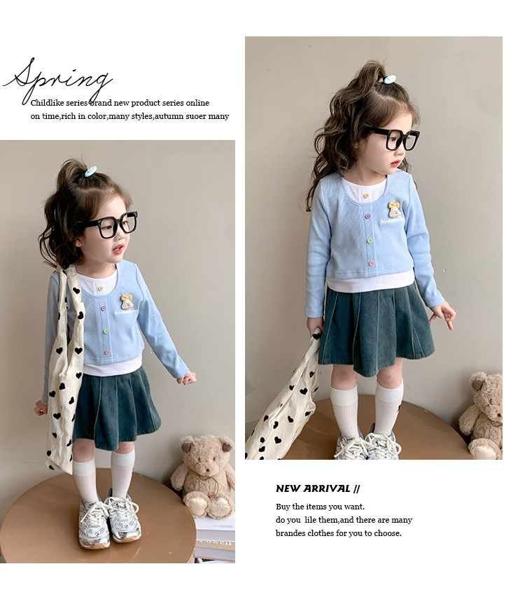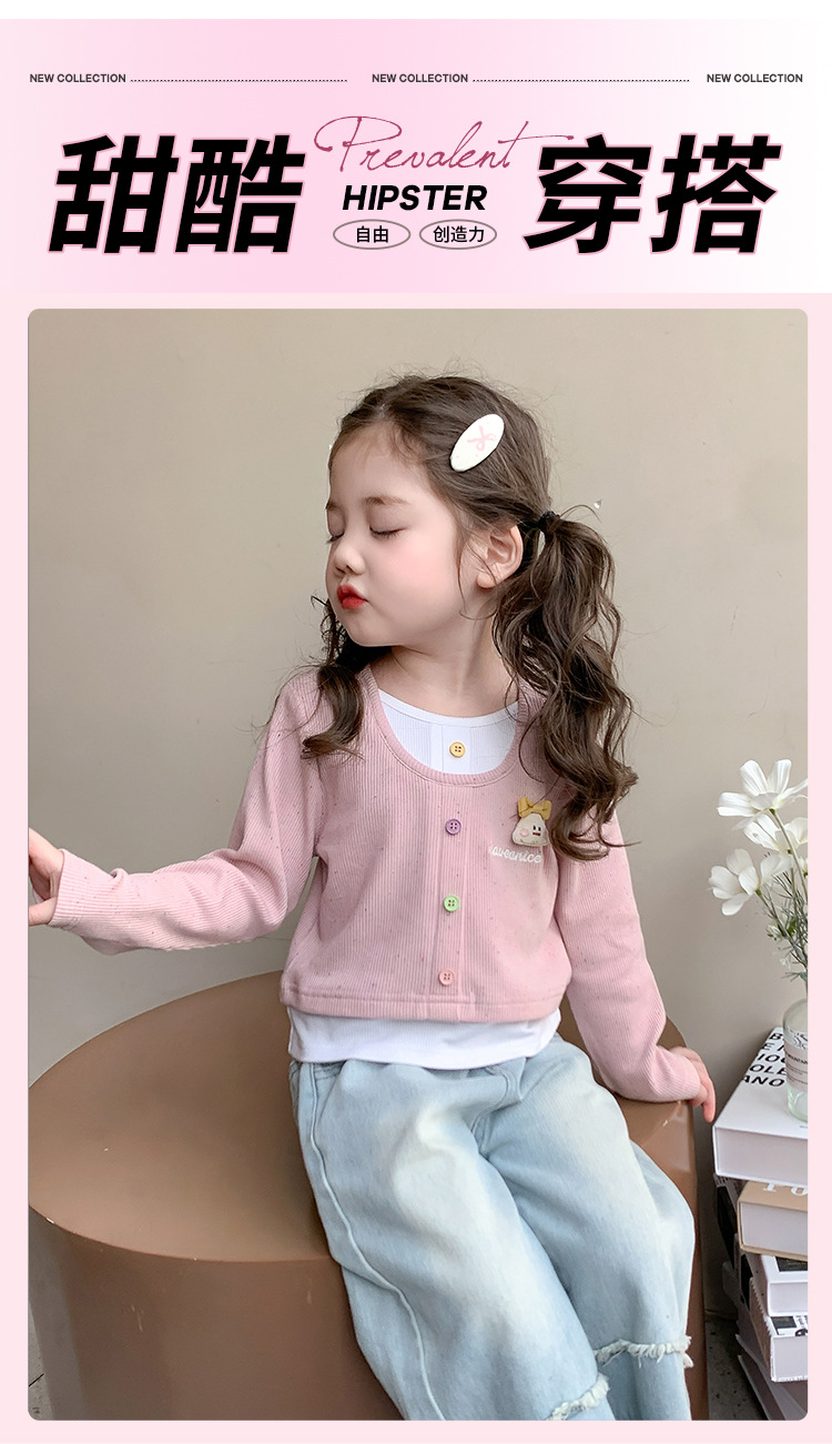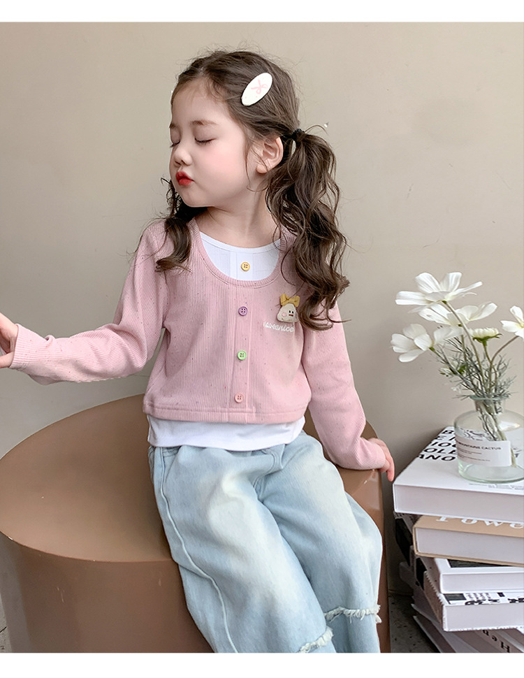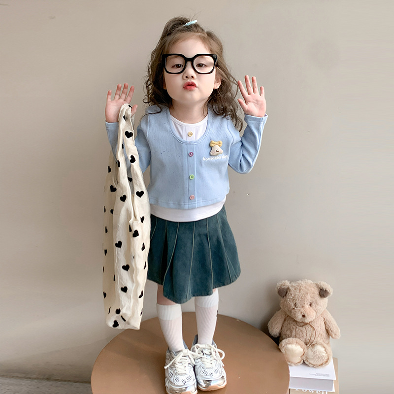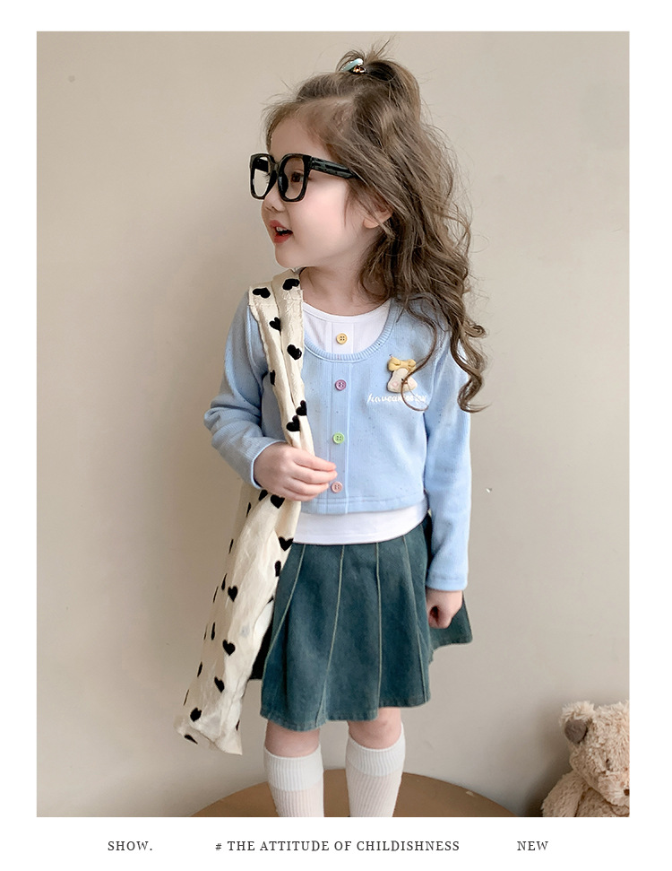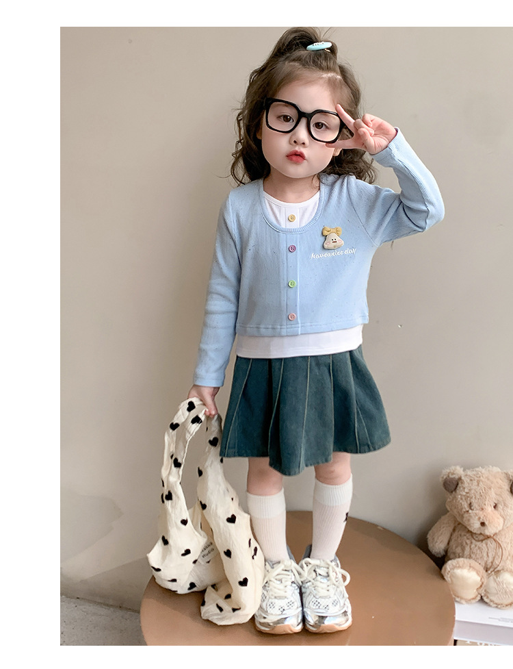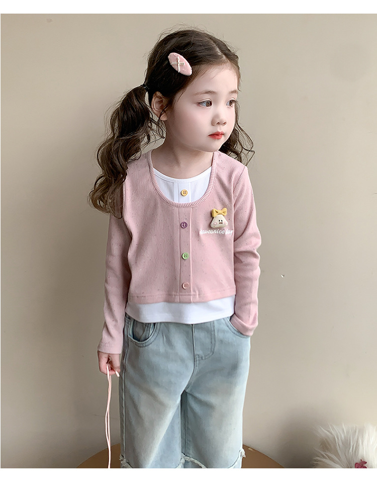 소녀 만화 가짜 투피스 서양식 긴팔 티셔츠 새 어린이 학교베이스 셔츠 봄 2025스토어 가기