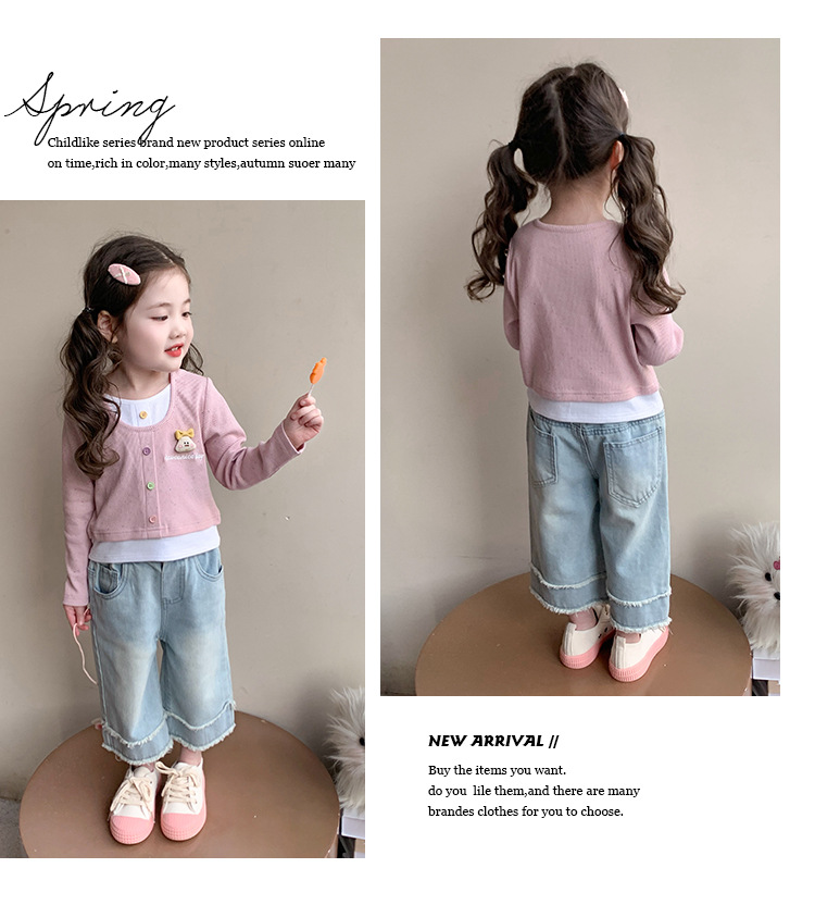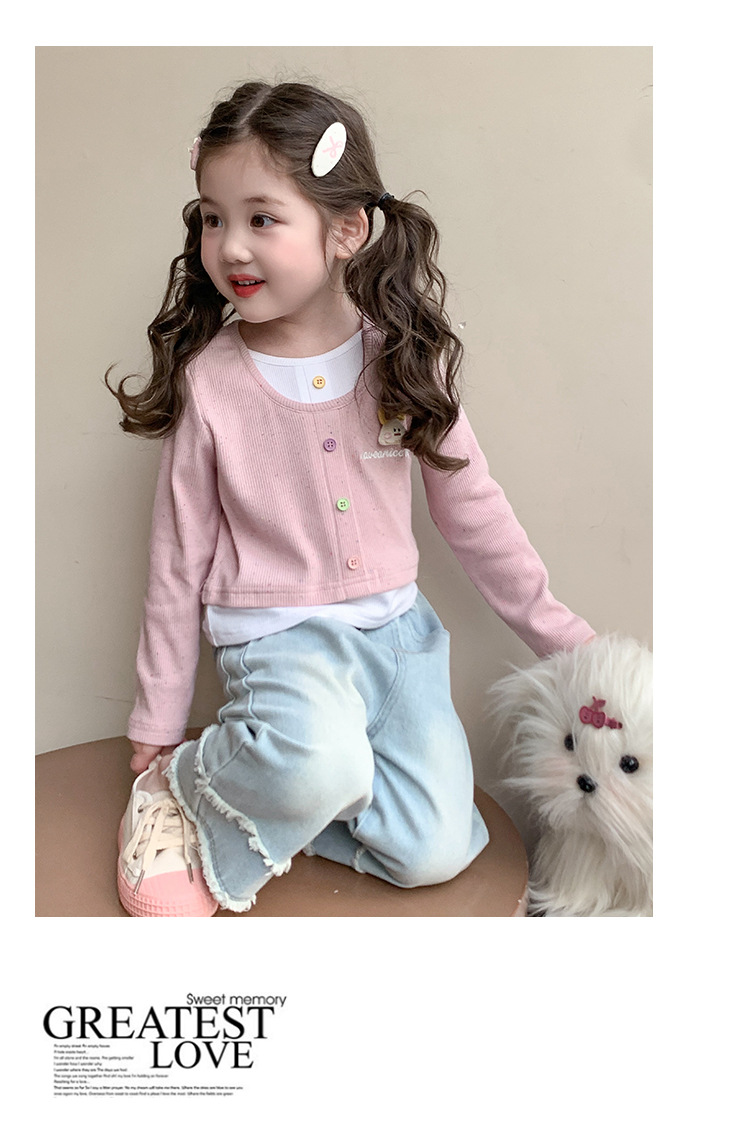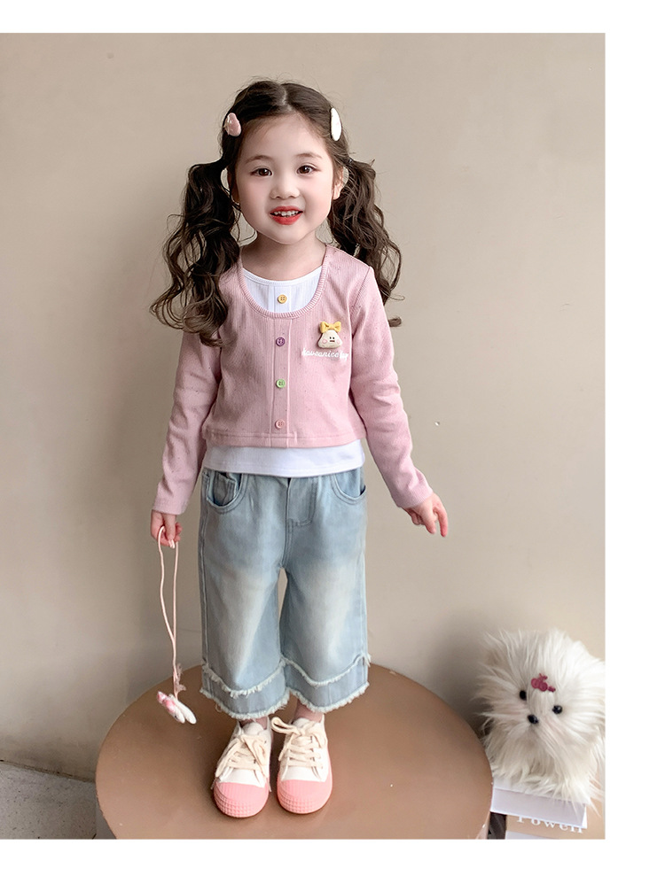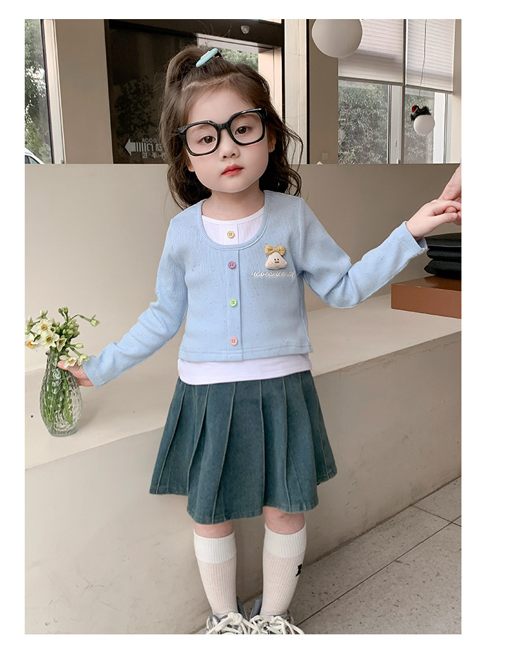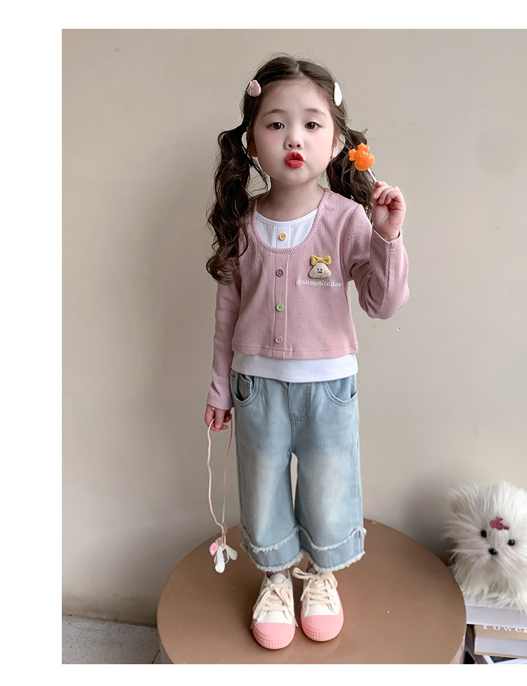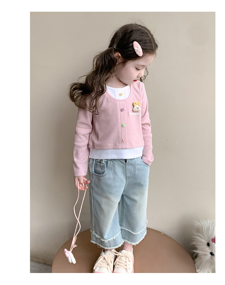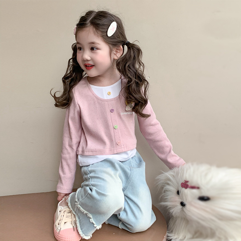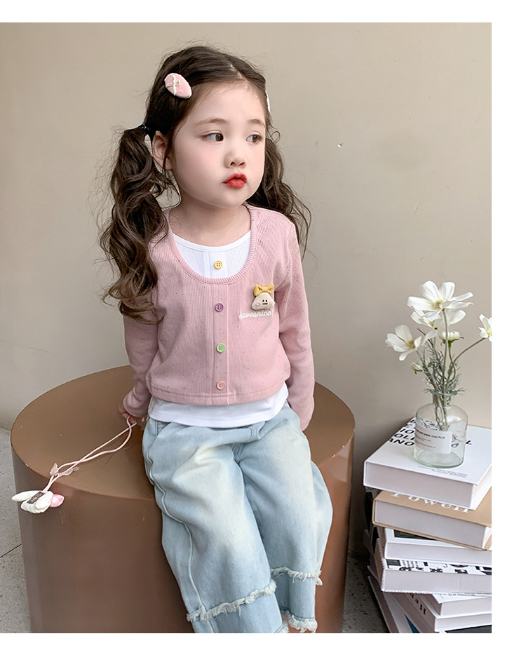 소녀 만화 가짜 투피스 서양식 긴팔 티셔츠 새 어린이 학교베이스 셔츠 봄 2025스토어 가기