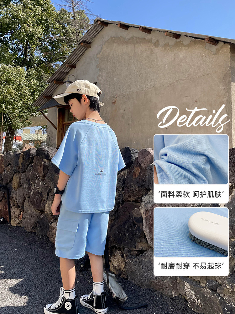 일본과 한국식 느슨한 남녀 세트 여름 착용 얇은 스포츠 세트 중장 티셔츠 바지 캐주얼 한국식 투피스 세트스토어 가기