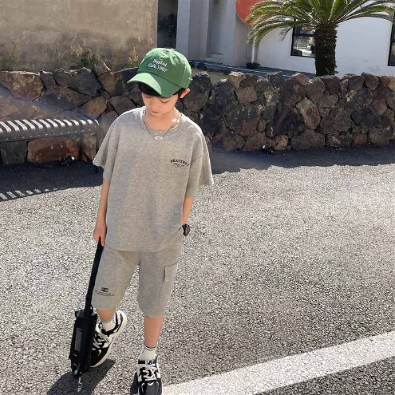 일본과 한국식 느슨한 남녀 세트 여름 착용 얇은 스포츠 세트 중장 티셔츠 바지 캐주얼 한국식 투피스 세트