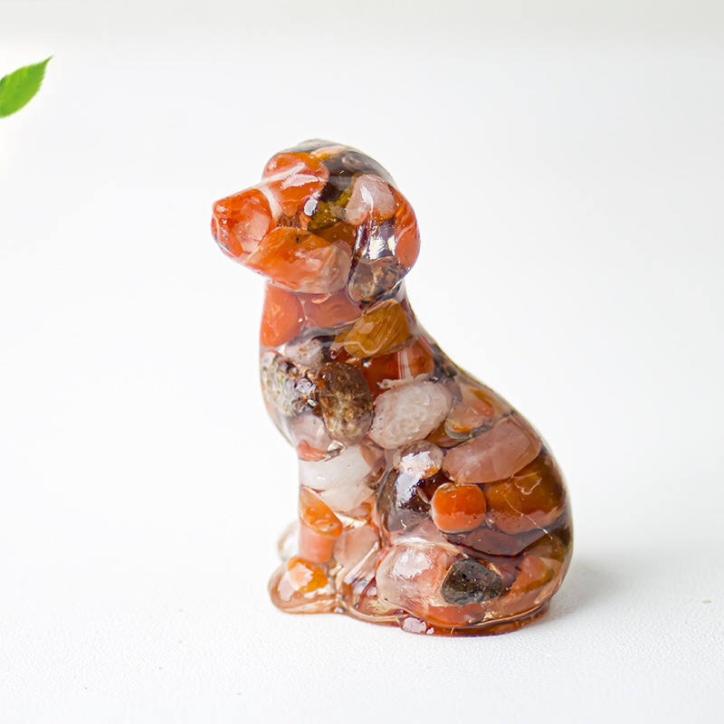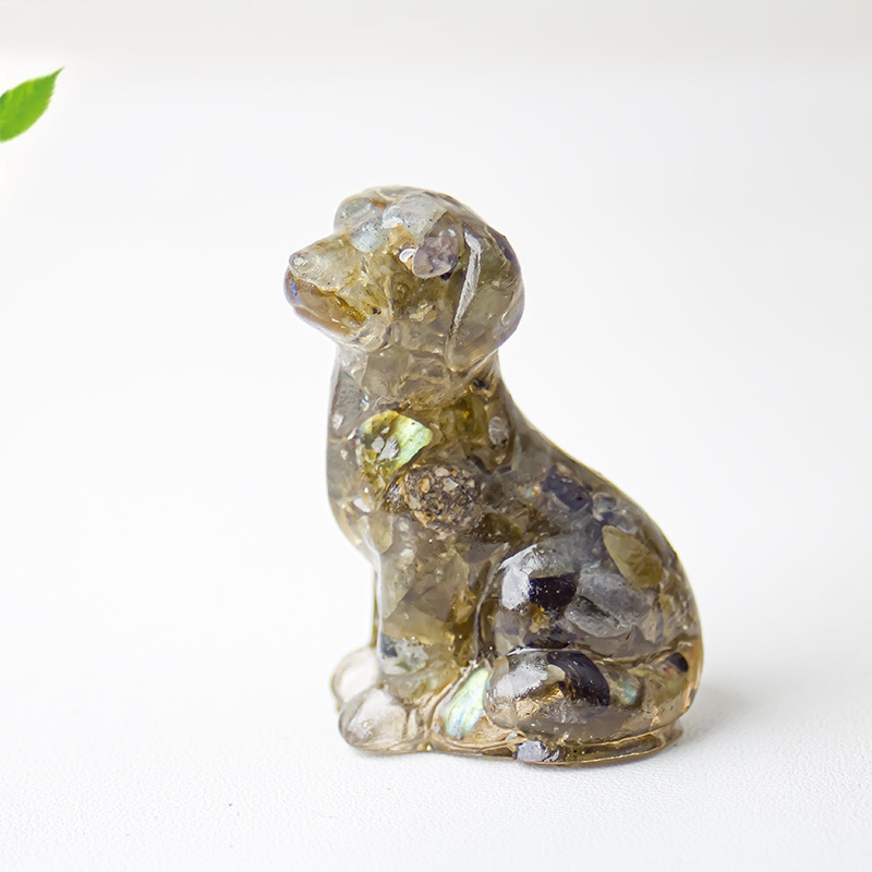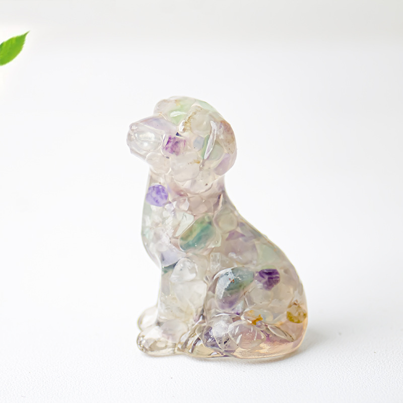 수지와 자연 크리스탈 앉아 강아지 장식품 녹색 심기 데스크탑 사무실 홈 동상 장식스토어 가기