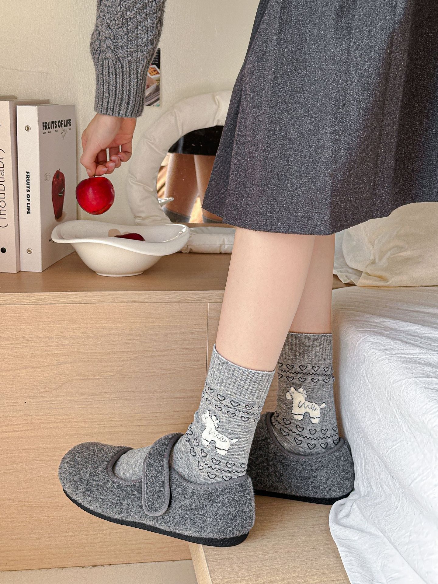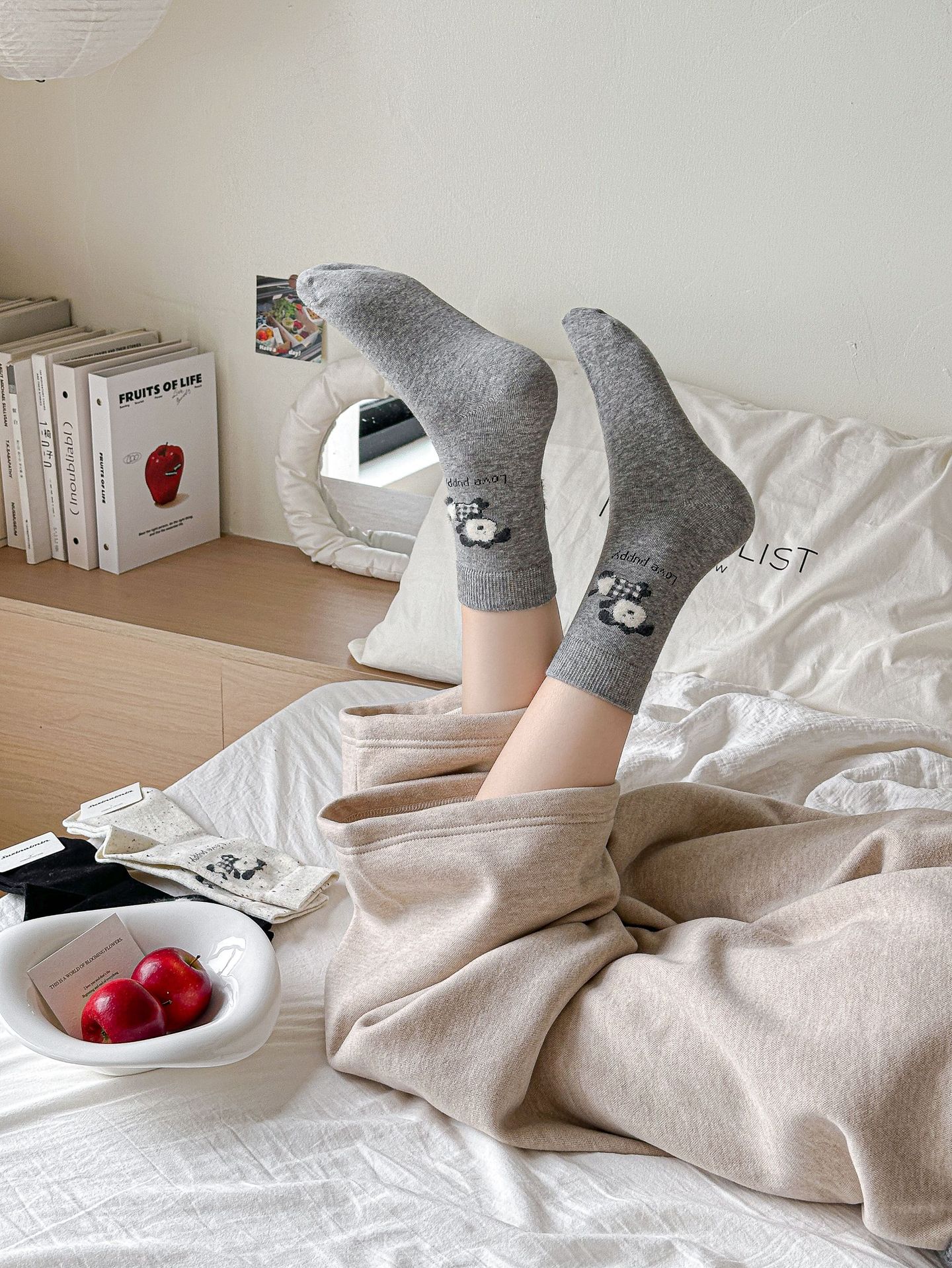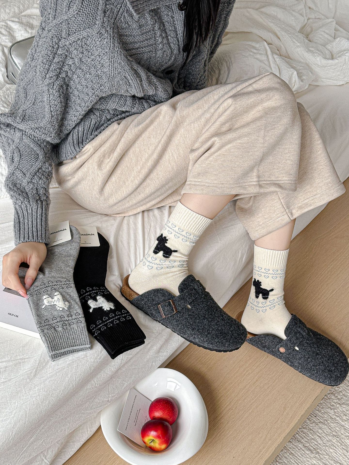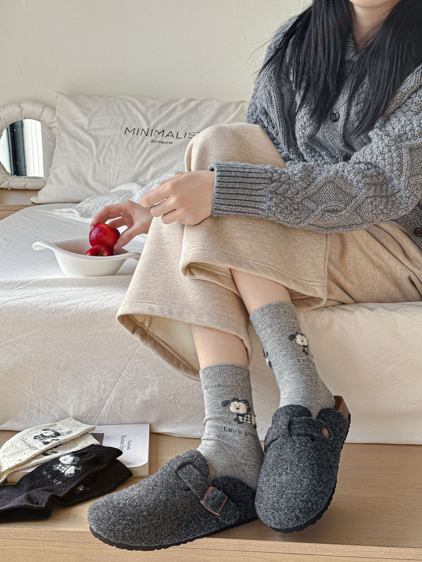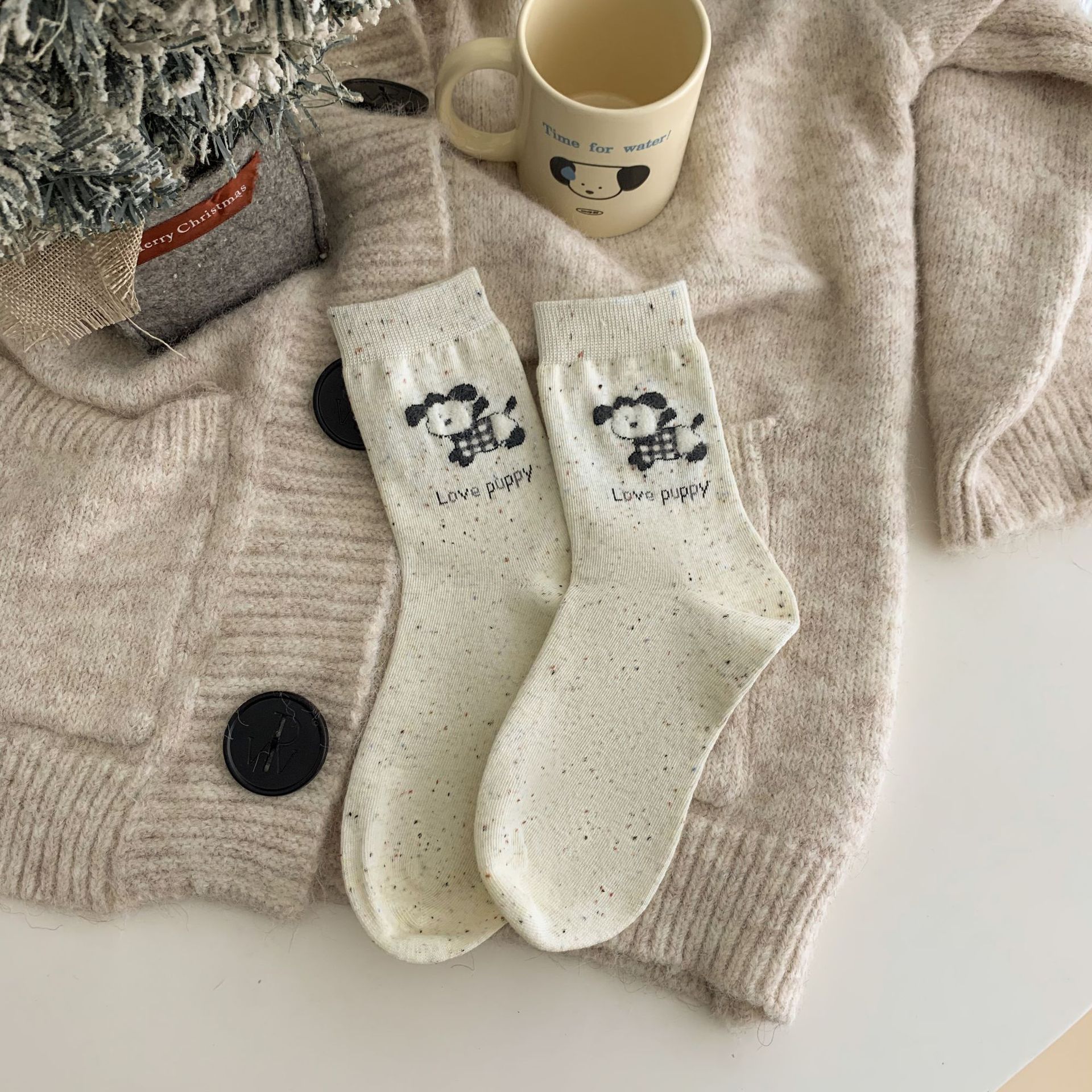 회색 양말 여성의 중간 튜브 양말 봄과 가을 귀여운 만화 사랑 활 민족 스타일 페어 아일랜드 강아지 양말
