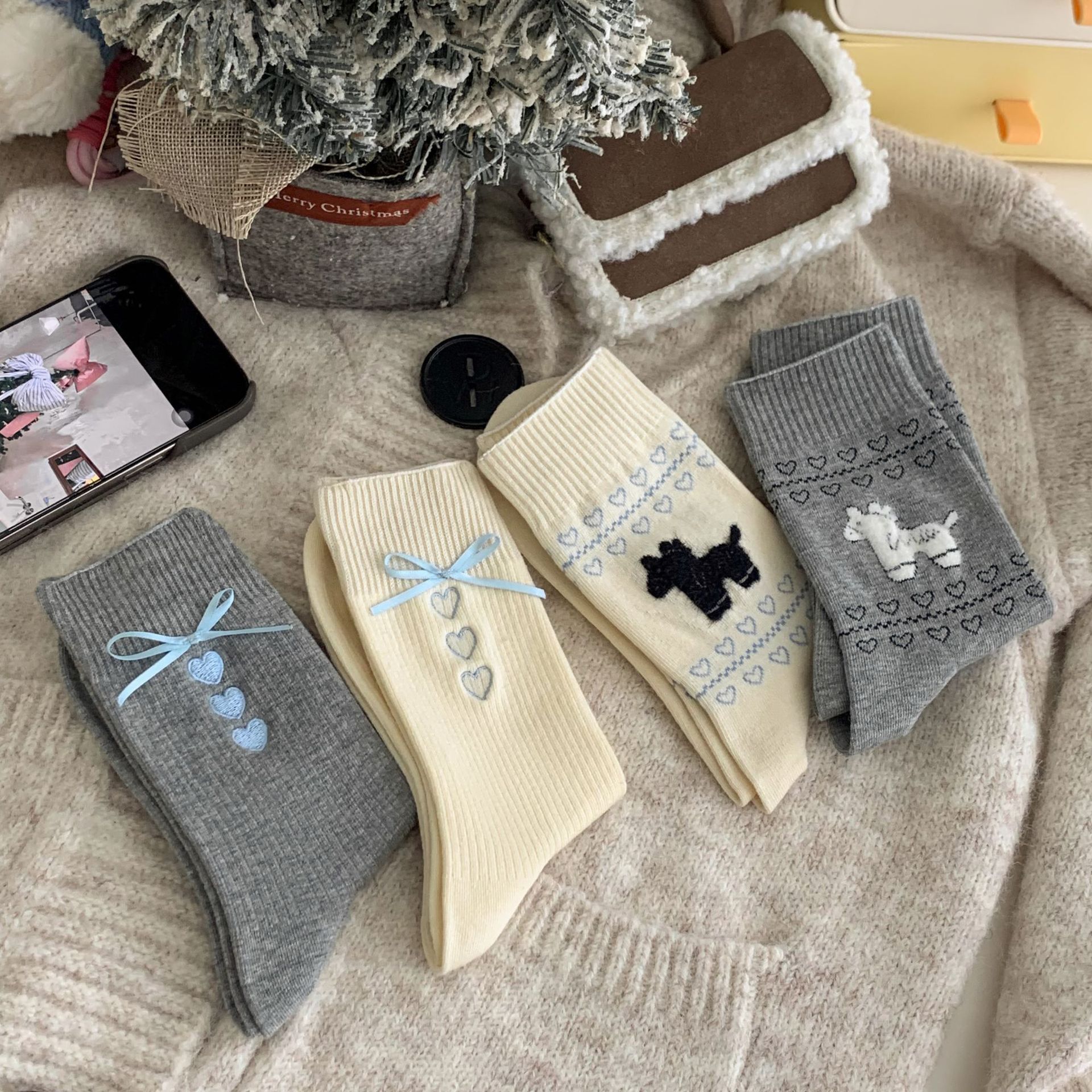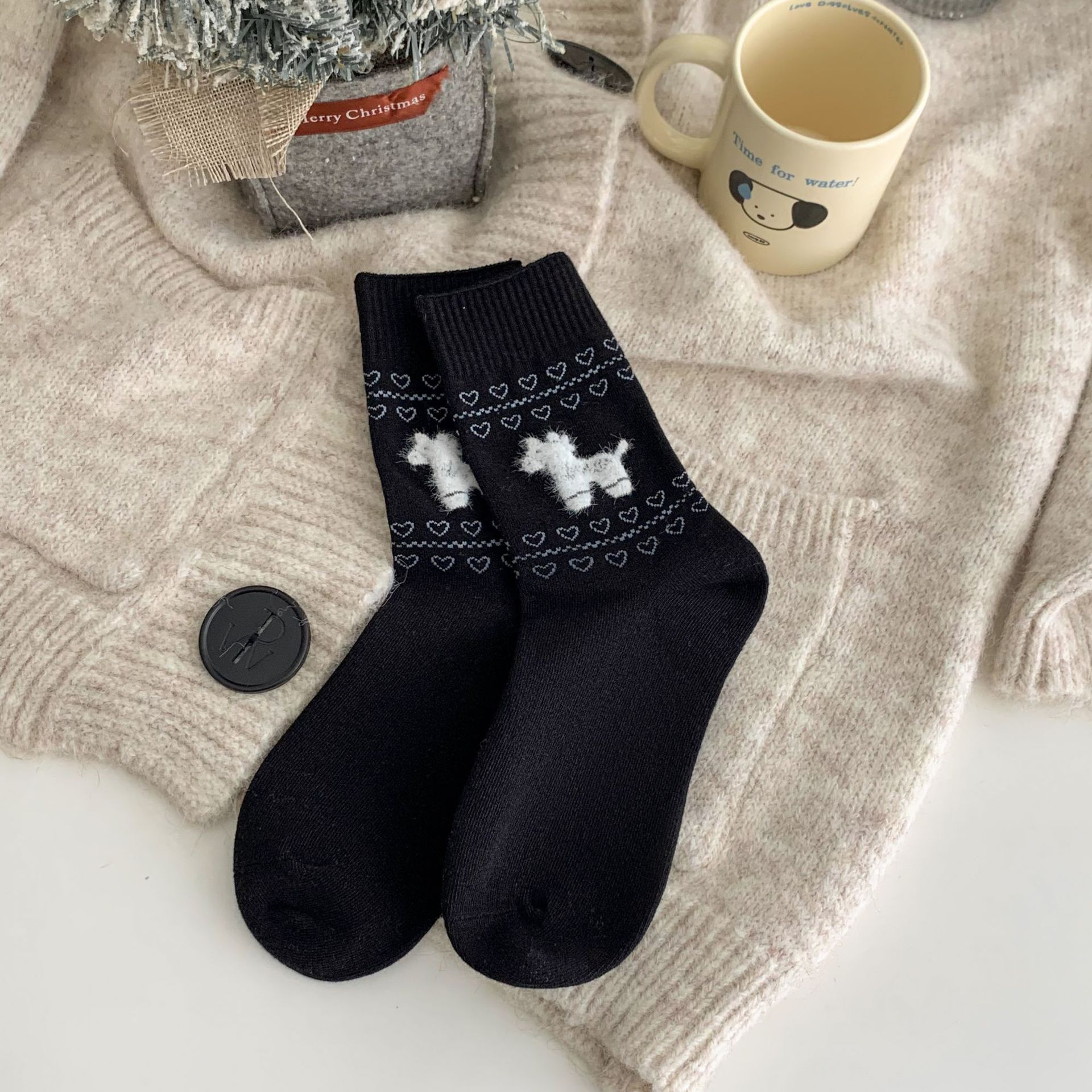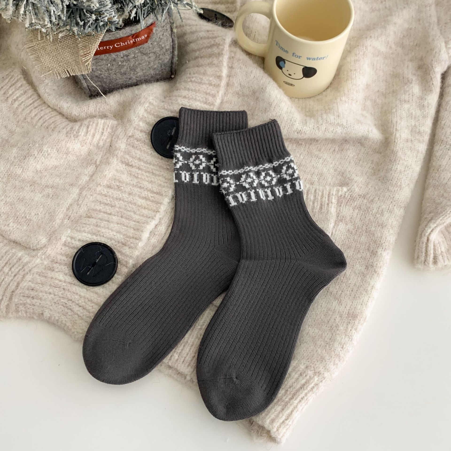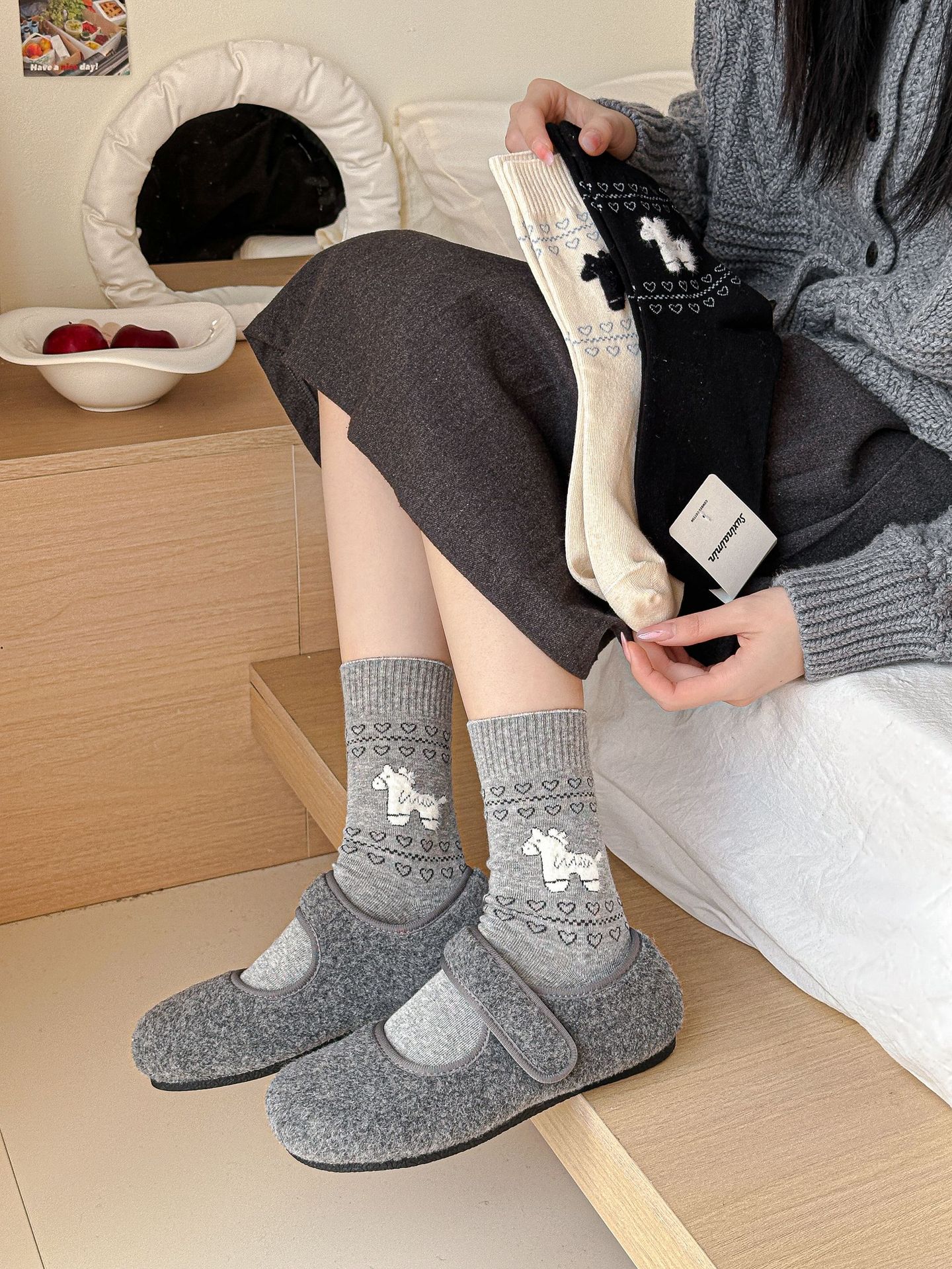 회색 양말 여성의 중간 튜브 양말 봄과 가을 귀여운 만화 사랑 활 민족 스타일 페어 아일랜드 강아지 양말
