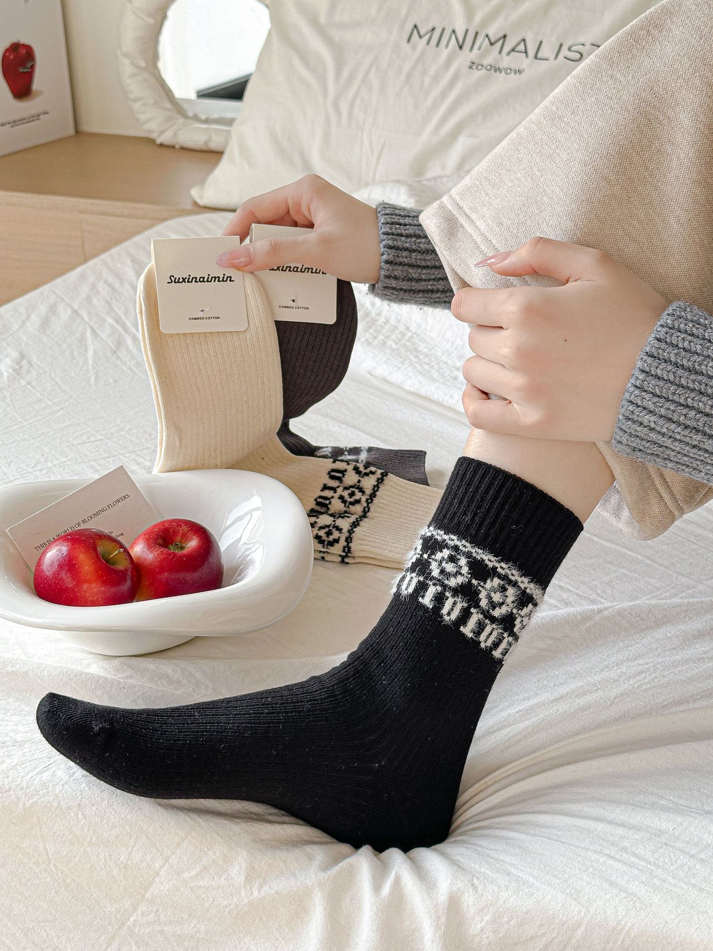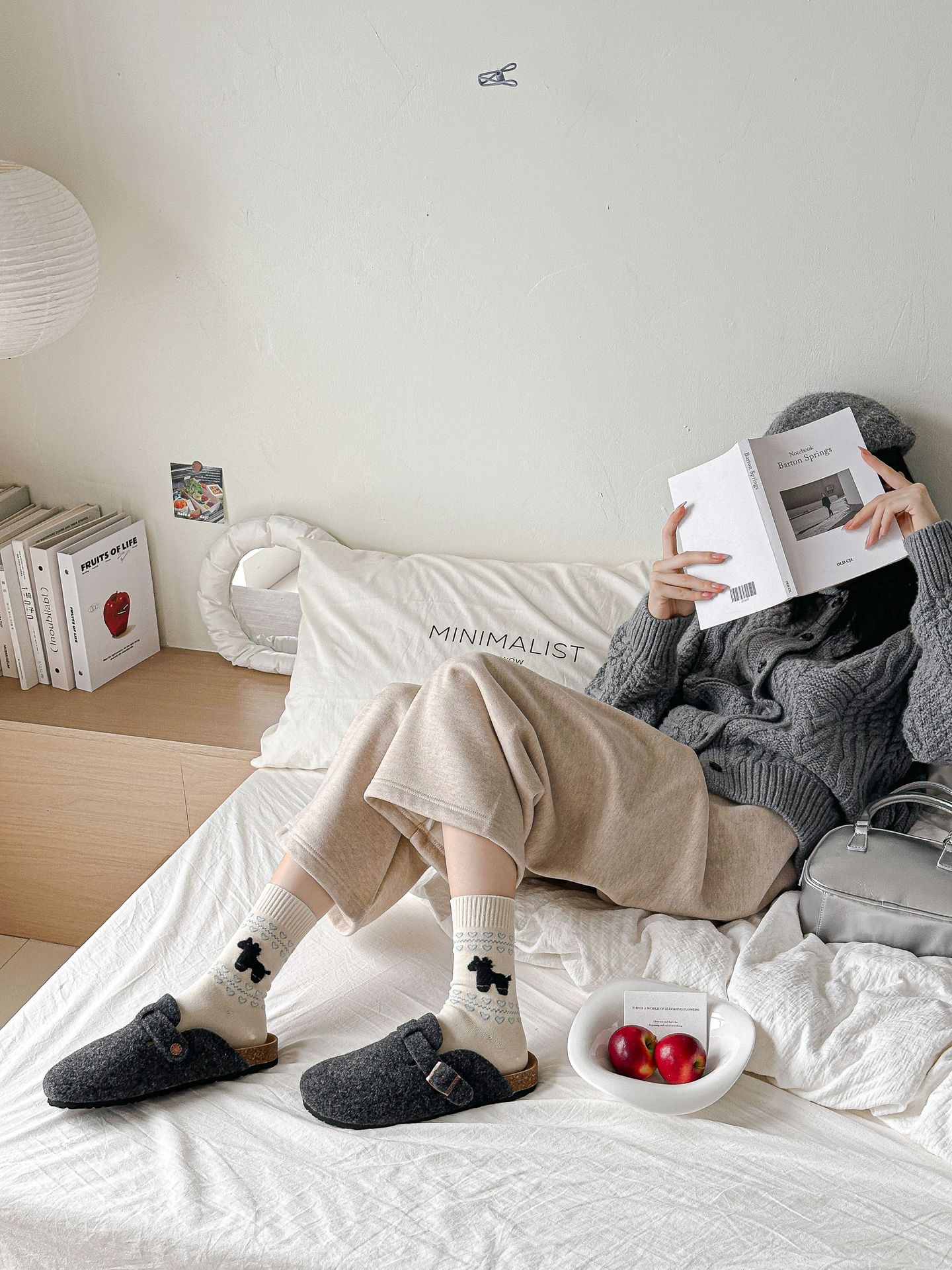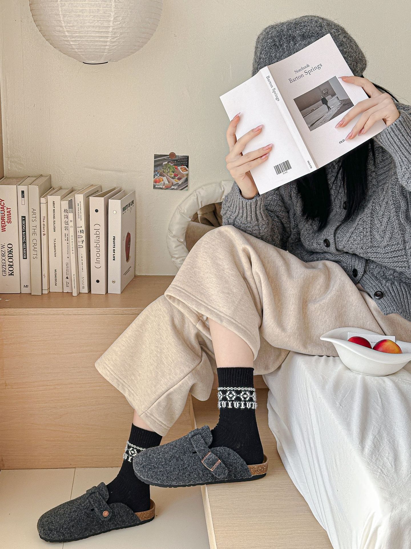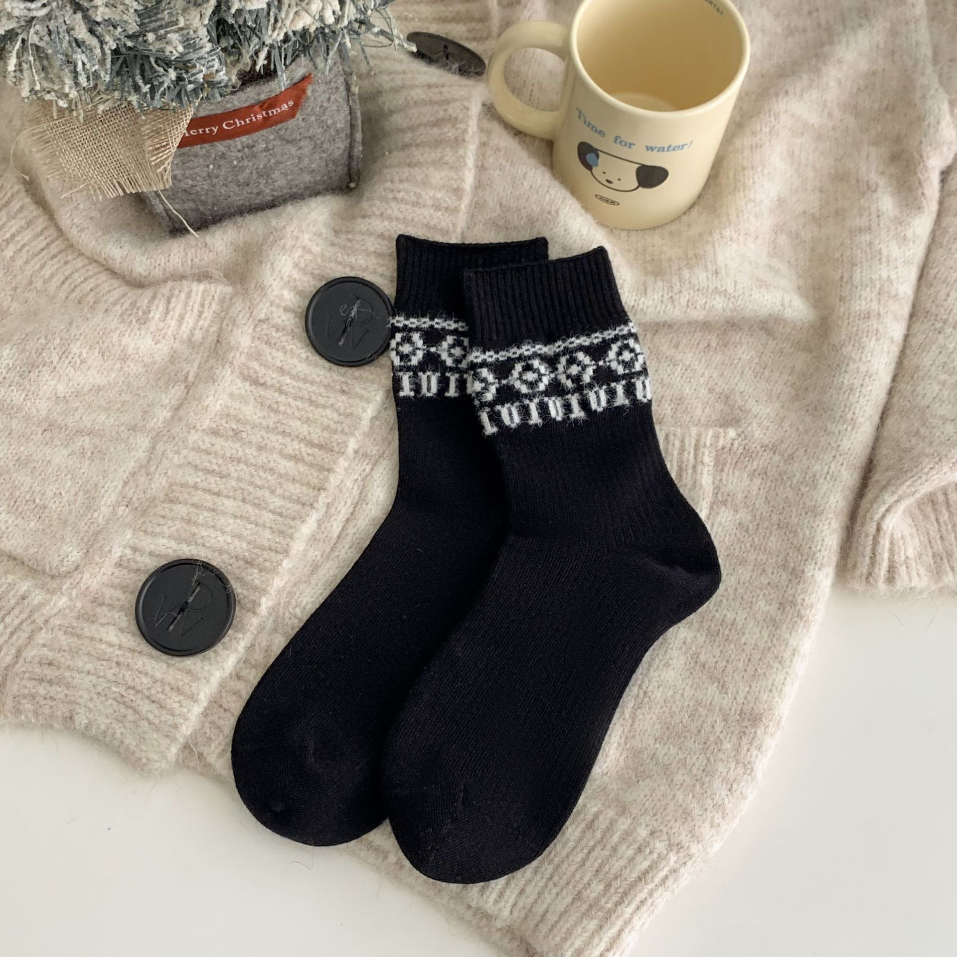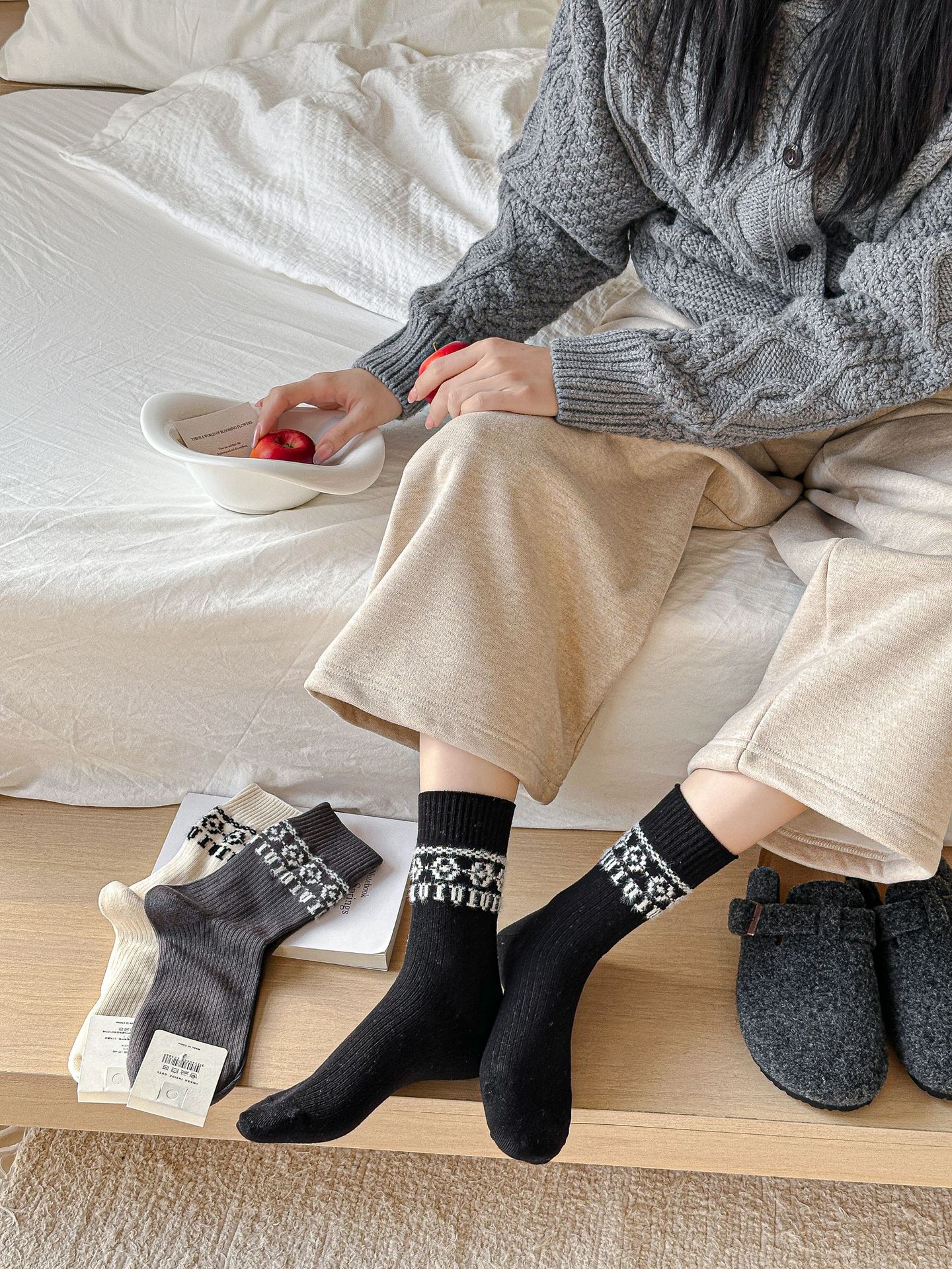 회색 양말 여성의 중간 튜브 양말 봄과 가을 귀여운 만화 사랑 활 민족 스타일 페어 아일랜드 강아지 양말