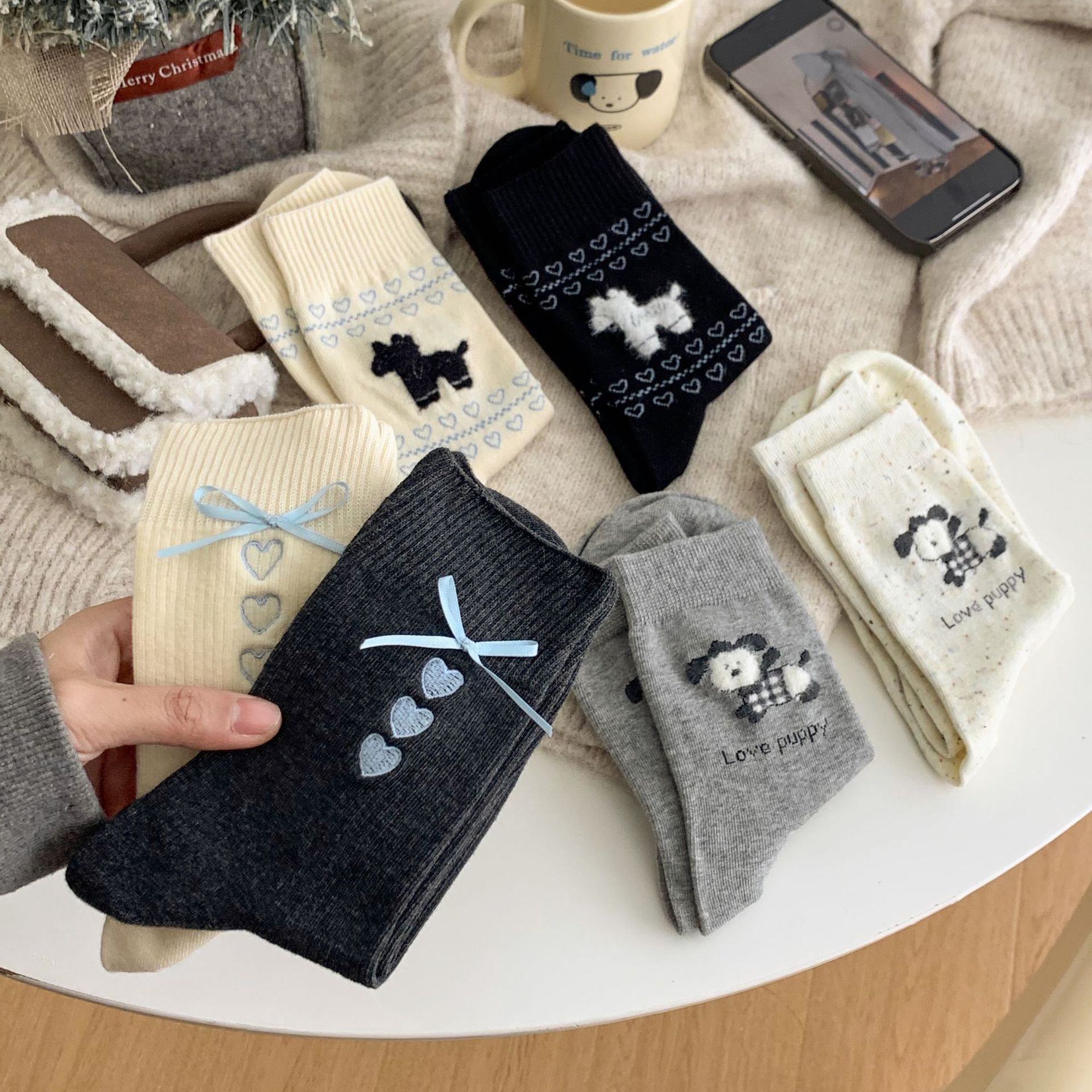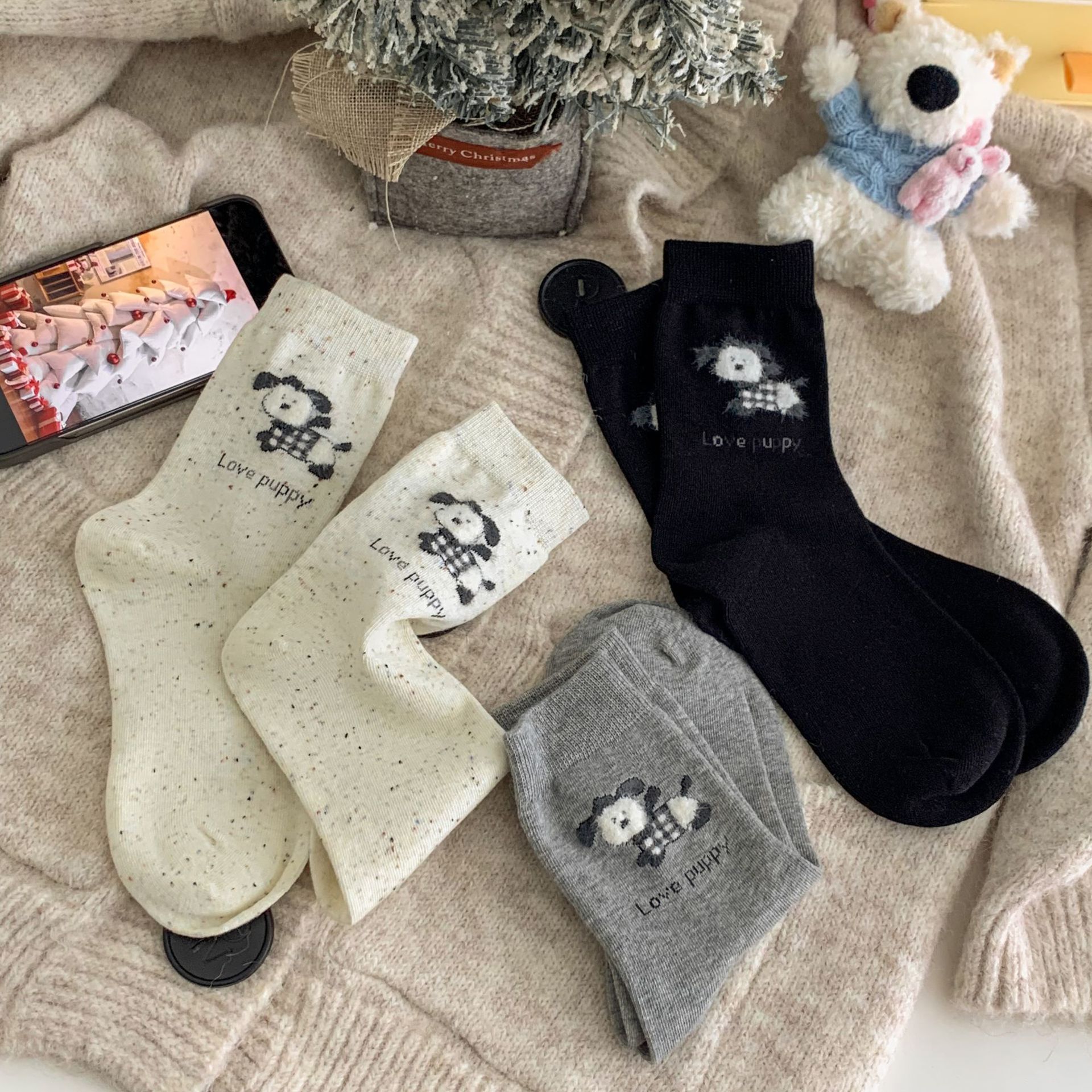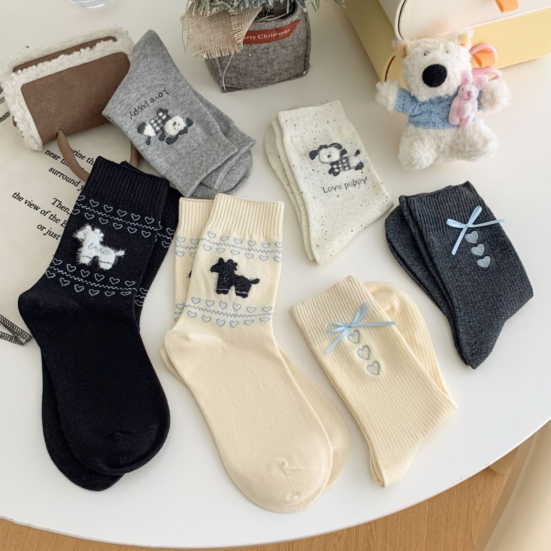 회색 양말 여성의 중간 튜브 양말 봄과 가을 귀여운 만화 사랑 활 민족 스타일 페어 아일랜드 강아지 양말스토어 가기