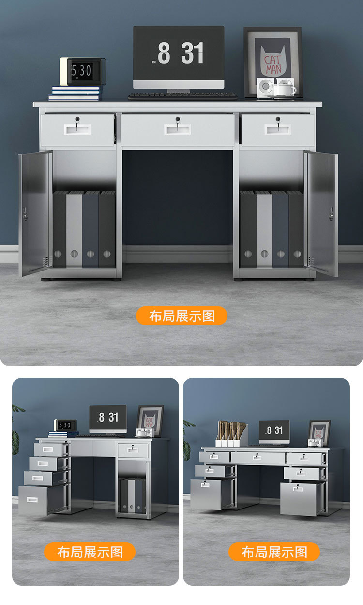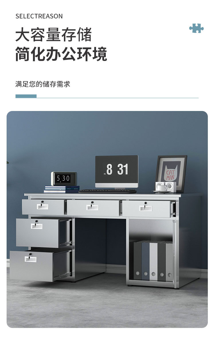 304 스테인레스 스틸 오피스 데스크 컴퓨터 데스크 서랍 쓰기 책상 먼지없는 작업장 작업 실험실 테이블이있는 두꺼운 책상스토어 가기