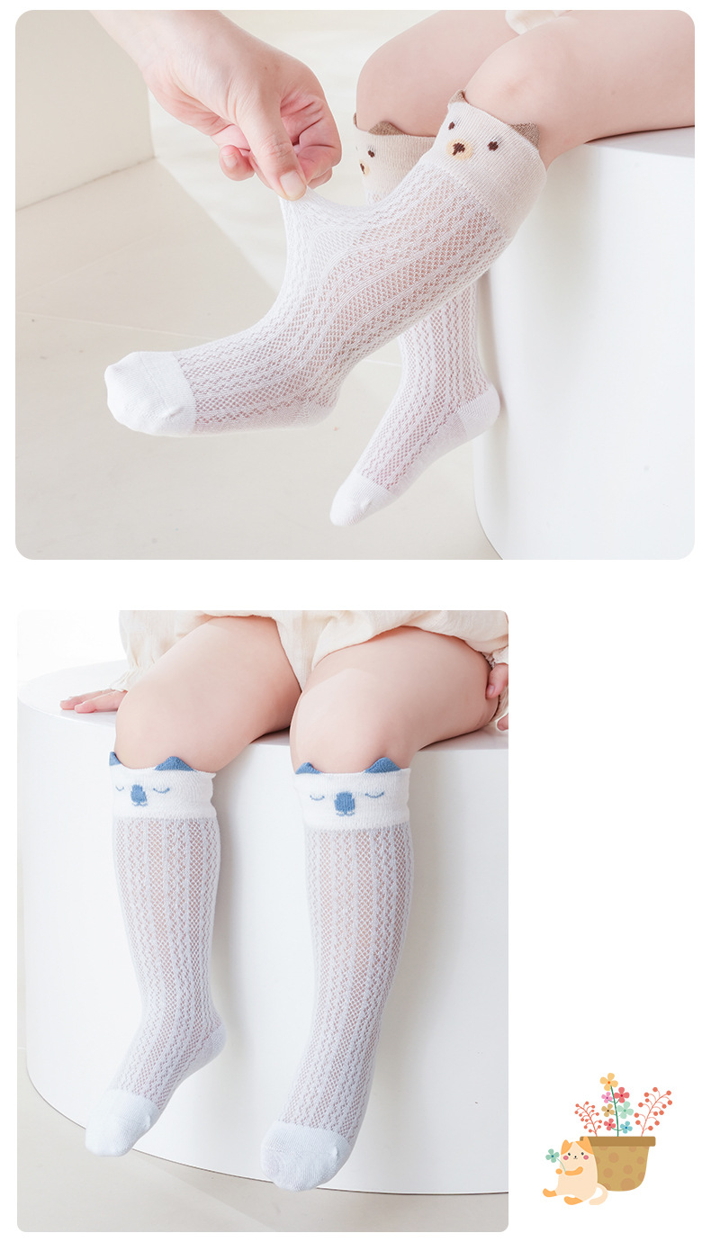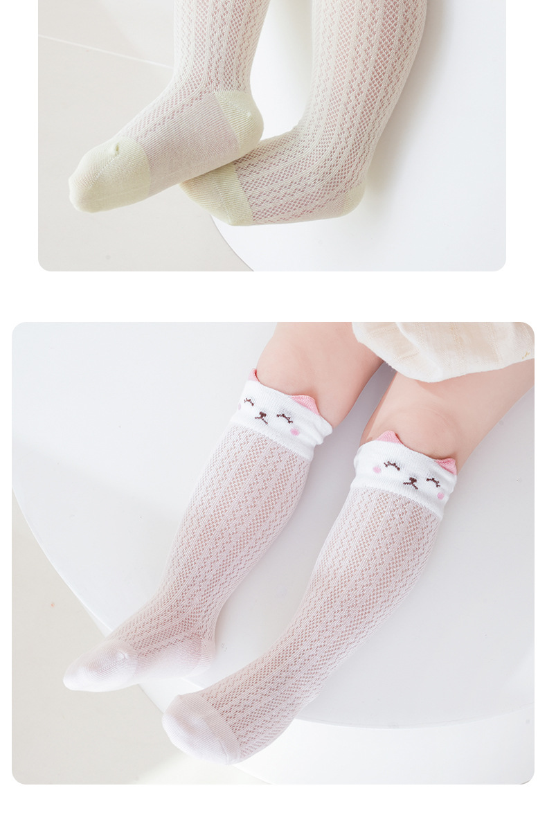 봄과 여름 아기 양말 얇은 메쉬 양말 아기면 양말 송아지 양말 긴 만화 신생아 스타킹