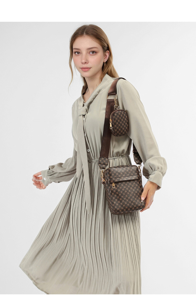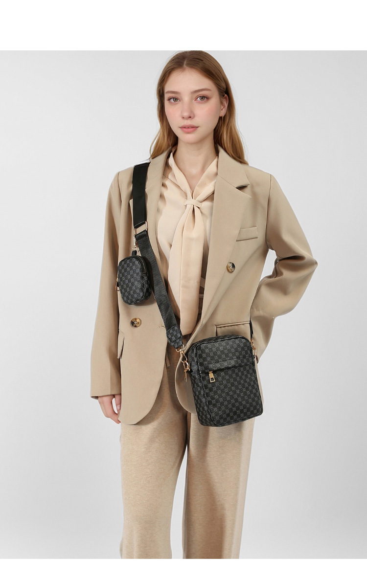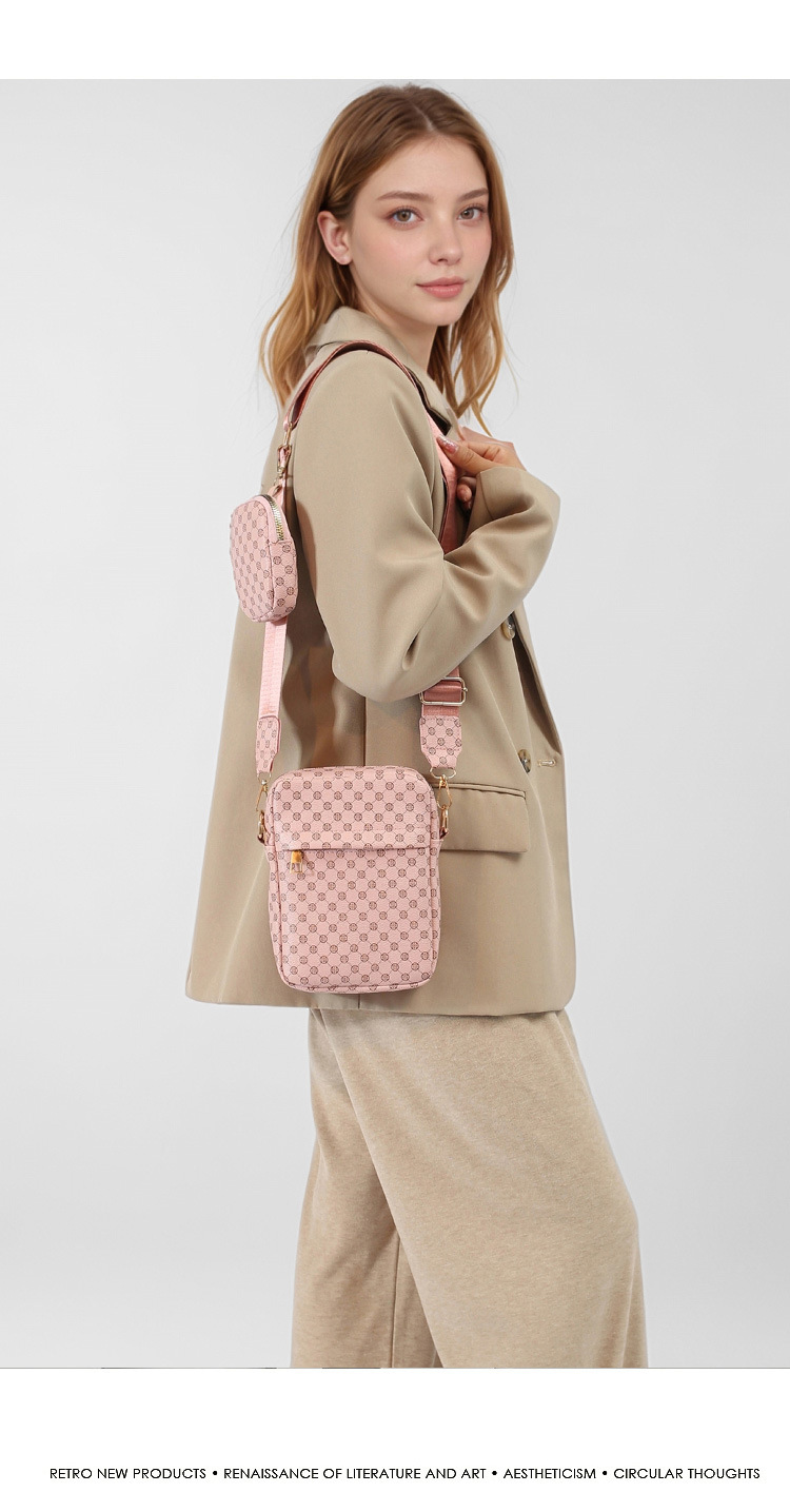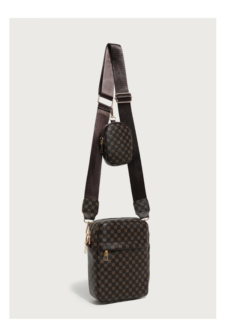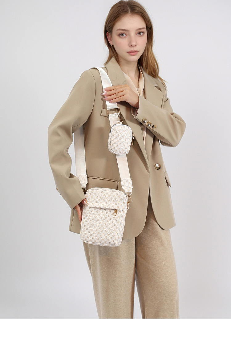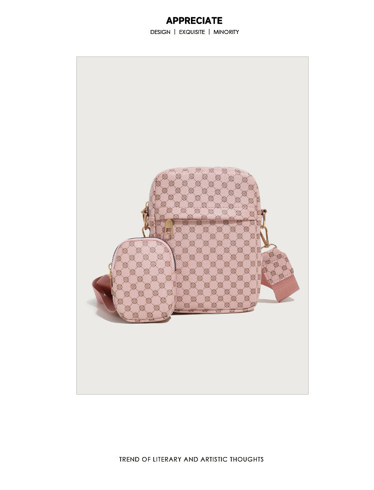 두 조각 우아한 복고풍 인쇄 사진 가방 하이 엔드 수직 휴대 전화 가방 넓은 어깨 끈 크로스 바디 여성 가방 작은 사각형 가방