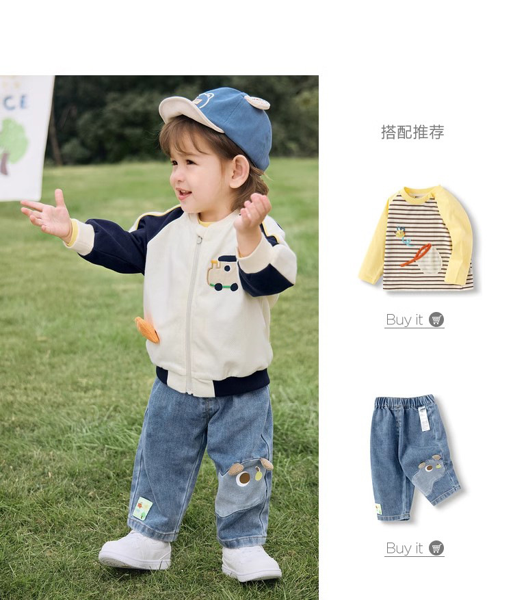 도매 아동복 2025 아기 봄과 가을 새로운 소년과 소녀 아기 서양식 야구 세트 탑 칼라 코트스토어 가기