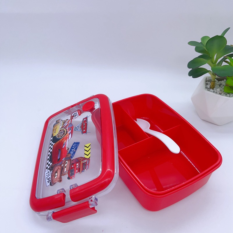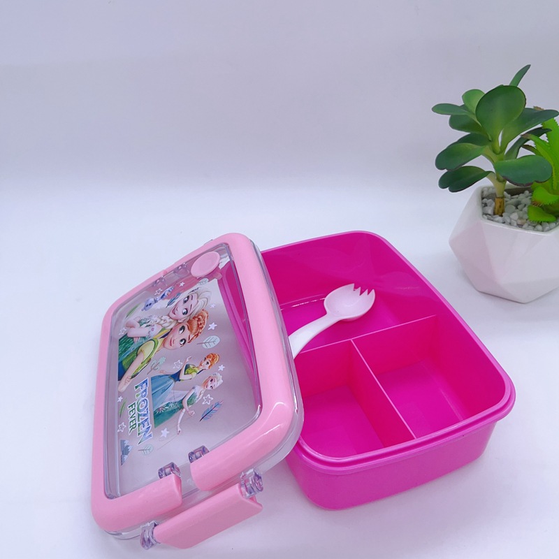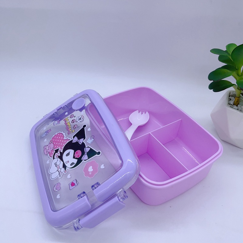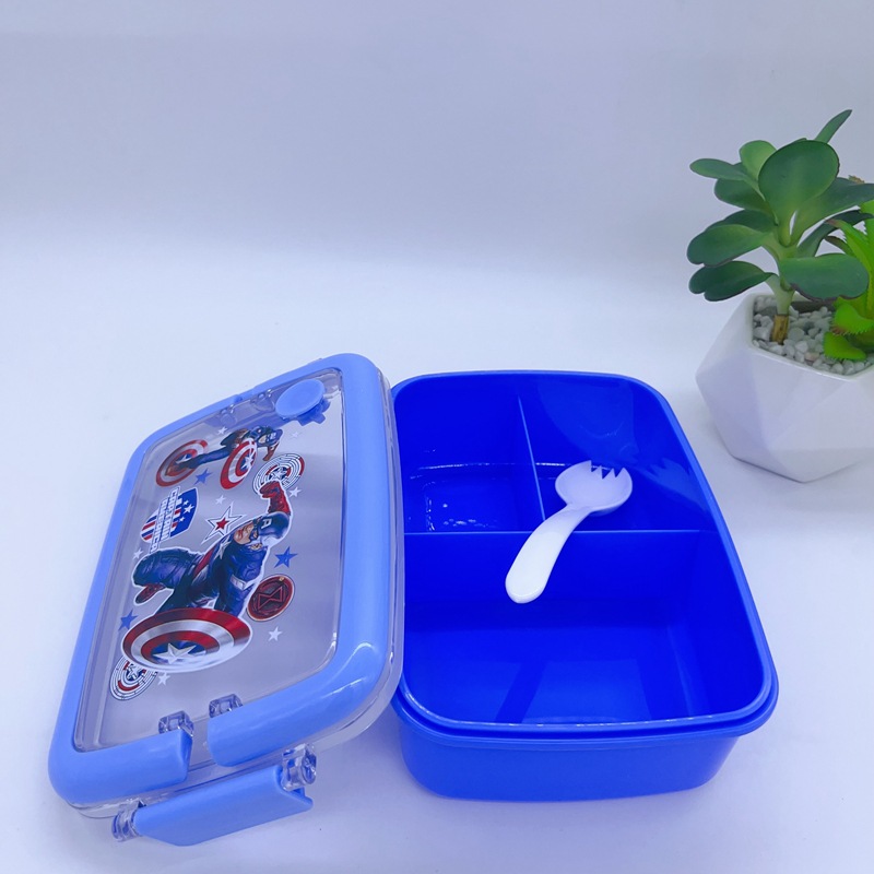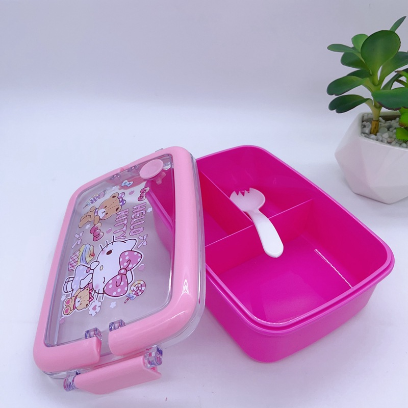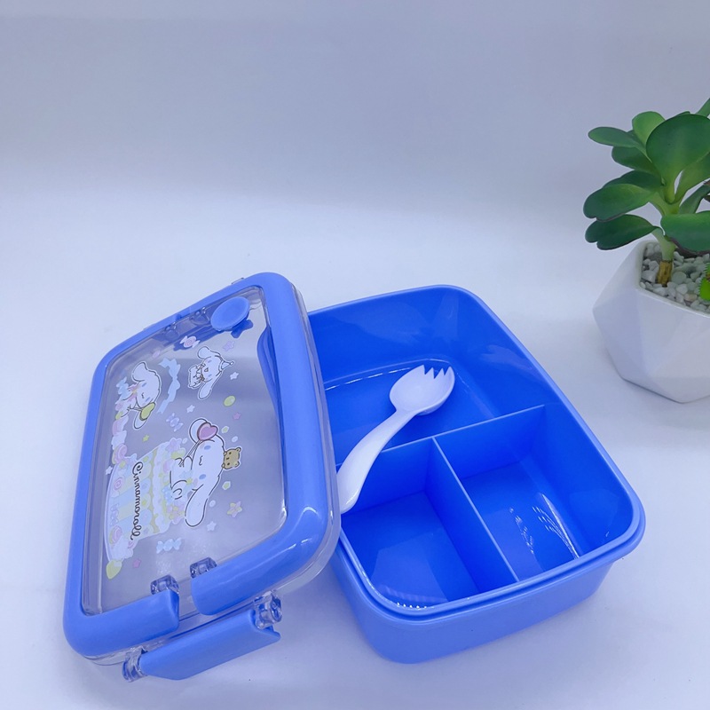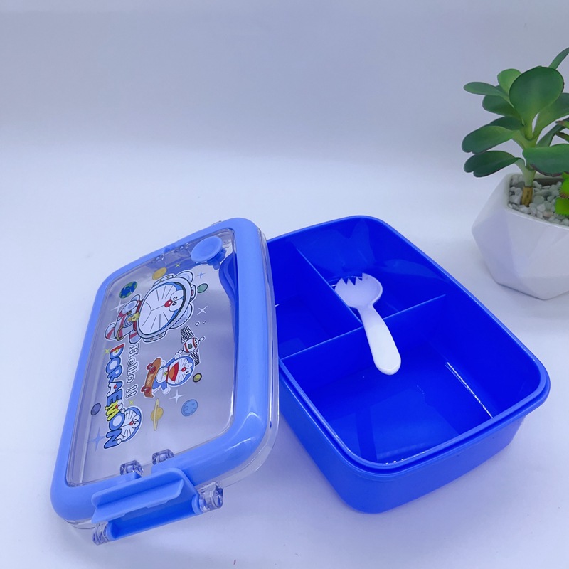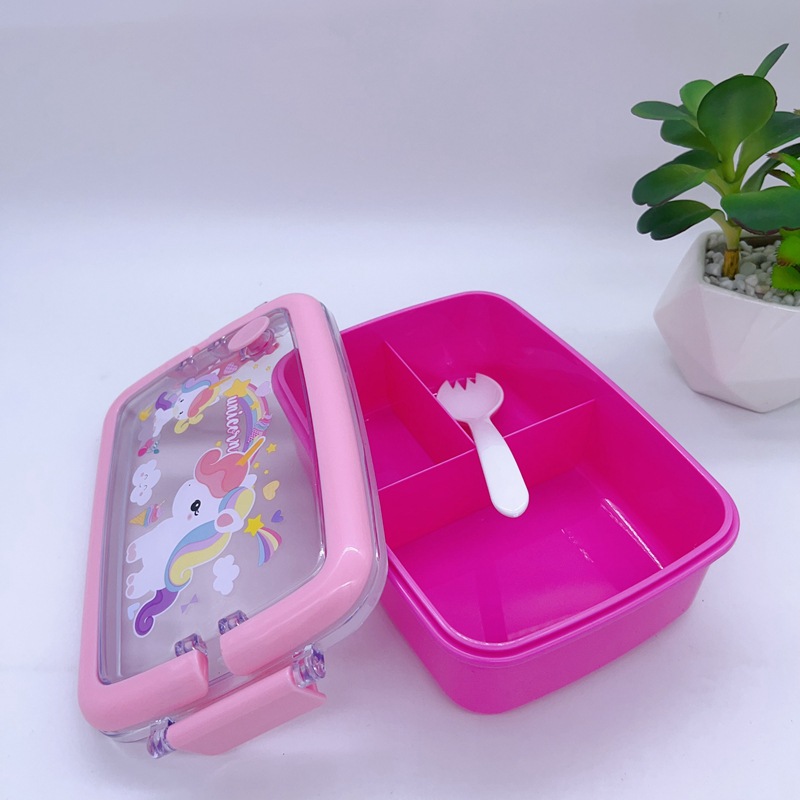창조적 인 만화 휴대용 도시락 어린이 3 칸 도시락 학생들은 자신의 숟가락 캠퍼스 도시락을 가져옵니다스토어 가기