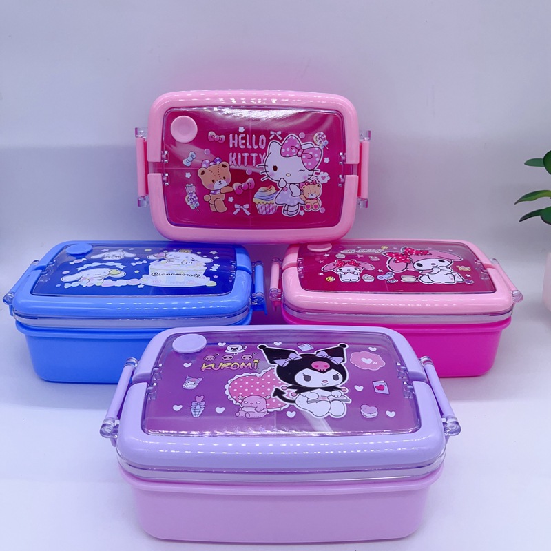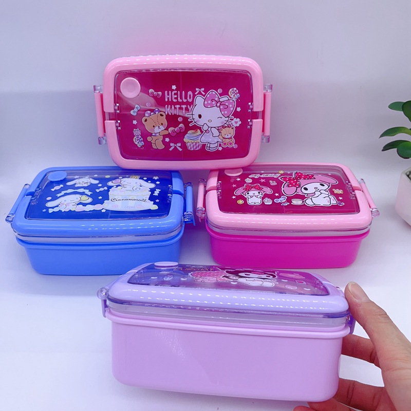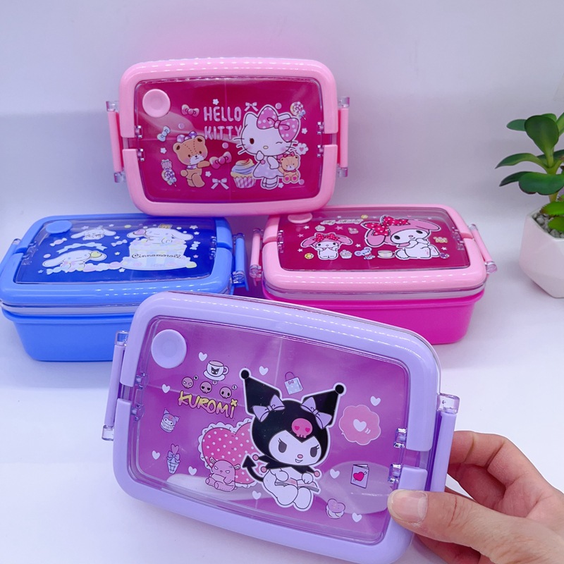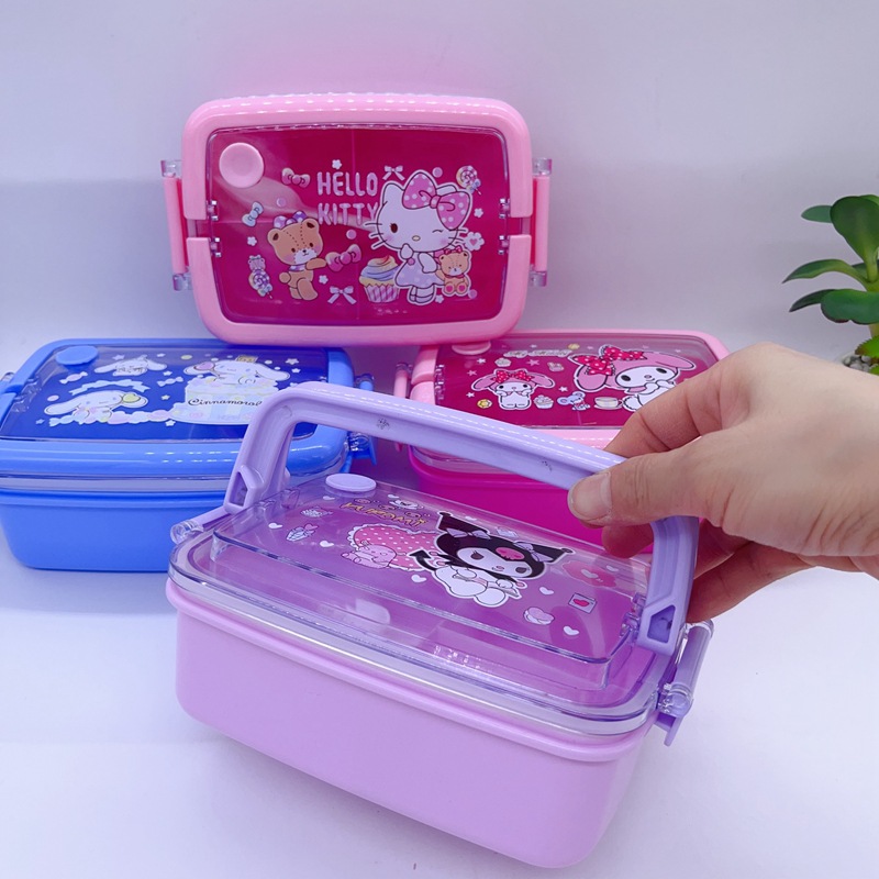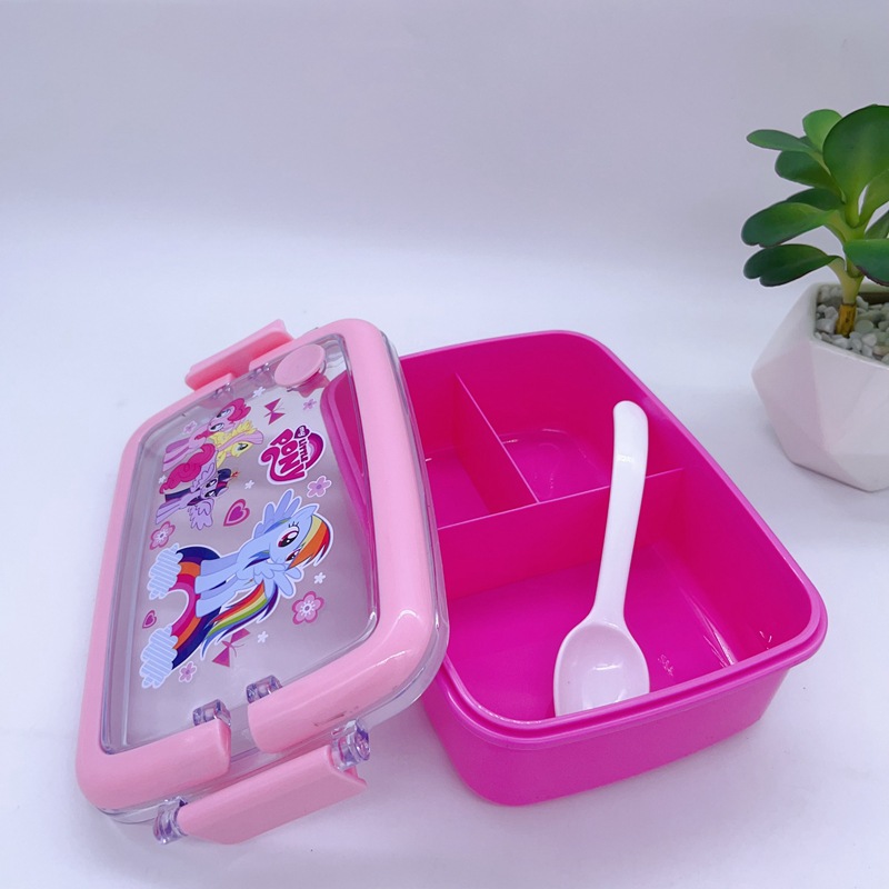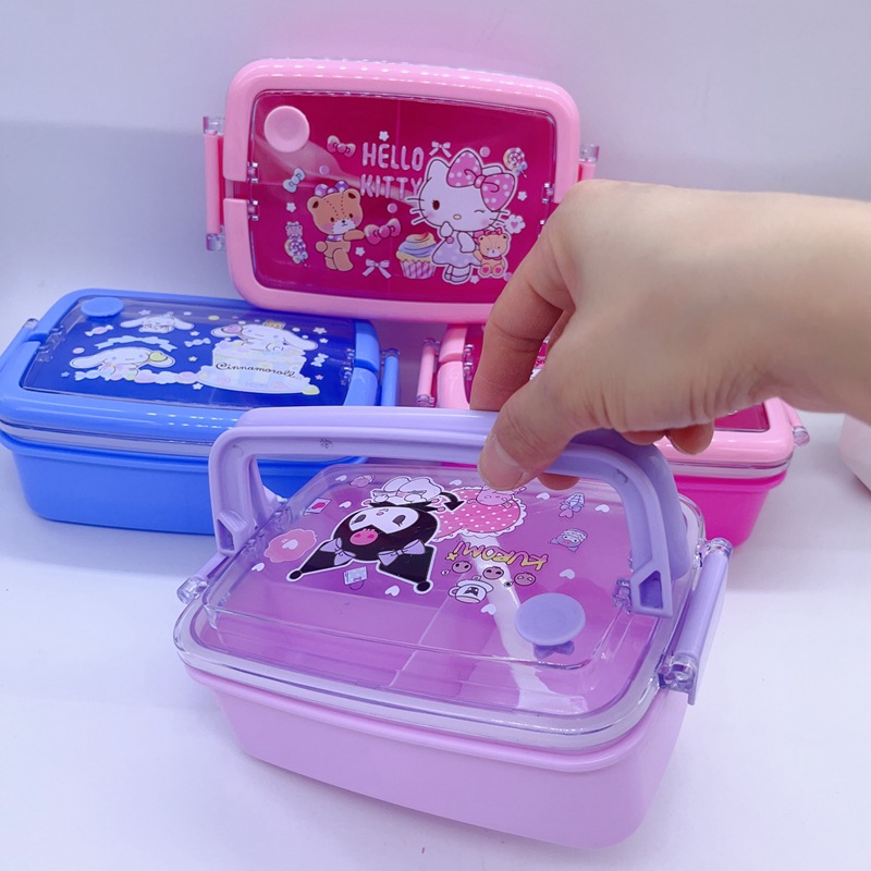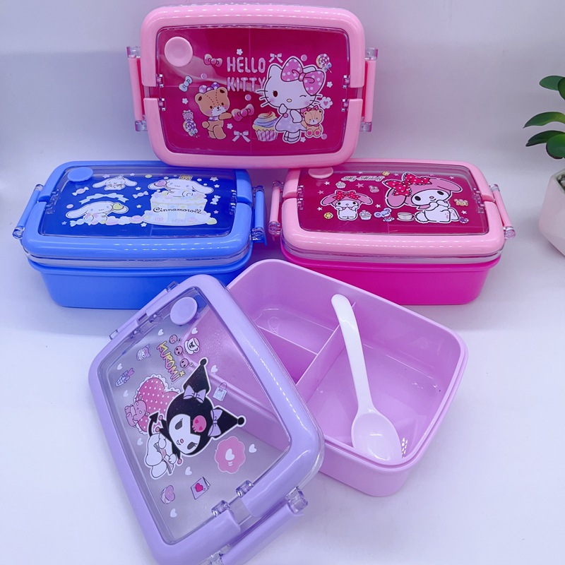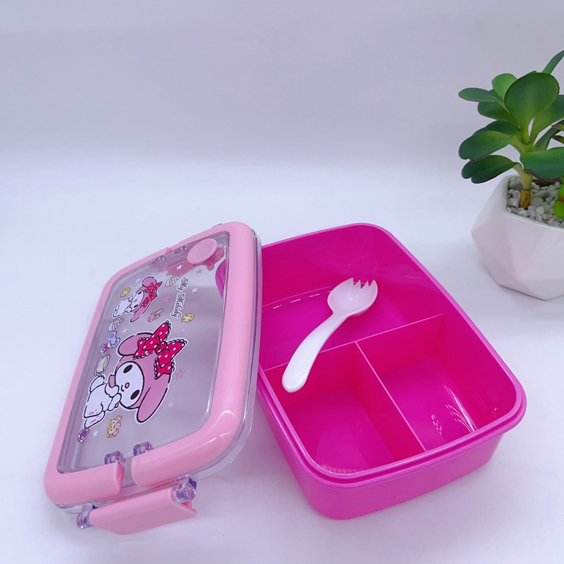 창조적 인 만화 휴대용 도시락 어린이 3 칸 도시락 학생들은 자신의 숟가락 캠퍼스 도시락을 가져옵니다스토어 가기