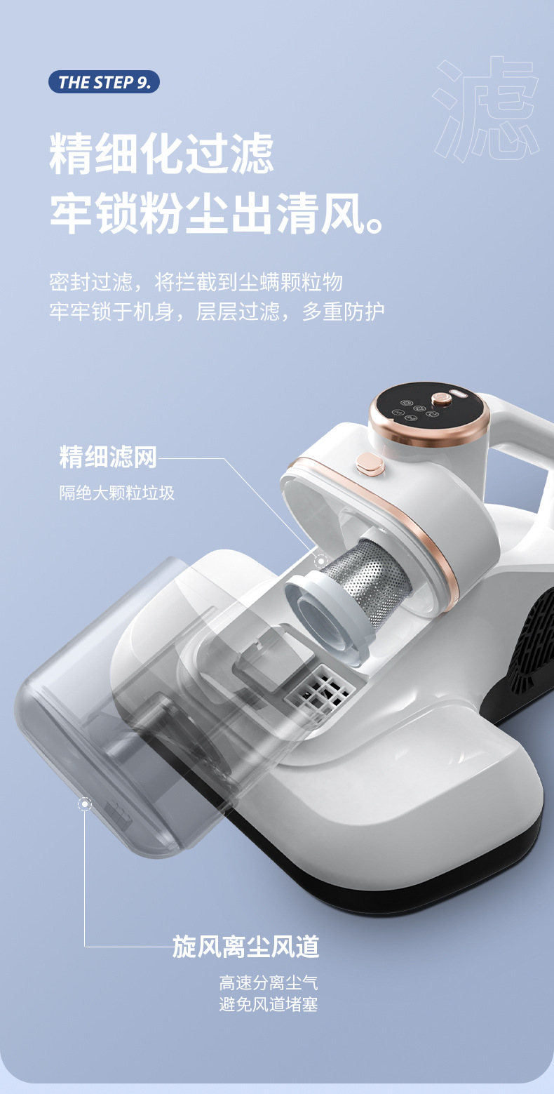 국경을 넘는 신제품 가정용 이중 진드기 제거기, 강력한 흡입력, 이중 컵, 이중 필터, 자외선 살균 침대 진드기 제거기스토어 가기