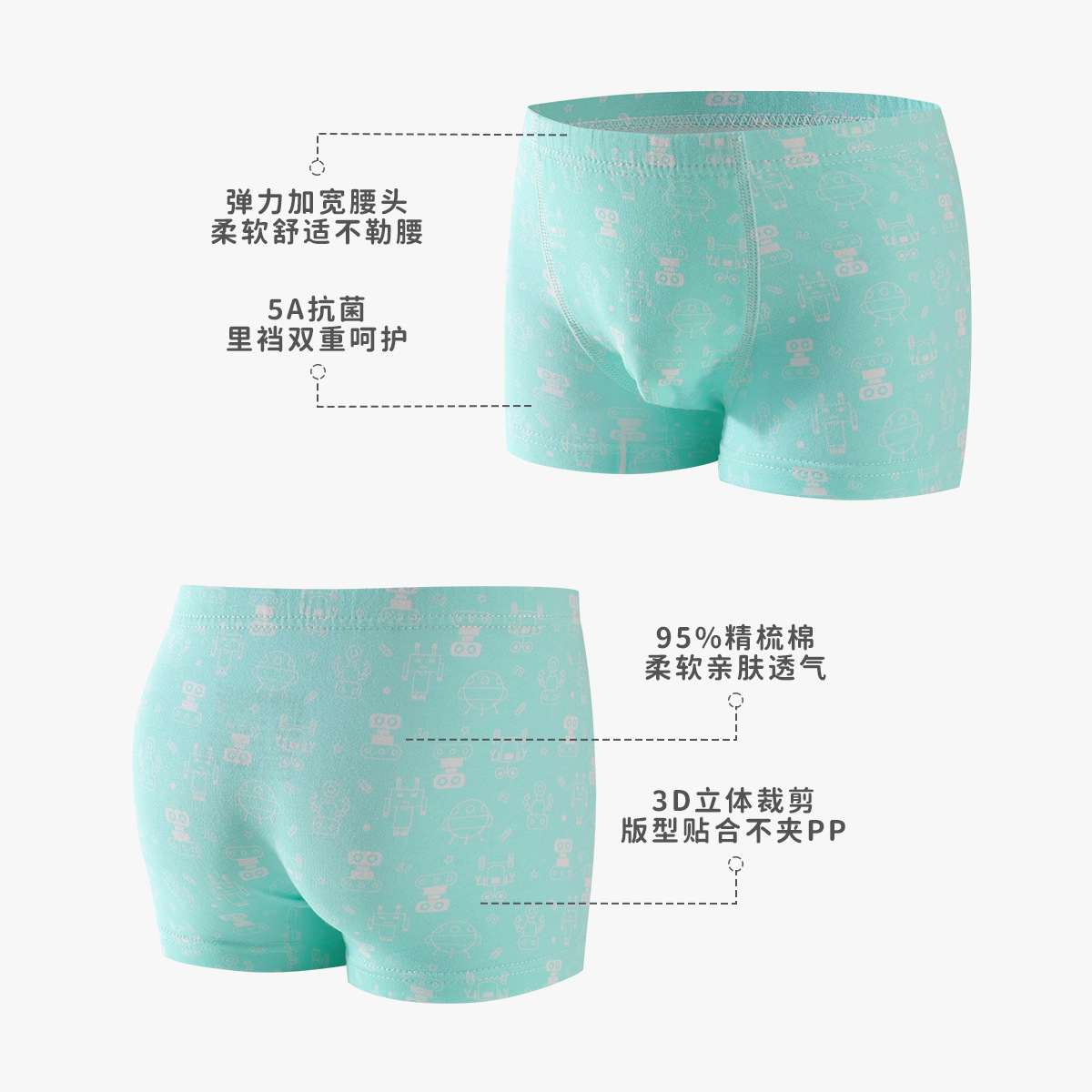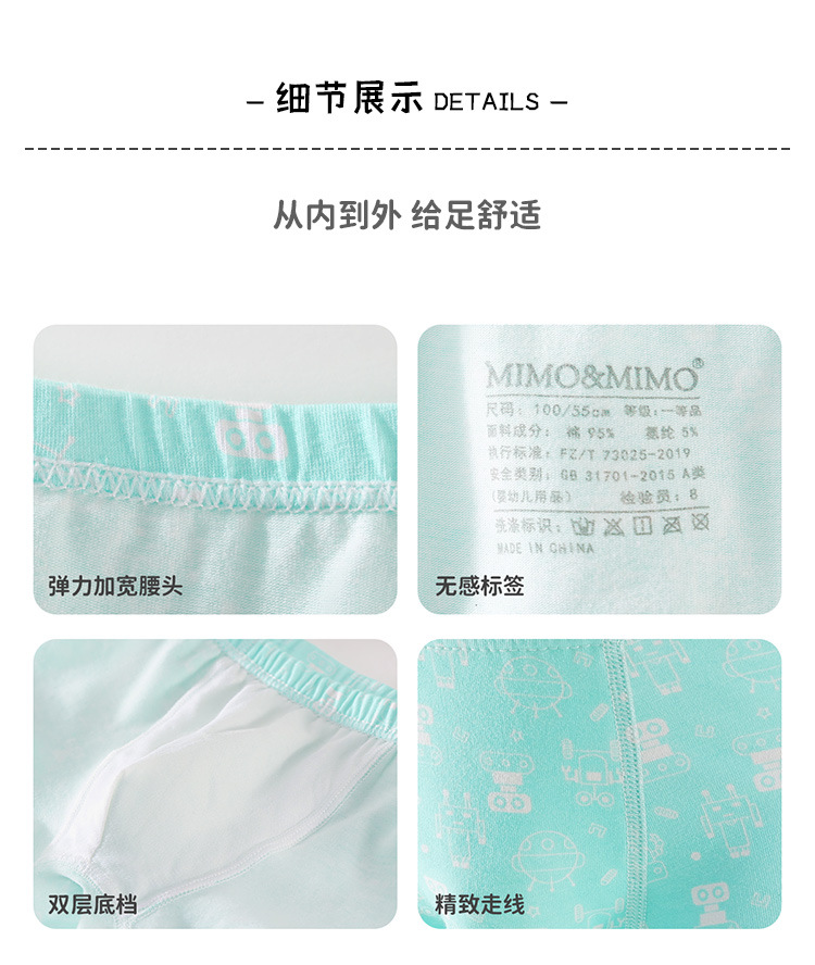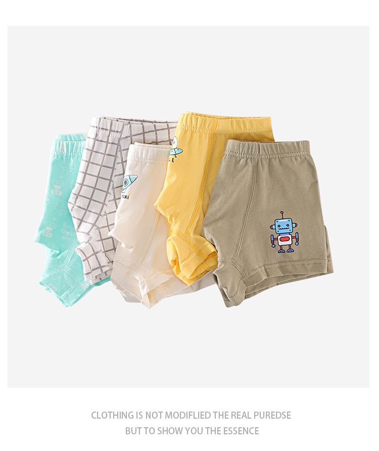 MIMO 순면 A급 아동용 속옷 남아용 사각팬티 중소형 아동용 귀여운 만화 캐릭터 반바지 속옷 5종 세트 505
