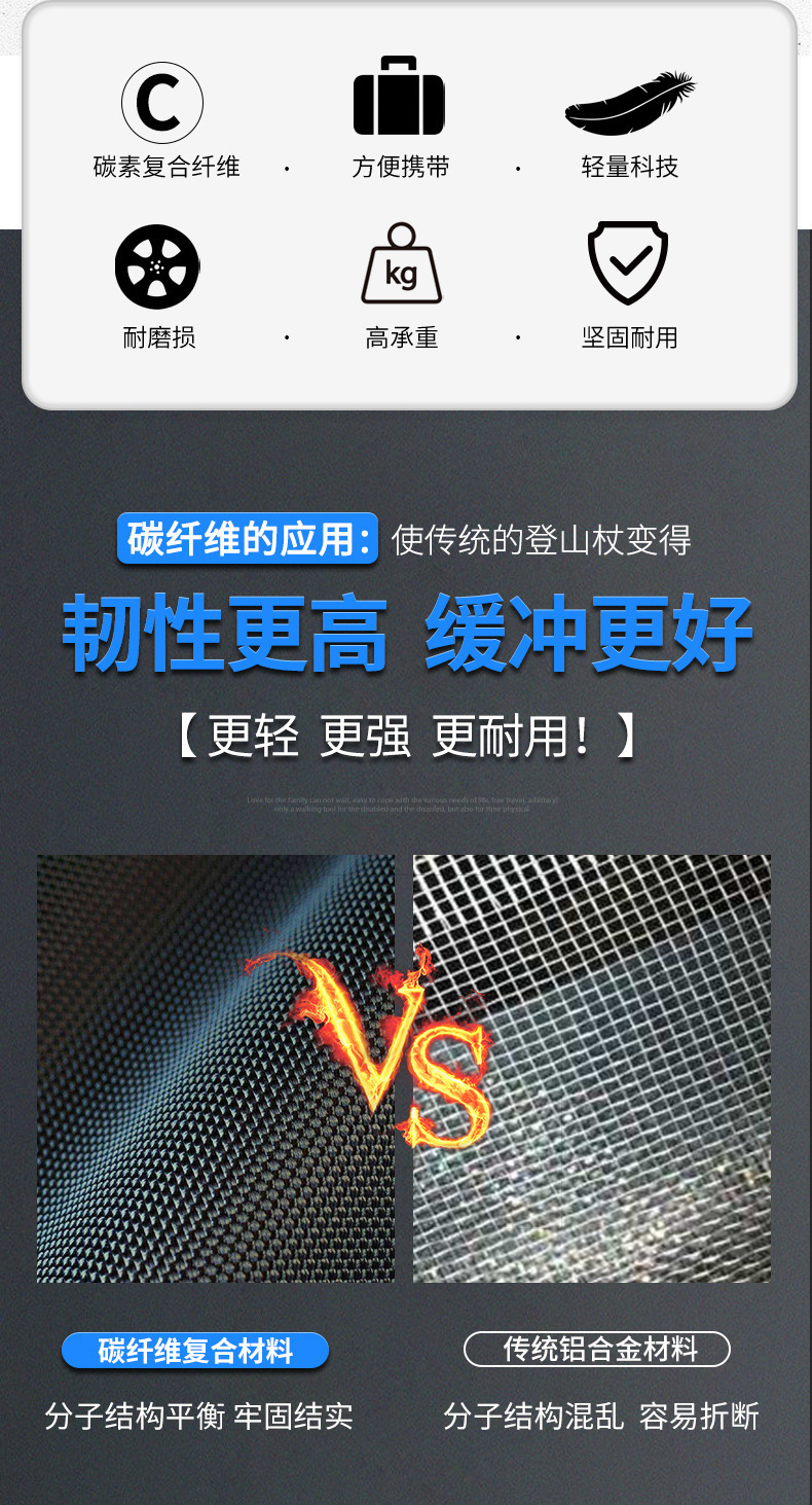 登山杖户外伸缩折叠多功能专业徒步战术越野跑徒步杖跨境登山杖