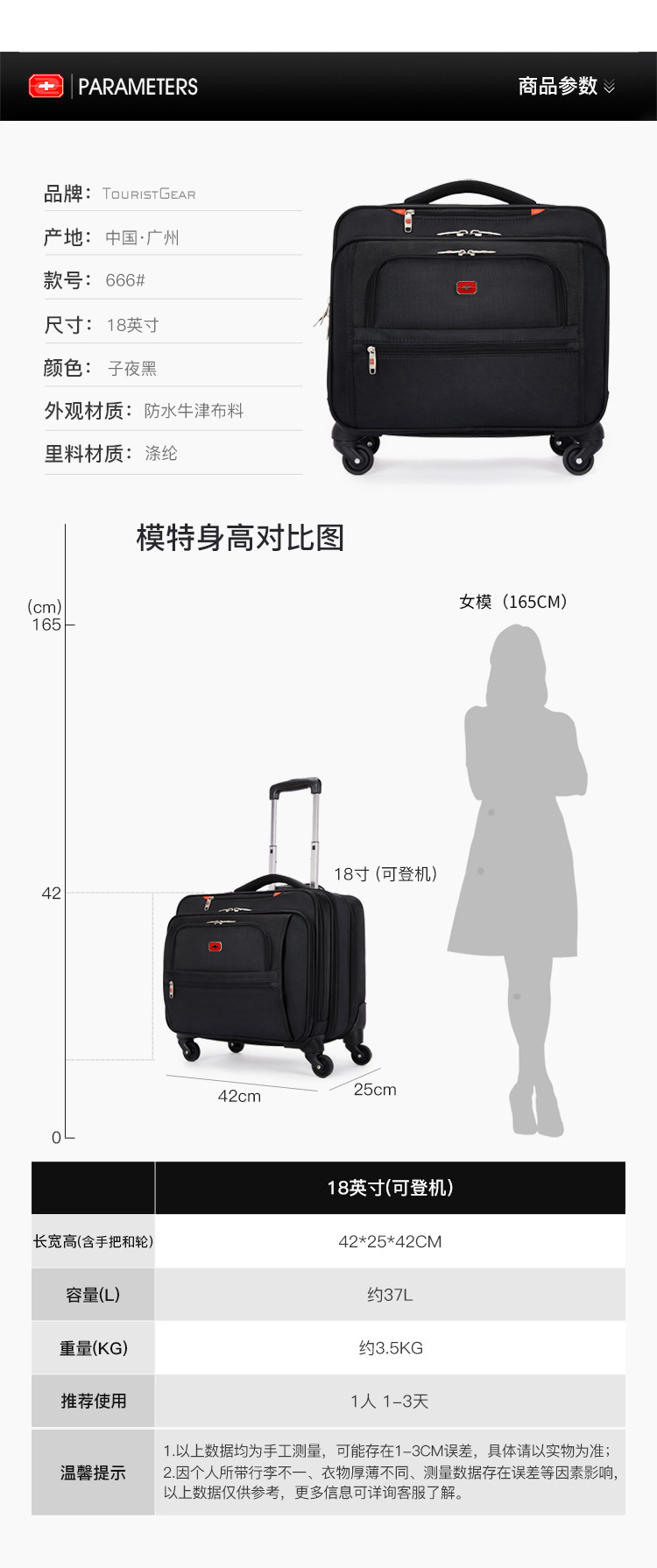 Wanxiang 휠 18 인치 수하물 옥스포드 천 가방 비즈니스 휴대용 블랙 컴퓨터 가방 휴대용 탑승 상자 광저우스토어 가기