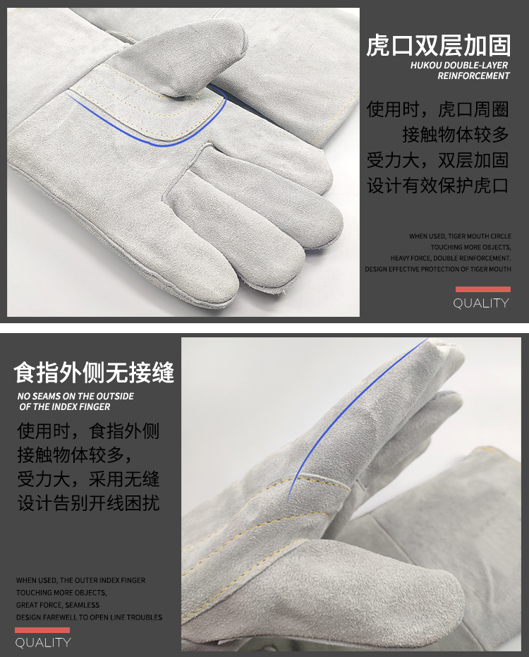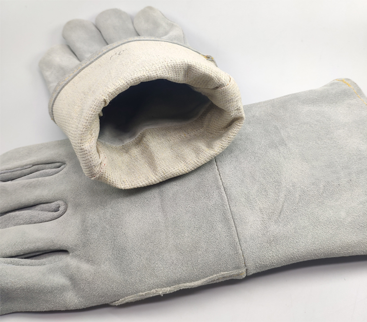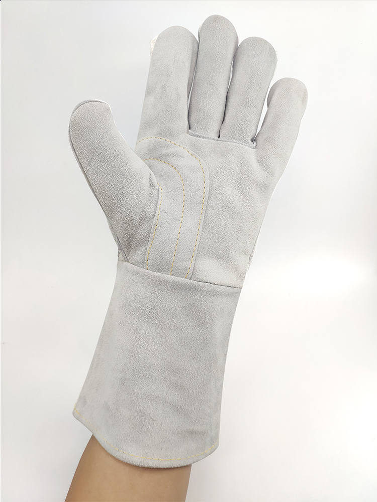 용접기 긴 장갑 높은 온도 저항하는 두꺼운 Cowhide 용접기 장갑 원활한 연약한 내마모성 안티 스케일링 장갑 노동 보호